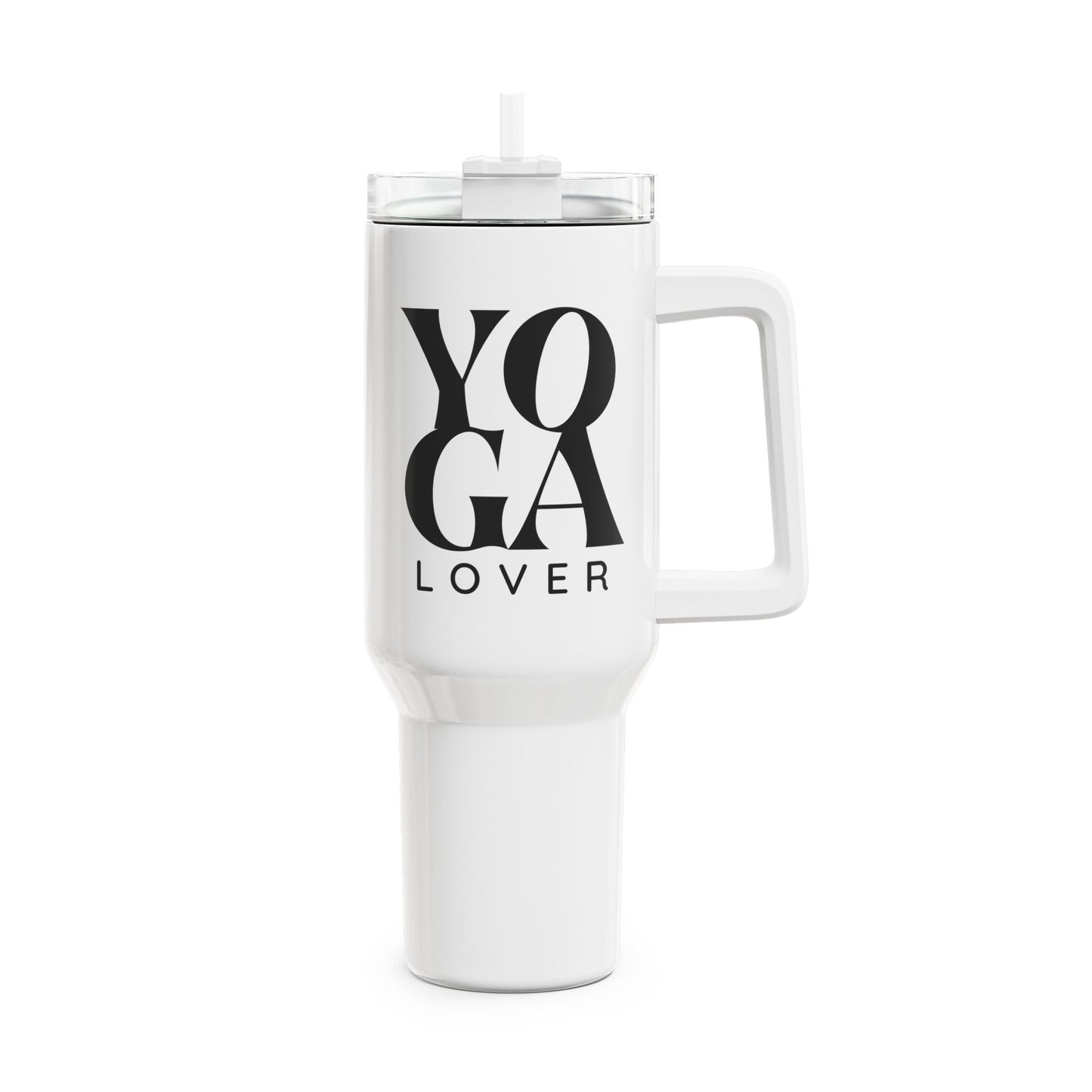 YOGA LOVER SCHRIFTZUG • Tumbler mit Henkel & Strohhalm • XXL Reisebecher 1,2L