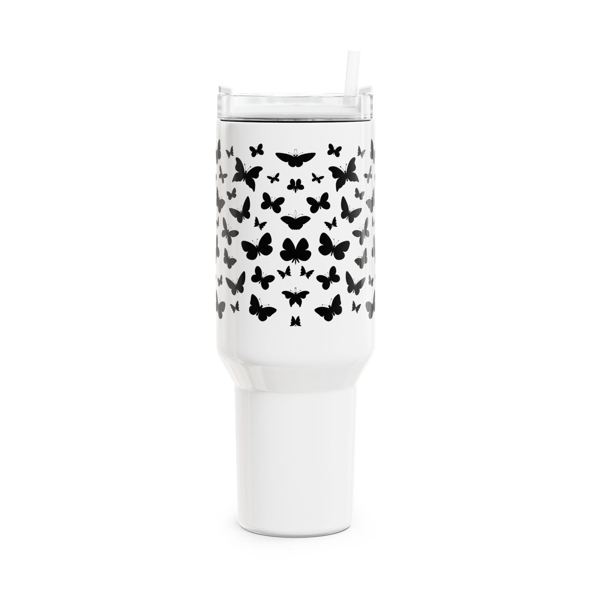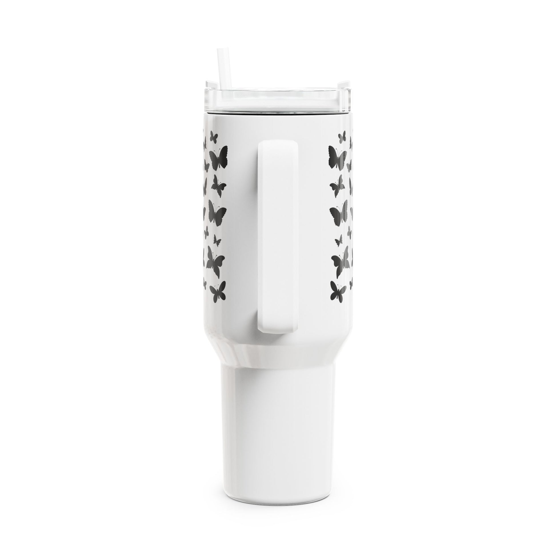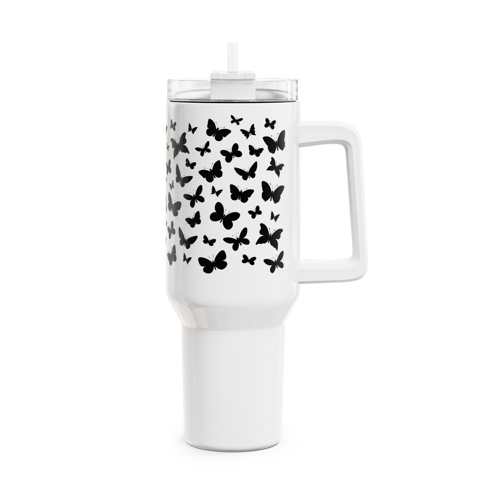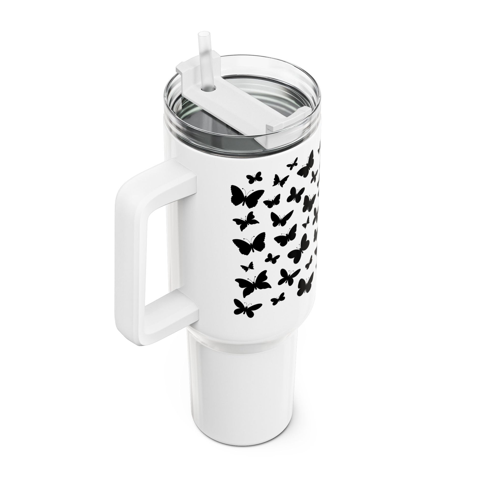 SCHMETTERLINGS MUSTER FALTER TIERMOTIV • Tumbler mit Henkel & Strohhalm • XXL Reisebecher 1,2L