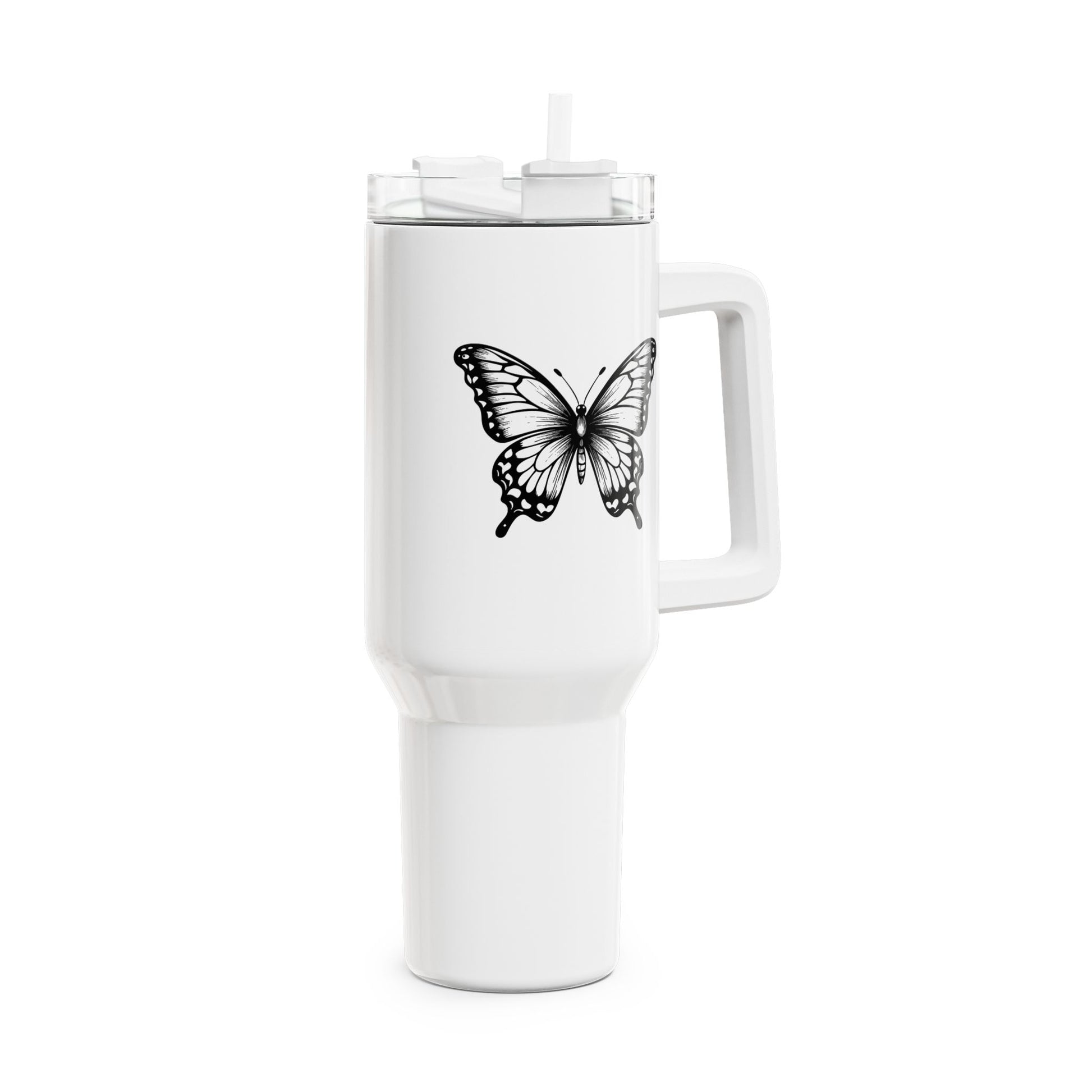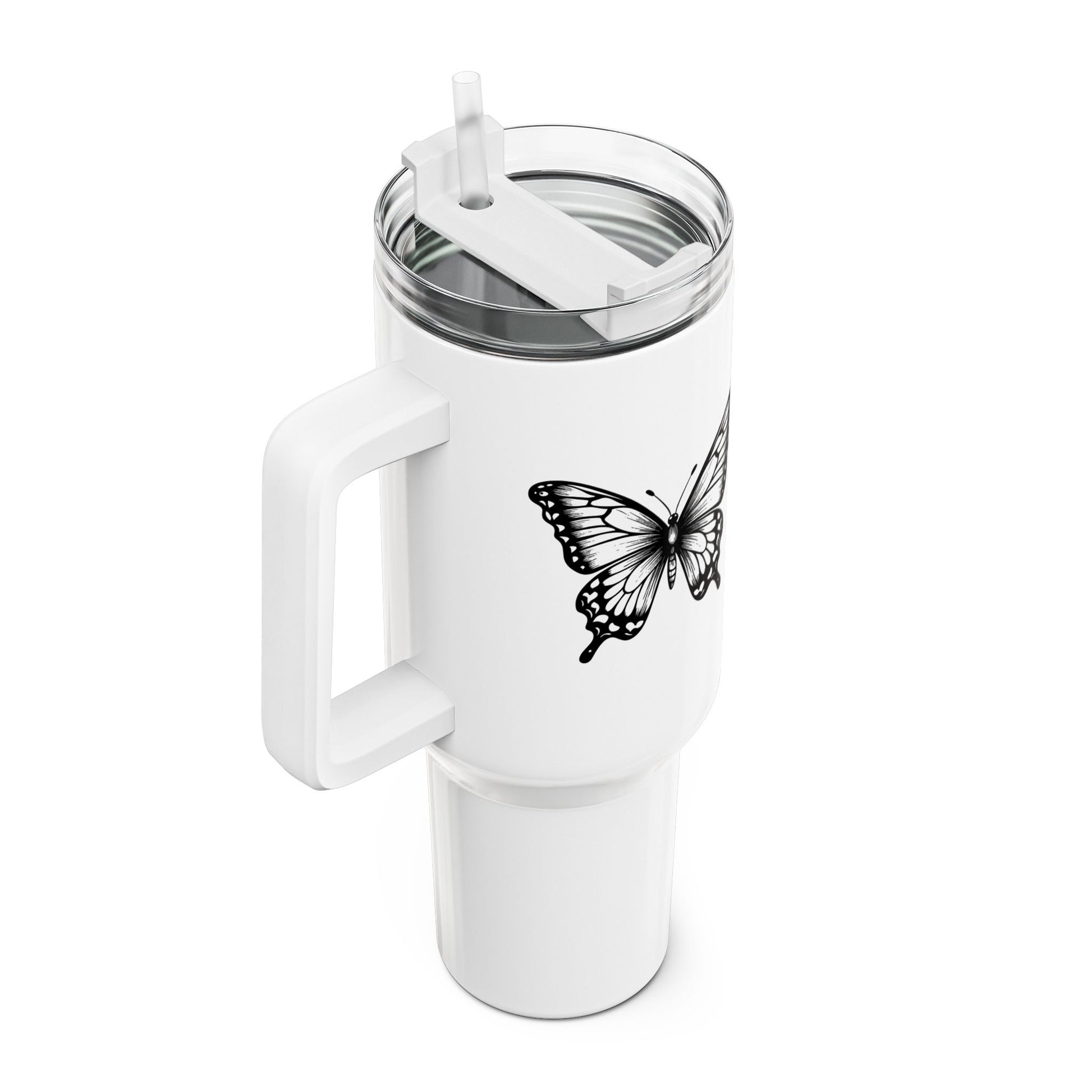 SCHMETTERLING CLIPART BILDCHEN • Tumbler mit Henkel & Strohhalm • XXL Reisebecher 1,2L