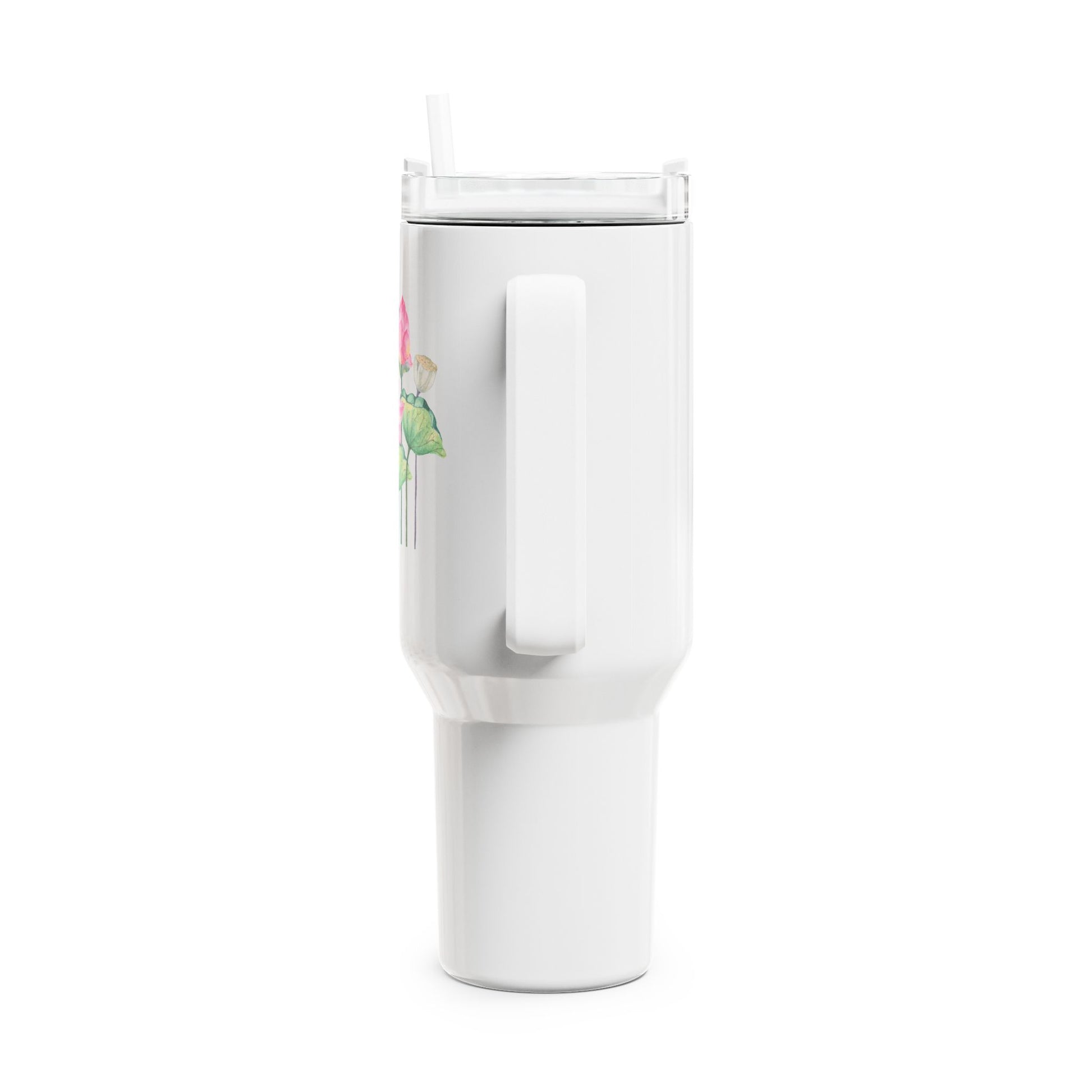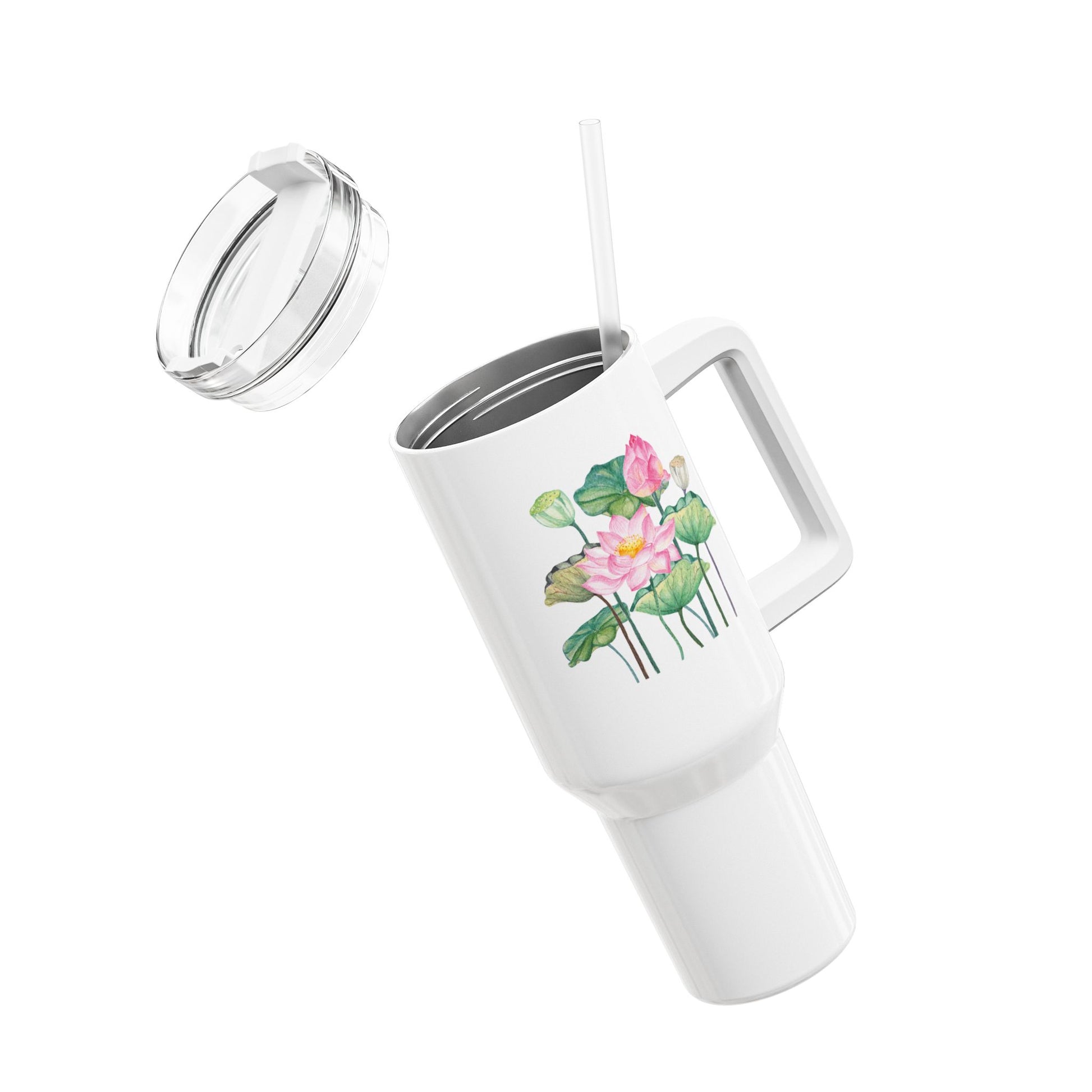 LOTUSBLUMEN AQUARELL ZEICHNUNG • Tumbler mit Henkel & Strohhalm • XXL Reisebecher 1,2L
