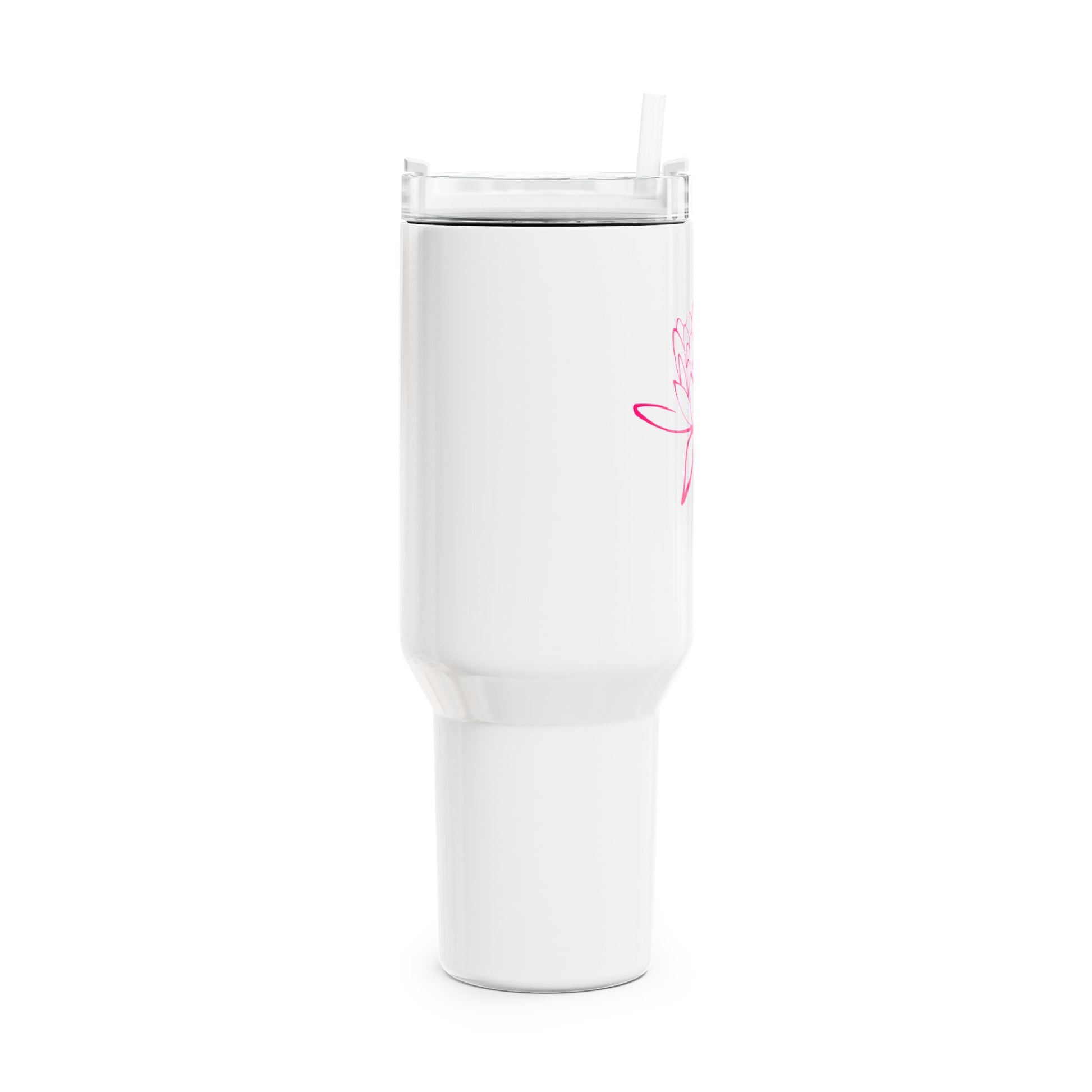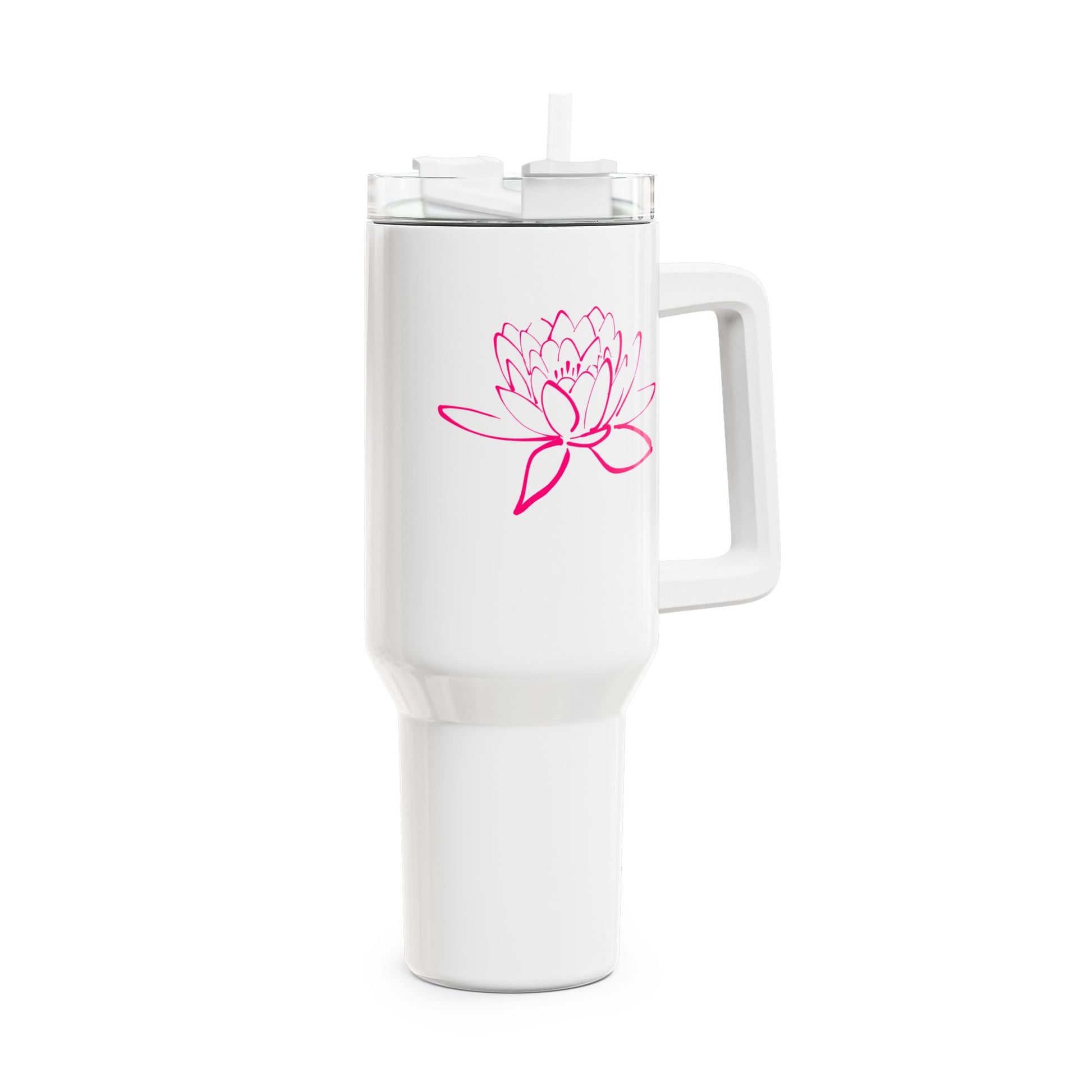 LOTUSBLÜTE PINK ZEICHNUNG • Tumbler mit Henkel & Strohhalm • XXL Reisebecher 1,2L