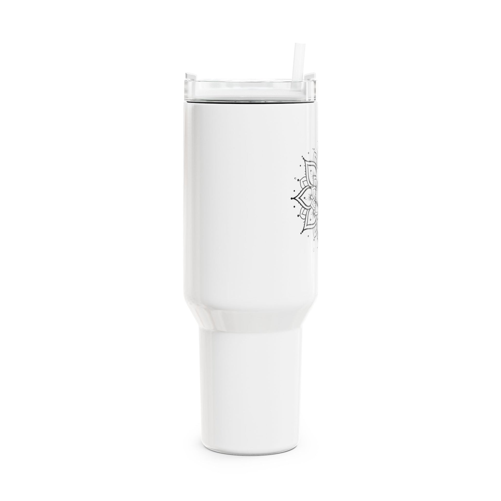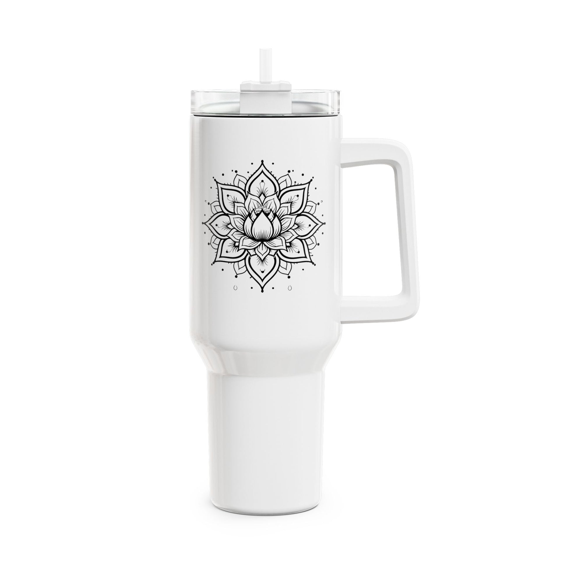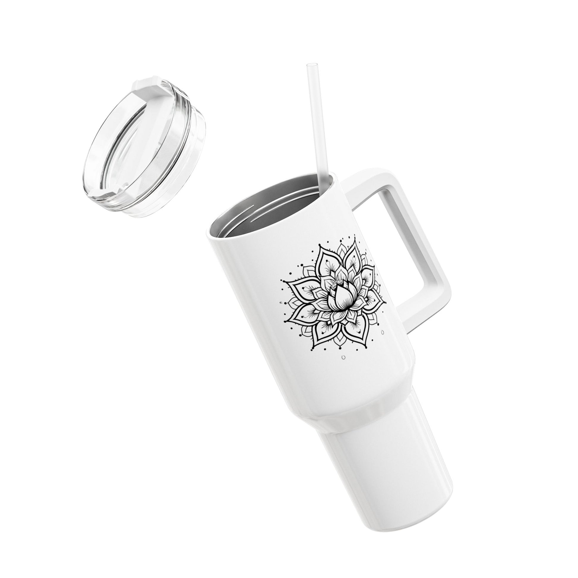 LOTUS MANDALABLUME ÄSTHETISCH • Tumbler mit Henkel & Strohhalm • XXL Reisebecher 1,2L