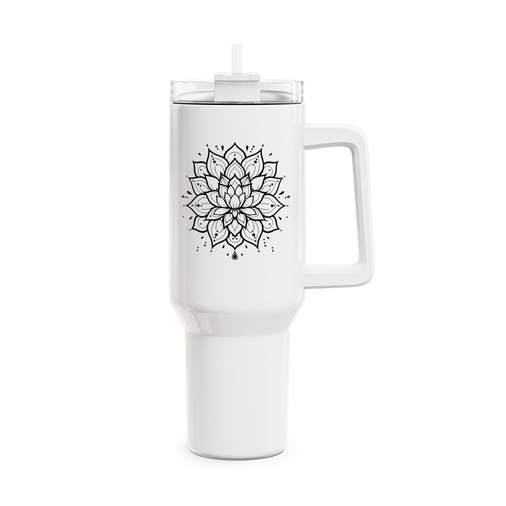 LOTUS MANDALA BLÜTE BLUMENMOTIV • Tumbler mit Henkel & Strohhalm • XXL Reisebecher 1,2L