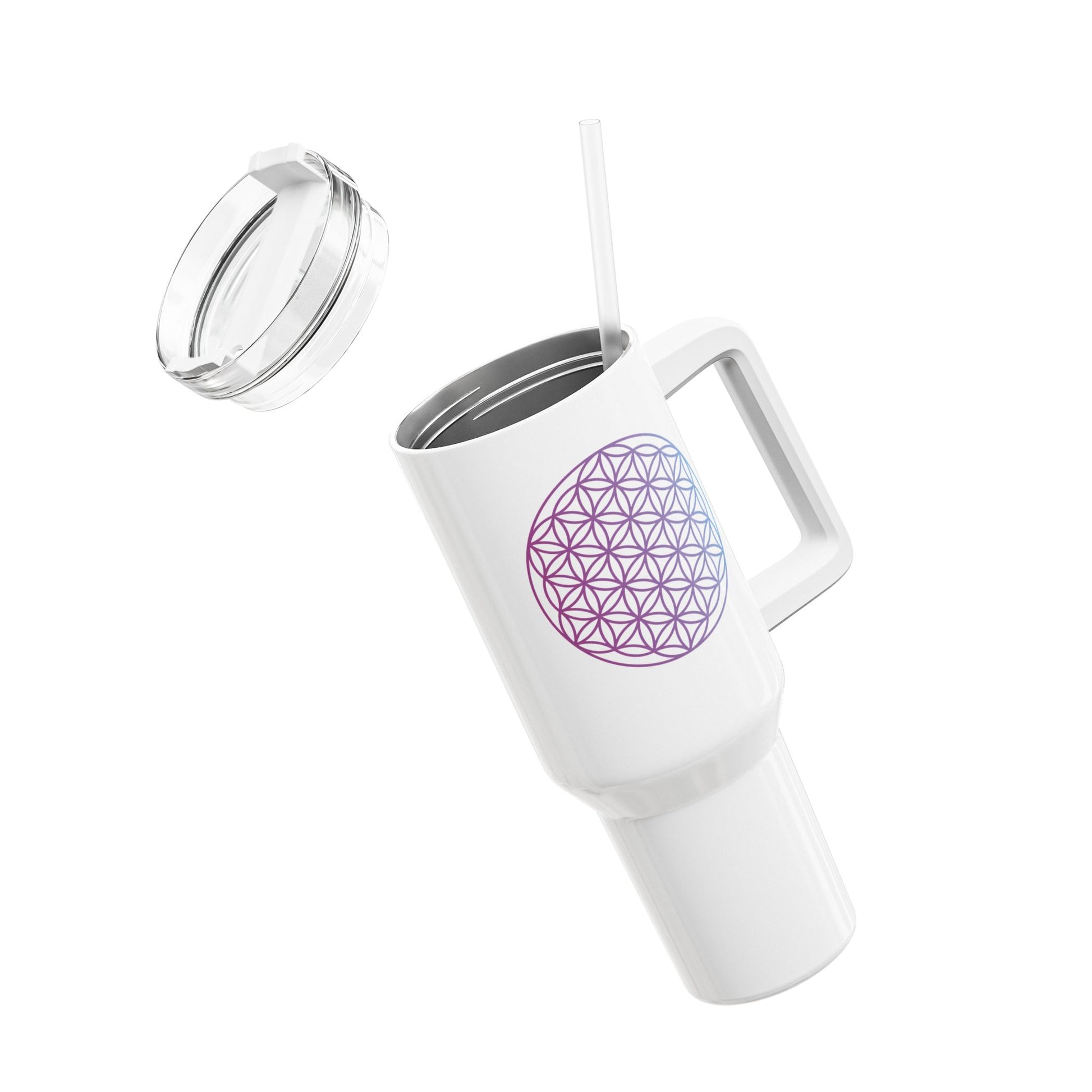 BLUME DES LEBENS ROSA VIOLET • Tumbler mit Henkel & Strohhalm • XXL Reisebecher 1,2L