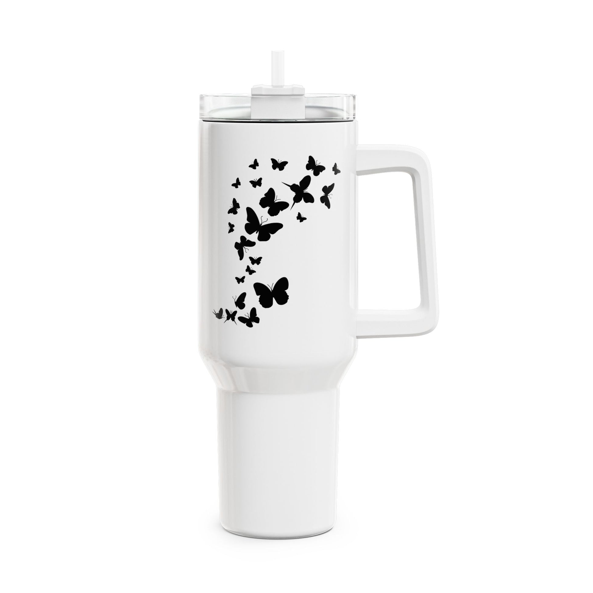 SCHMETTERLINGE FALTER TIERMOTIV • Tumbler mit Henkel & Strohhalm • XXL Reisebecher 1,2L