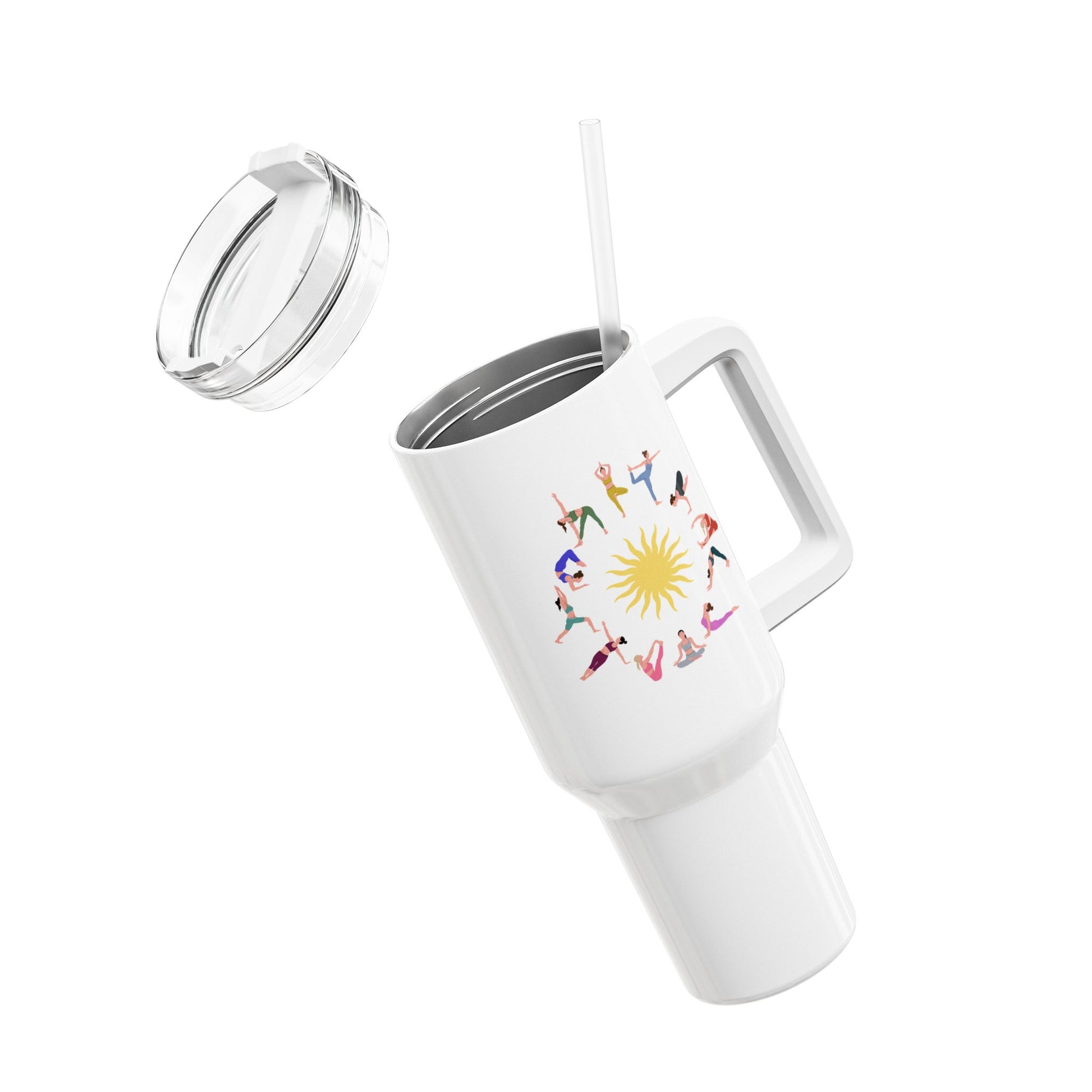 YOGA POSEN ASANAS POSITIONEN • Tumbler mit Henkel & Strohhalm • XXL Reisebecher 1,2L