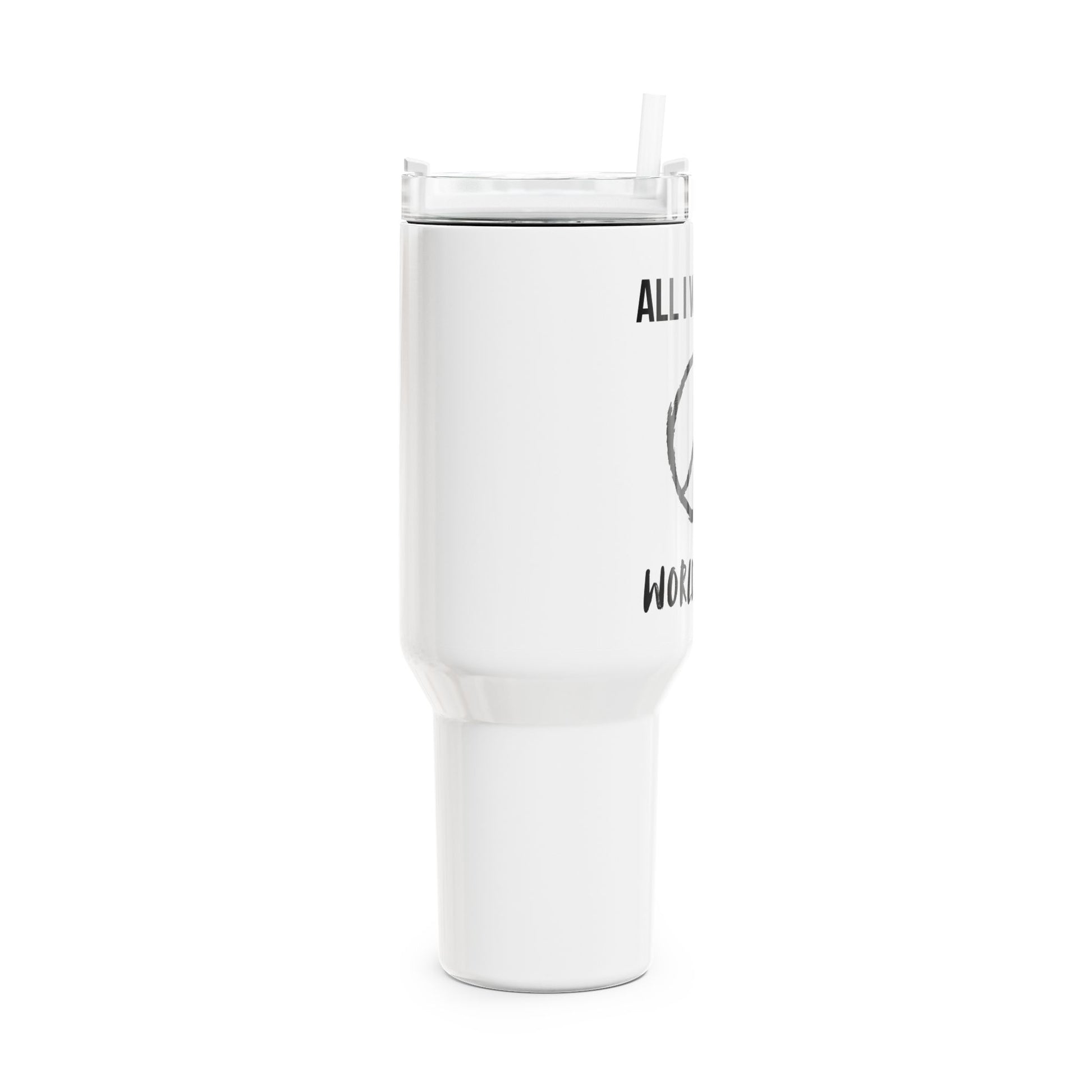 ALL I WANT IS WORLDPEACE • PEACE ZEICHEN • Tumbler mit Henkel & Strohhalm • XXL Reisebecher 1,2L