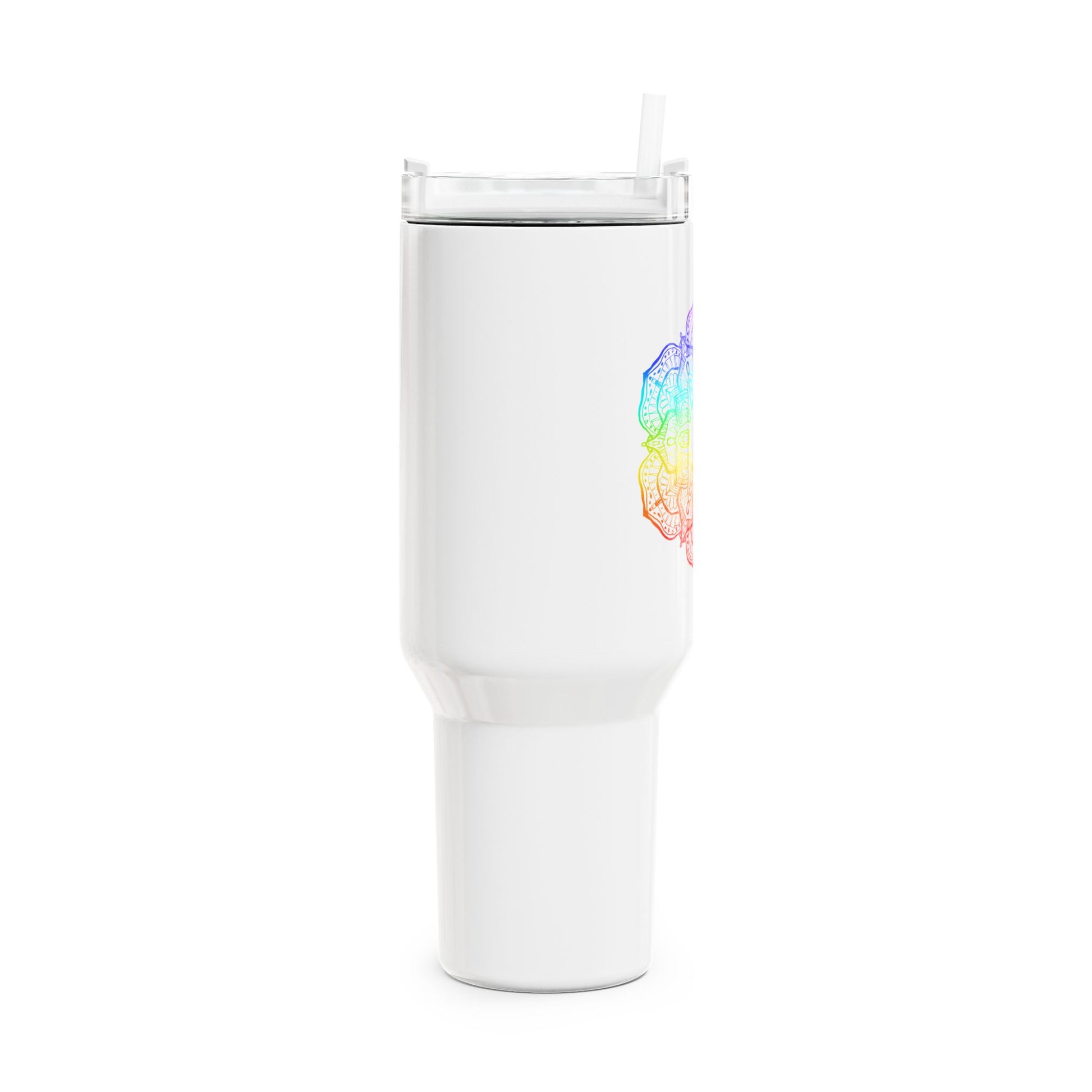 MANDALA BLUME REGENBOGEN FARBEN BUNT • Tumbler mit Henkel & Strohhalm • XXL Reisebecher 1,2L