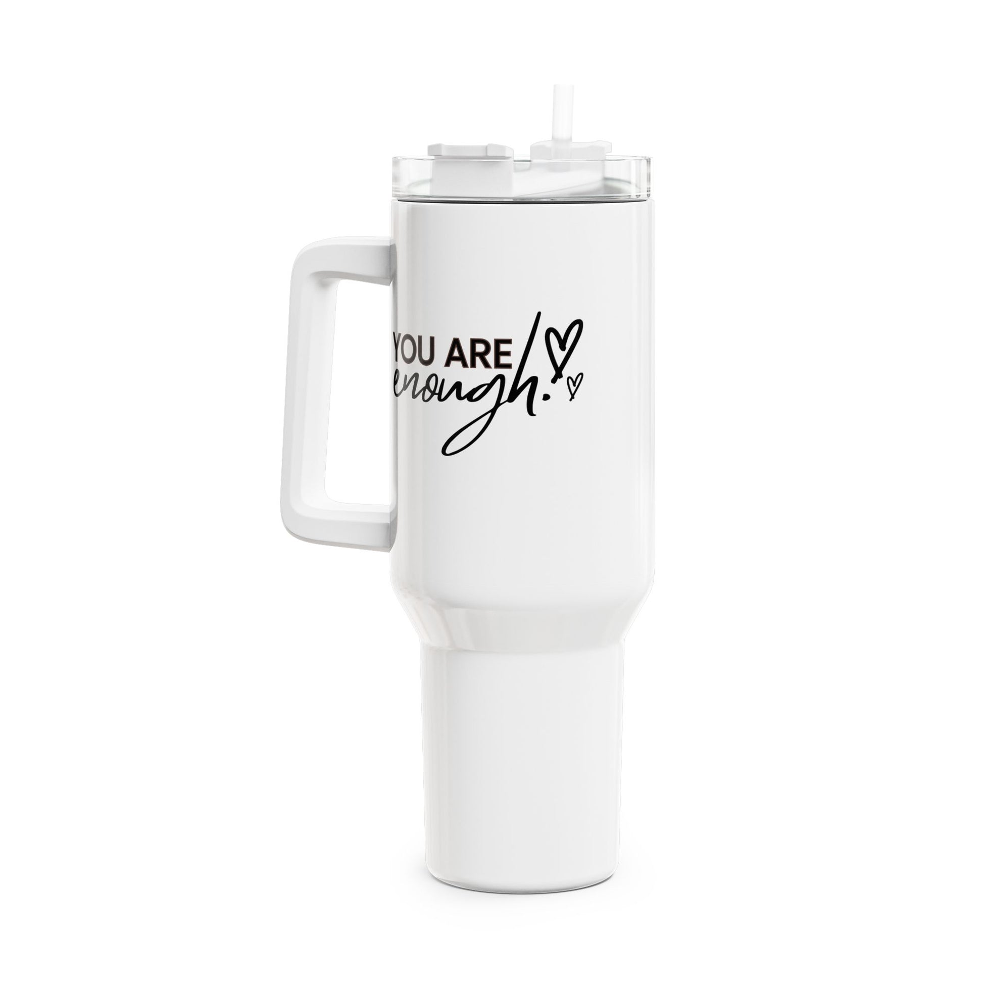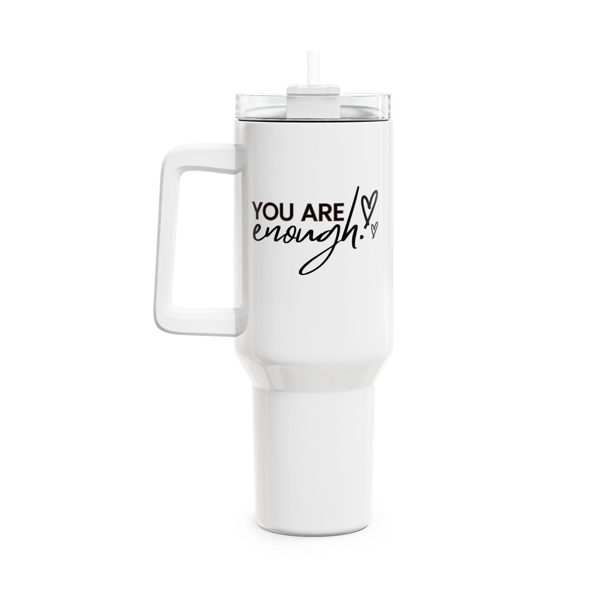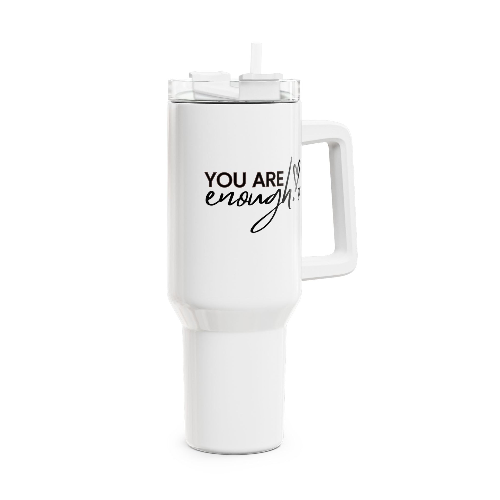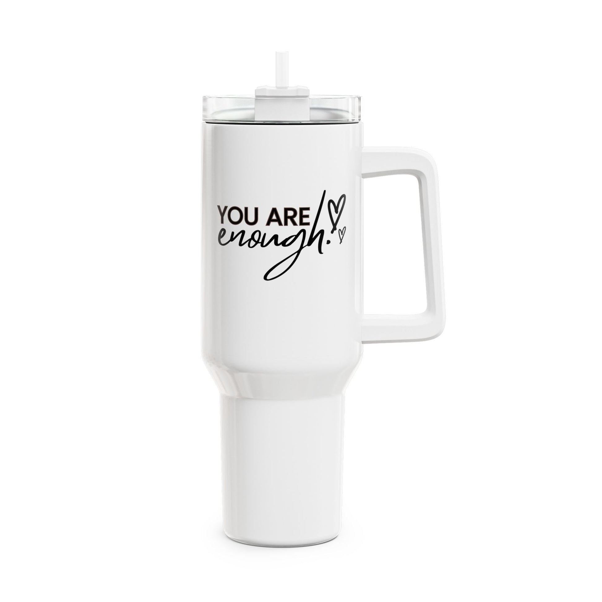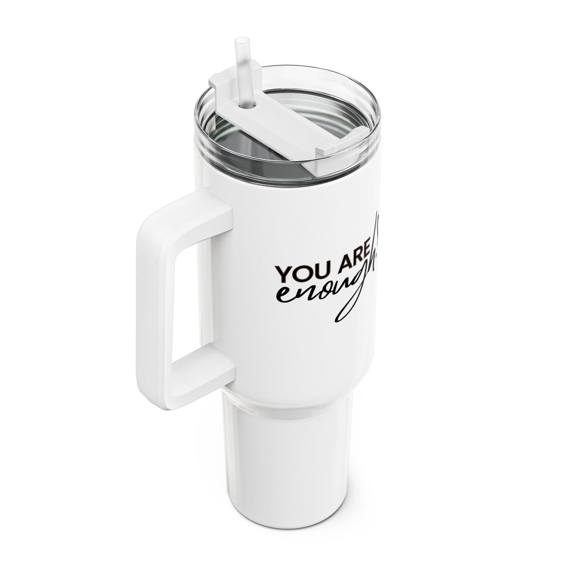 YOU ARE ENOUG - HERZMOTIV • LIEBESBEWEIS LOVE Tumbler mit Henkel & Strohhalm • XXL Reisebecher 1,2L