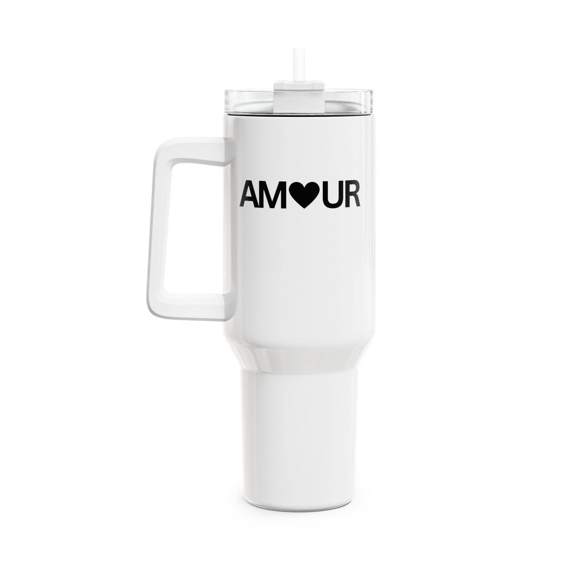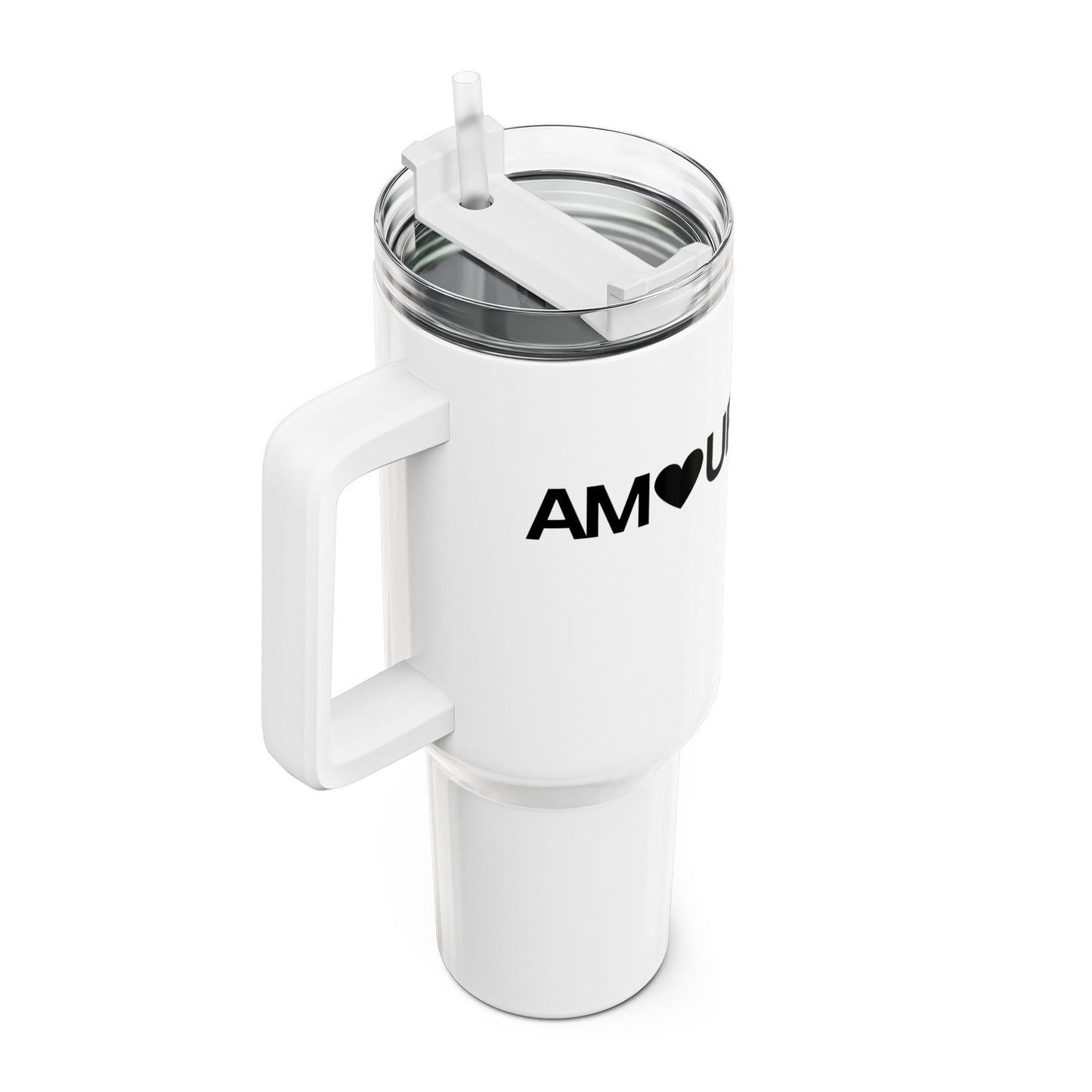AMOUR HERZ - LIEBESBEWEIS LIEBESBOTSCHAFT • Tumbler mit Henkel & Strohhalm • XXL Reisebecher 1,2L