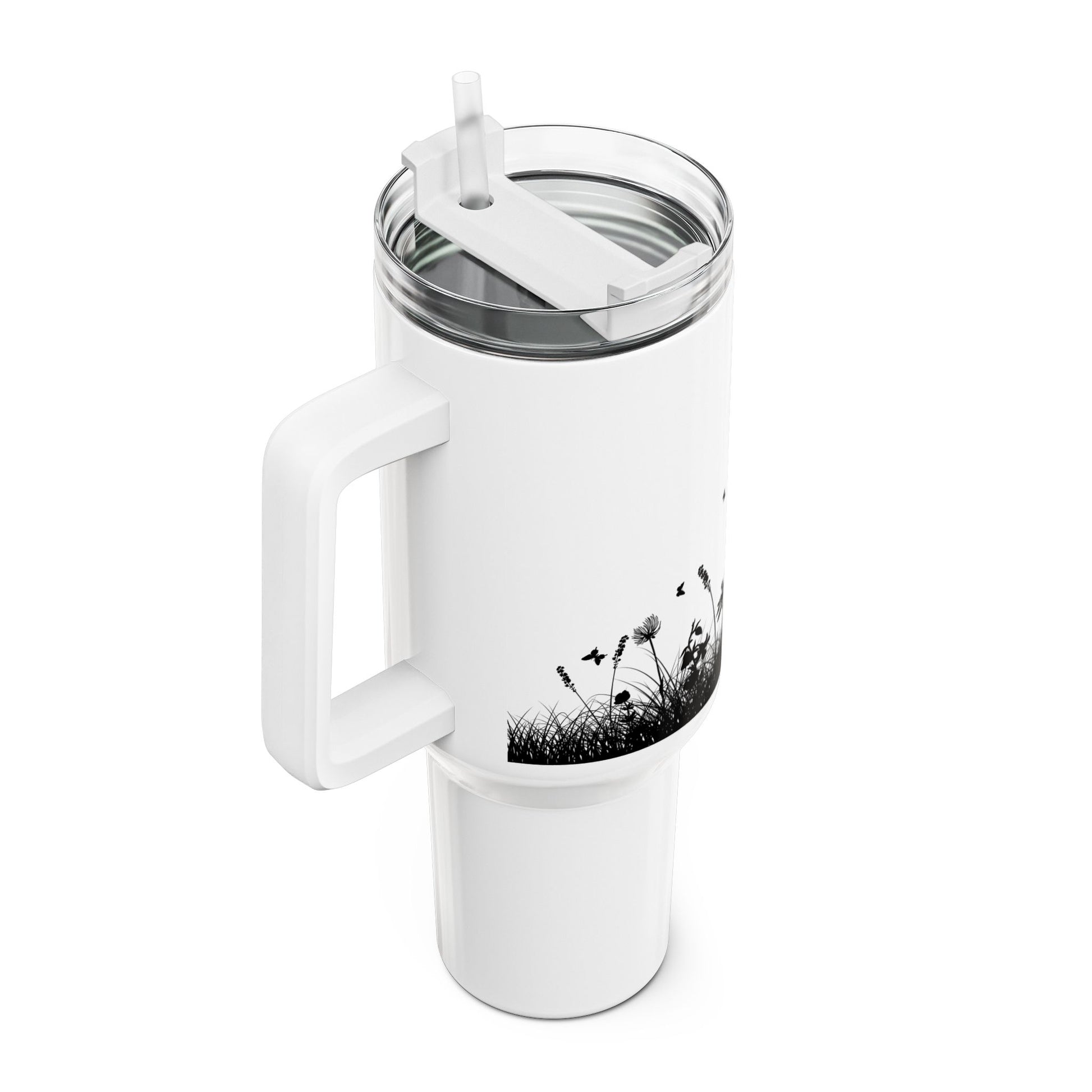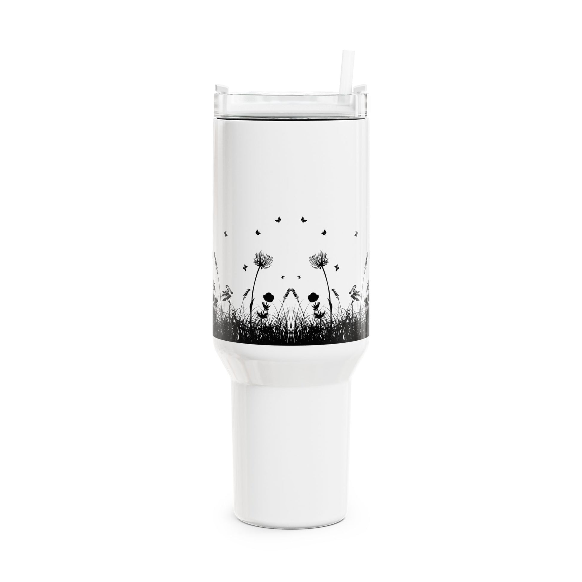 BLUMENWIESE SCHMETTERLINGE • Tumbler mit Henkel & Strohhalm • XXL Reisebecher 1,2L