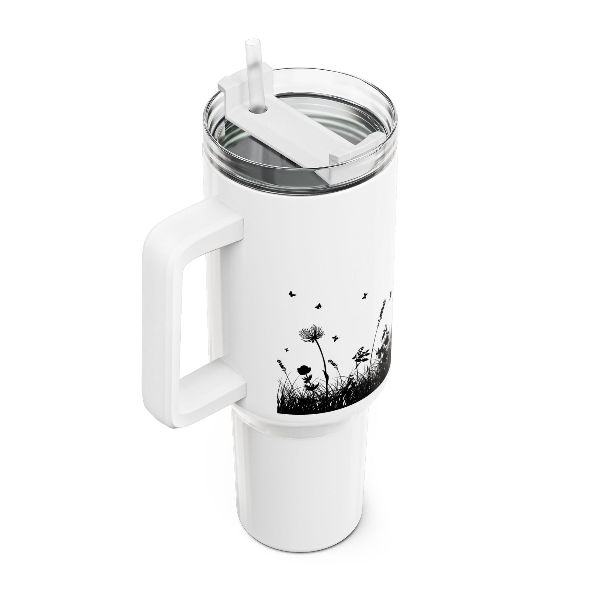 SCHMETTERLINGE BLUMENWIESE • Tumbler mit Henkel & Strohhalm • XXL Reisebecher 1,2L