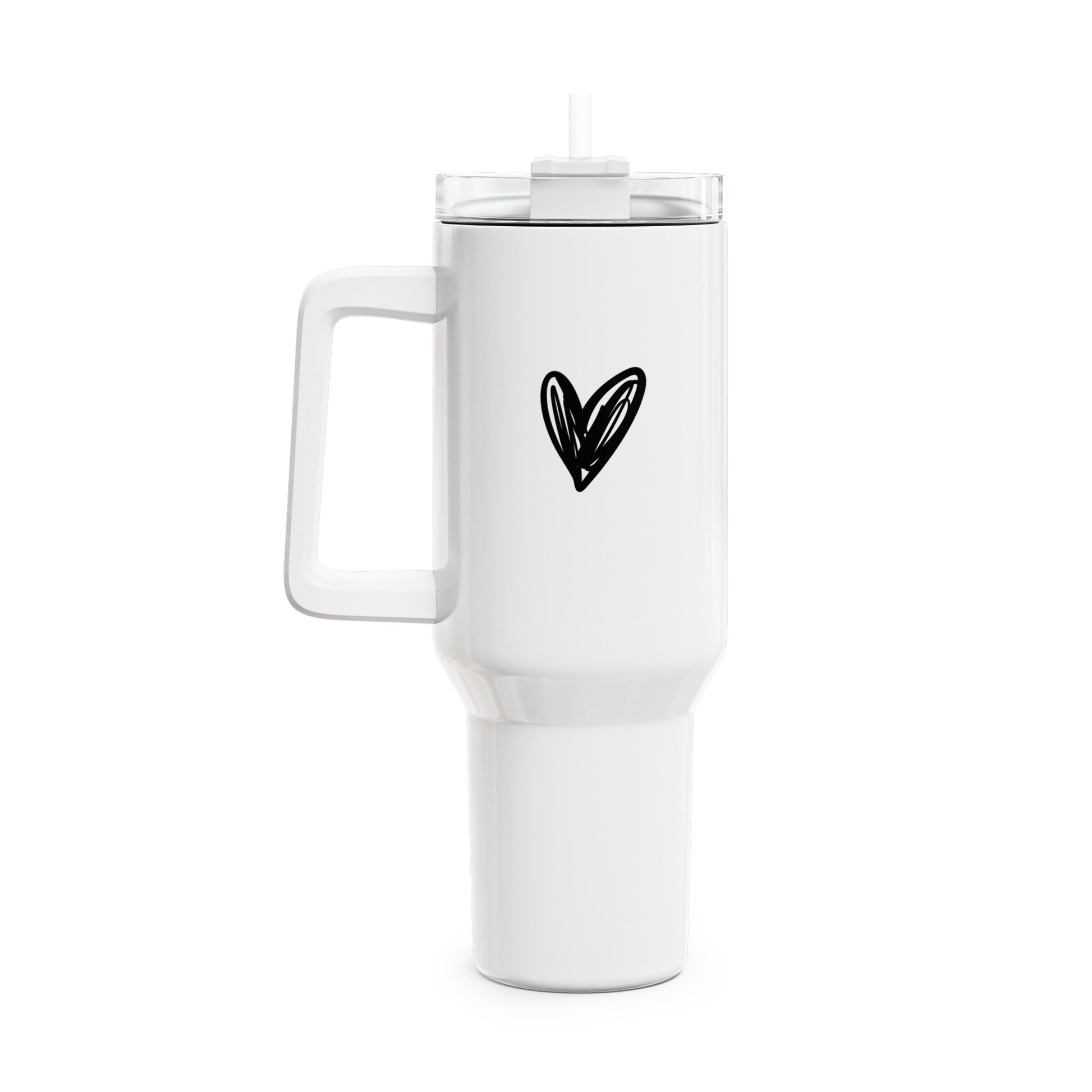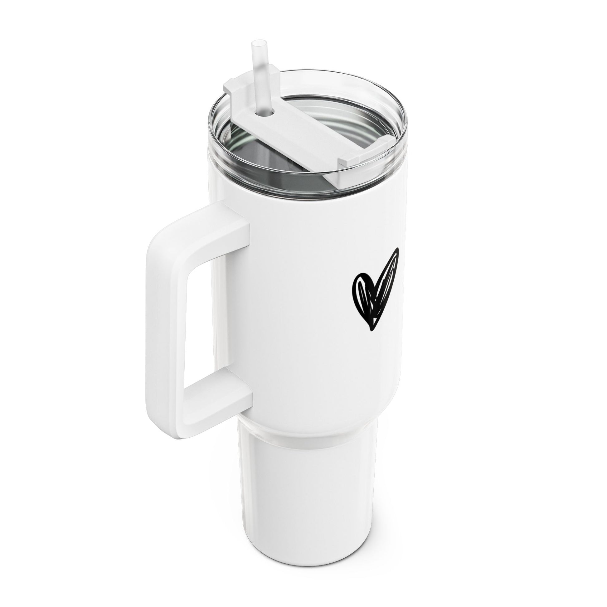 HERZCHEN ZEICHNUNG • Liebesbeweis Geschenk, LOVE Liebesbotschaft • Tumbler mit Henkel & Strohhalm • XXL Reisebecher 1,2L