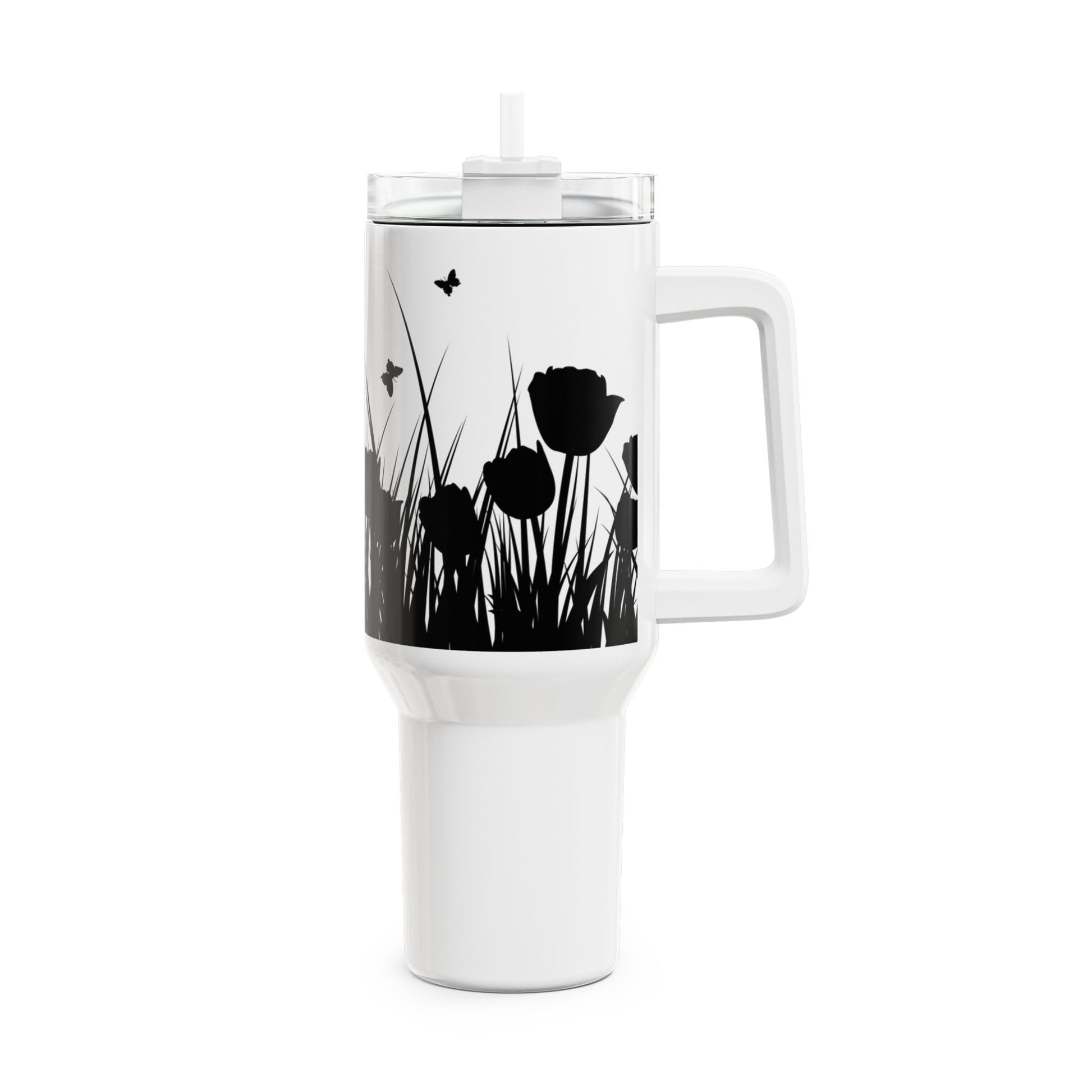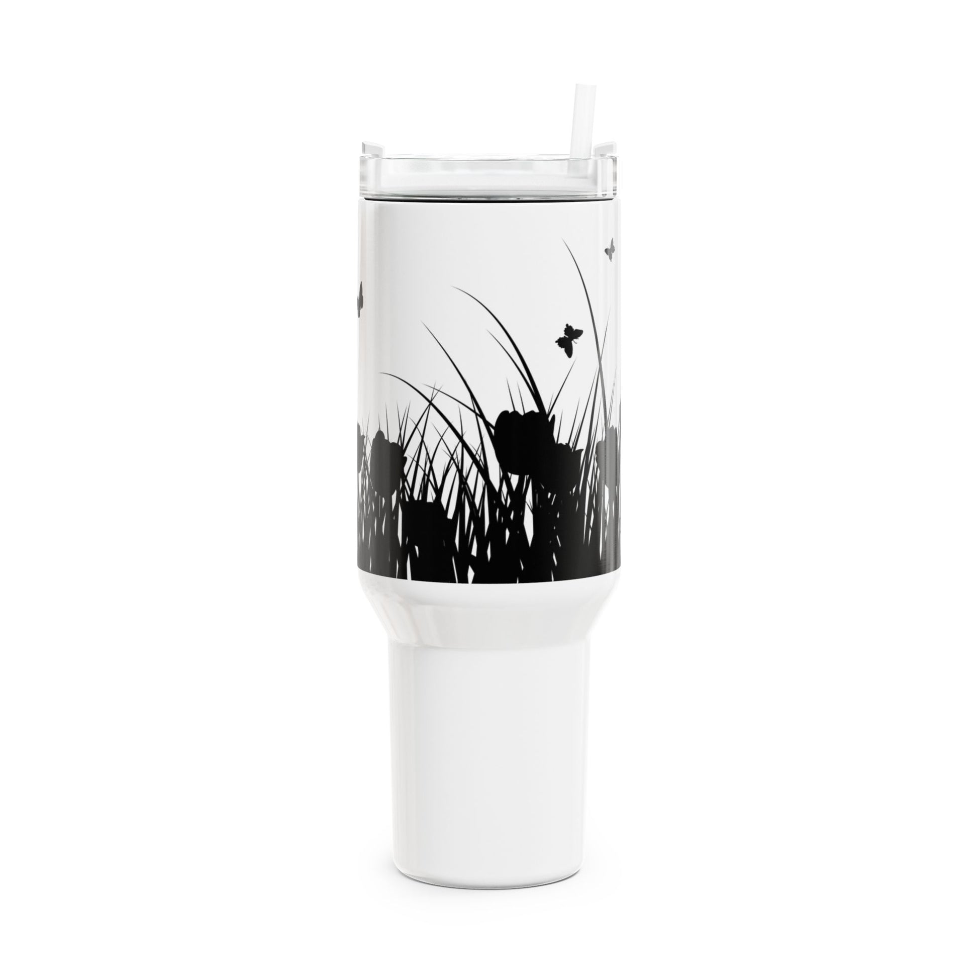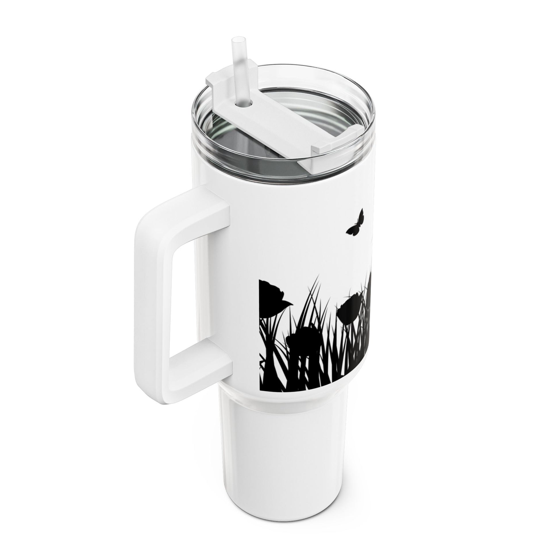 MOHNBLUMEN WIESE SCHMETTERLINGE • Tumbler mit Henkel & Strohhalm • XXL Reisebecher 1,2L