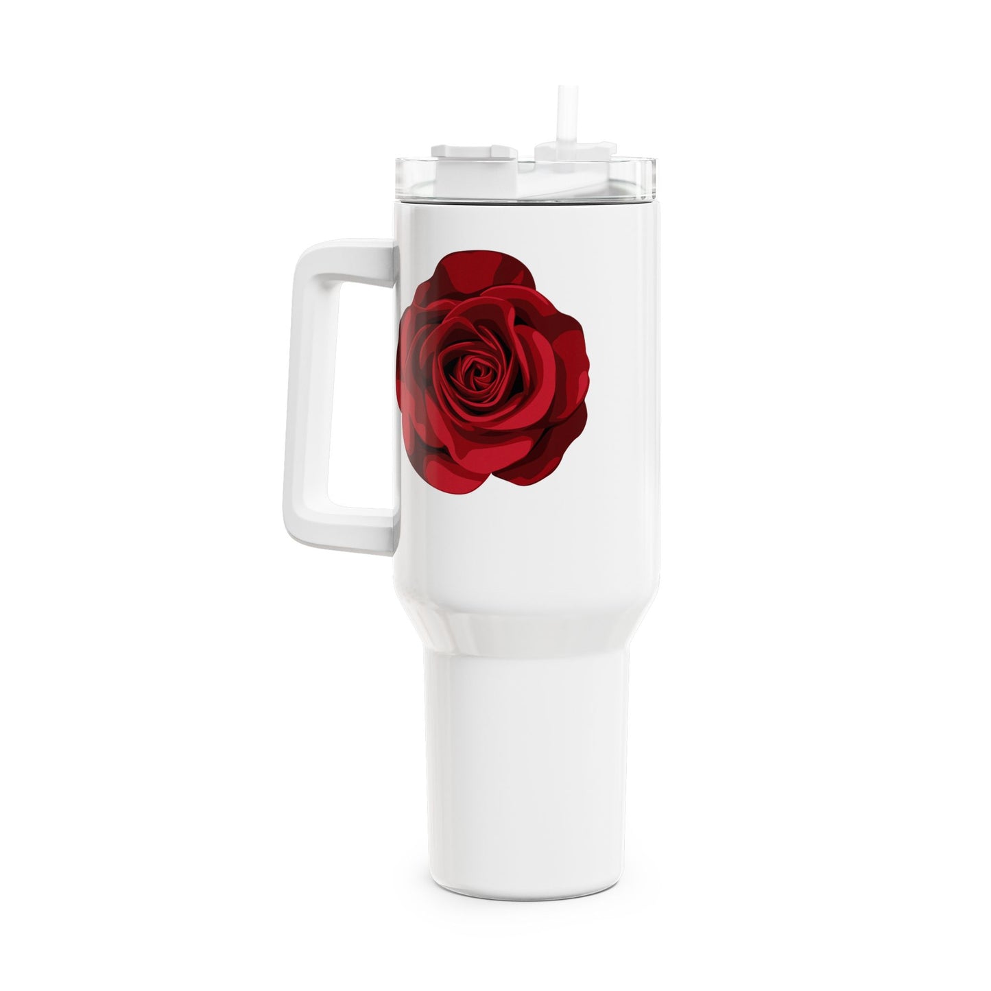 ROSENBLÜTE BLUMENBLÜTE ROT • Tumbler mit Henkel & Strohhalm • XXL Reisebecher 1,2L