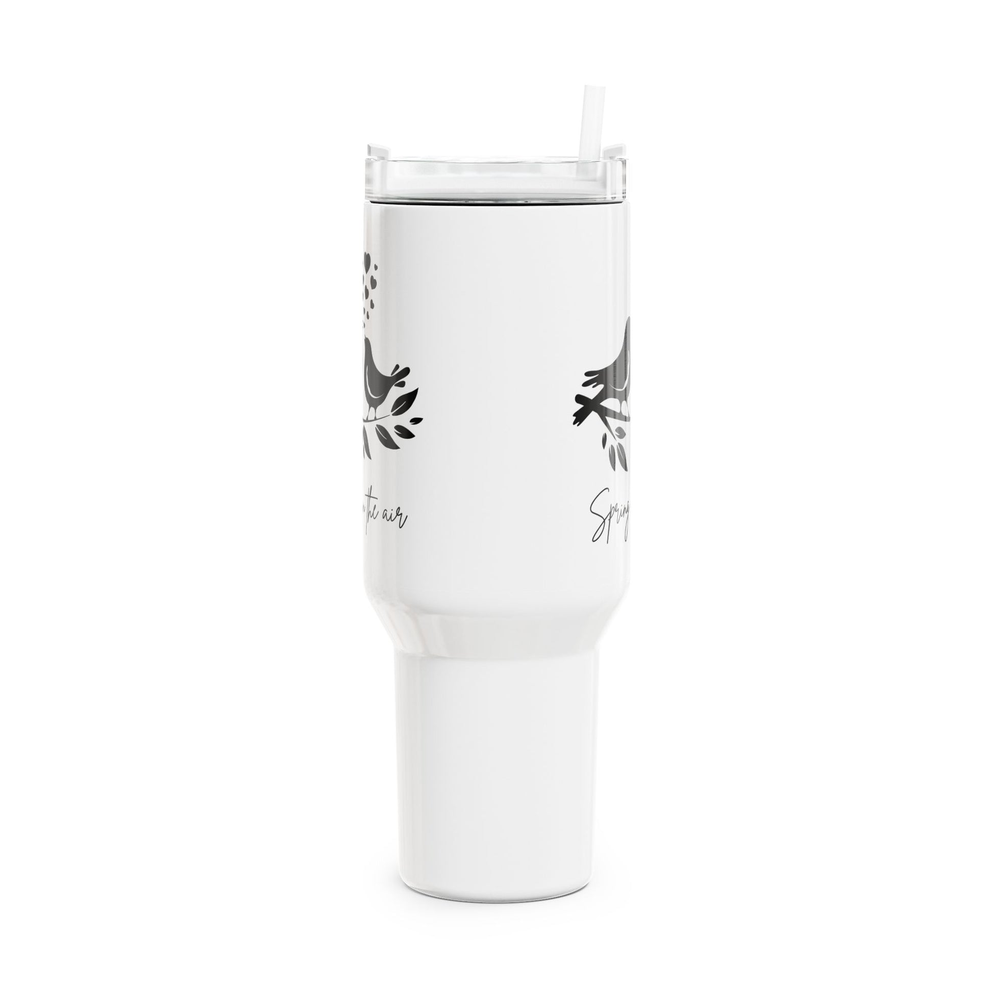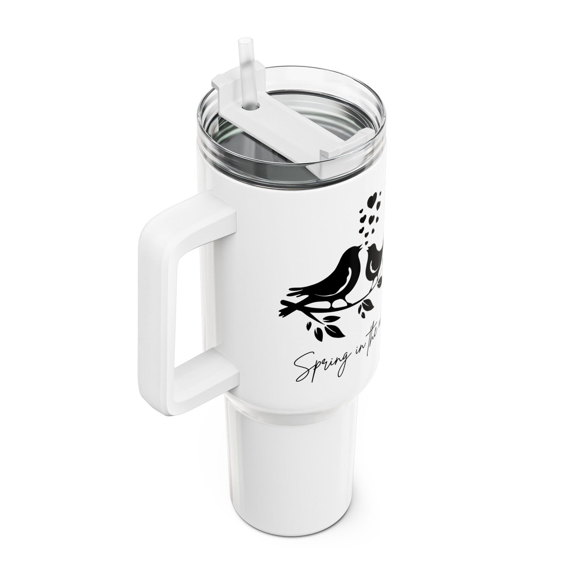 SPRING IS IN THE AIR - VÖGELCHEN VERLIEBT HERZ • Tumbler mit Henkel & Strohhalm • XXL Reisebecher 1,2L