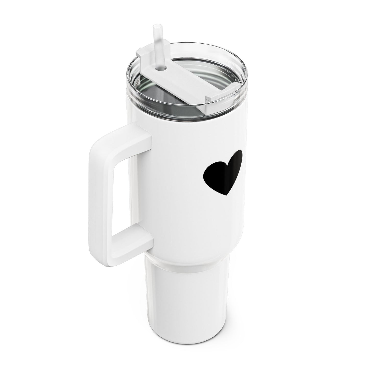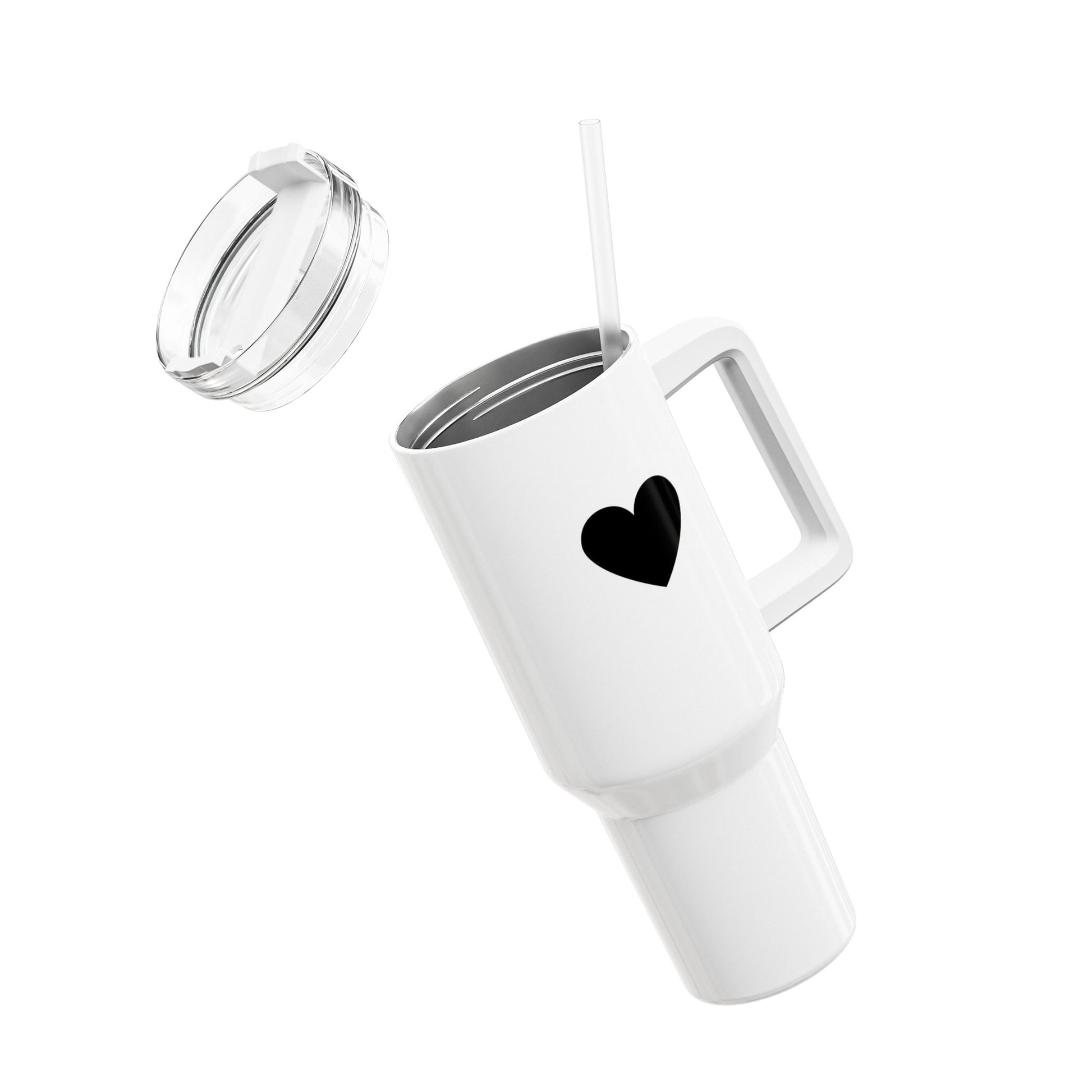 HERZ TASSE GROß XXL • LIEBES Geschenk, LOVE Liebesbotschaft • Tumbler mit Henkel & Strohhalm • XXL Reisebecher 1,2L