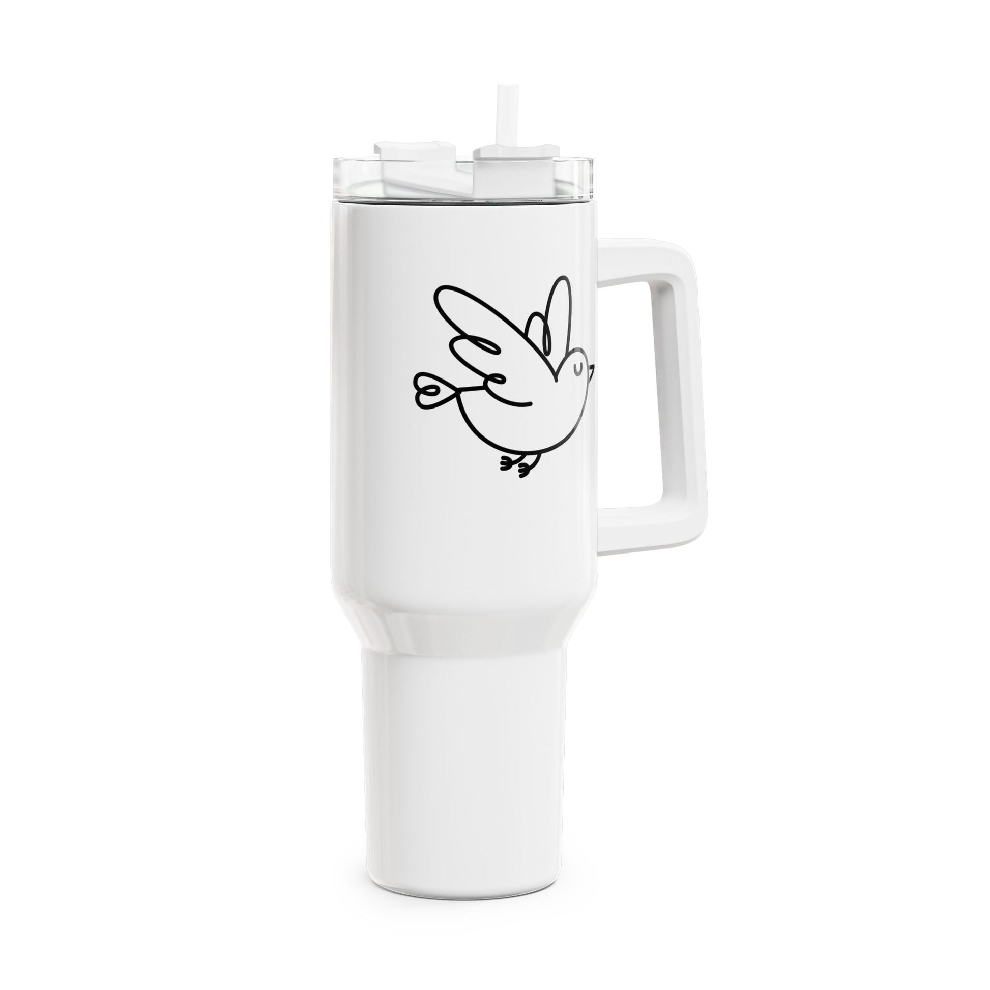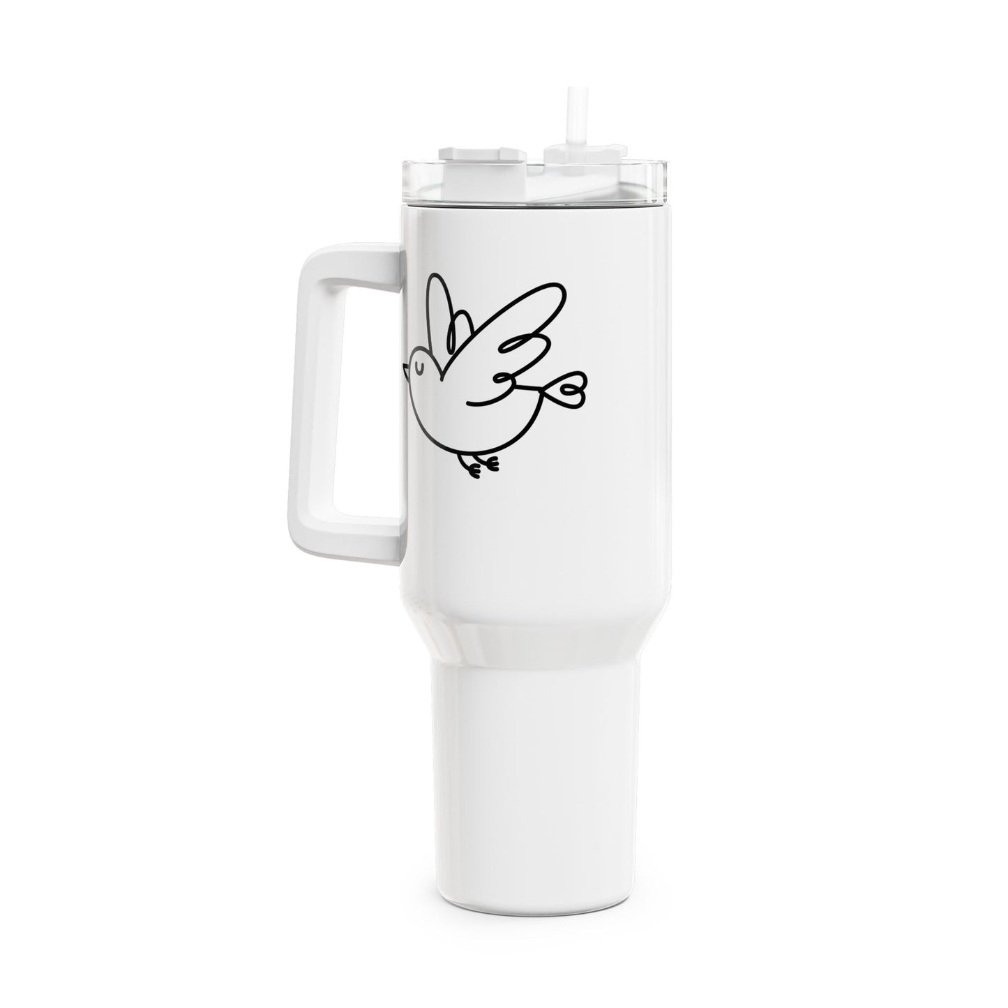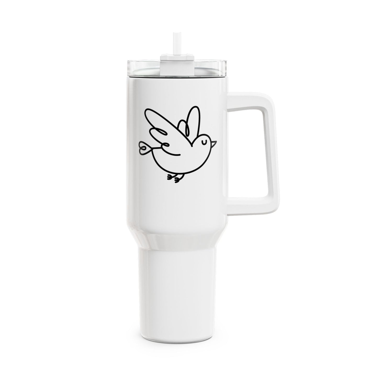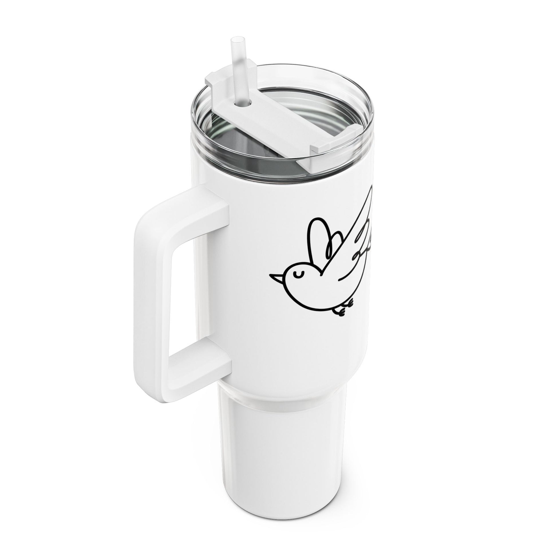VOGEL HERZ ZEICHNUNG NIEDLICH SÜß • Tumbler mit Henkel & Strohhalm • XXL Reisebecher 1,2L