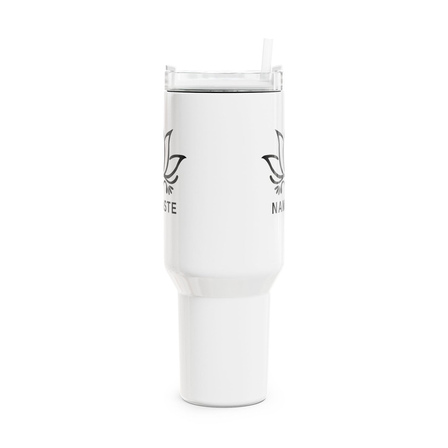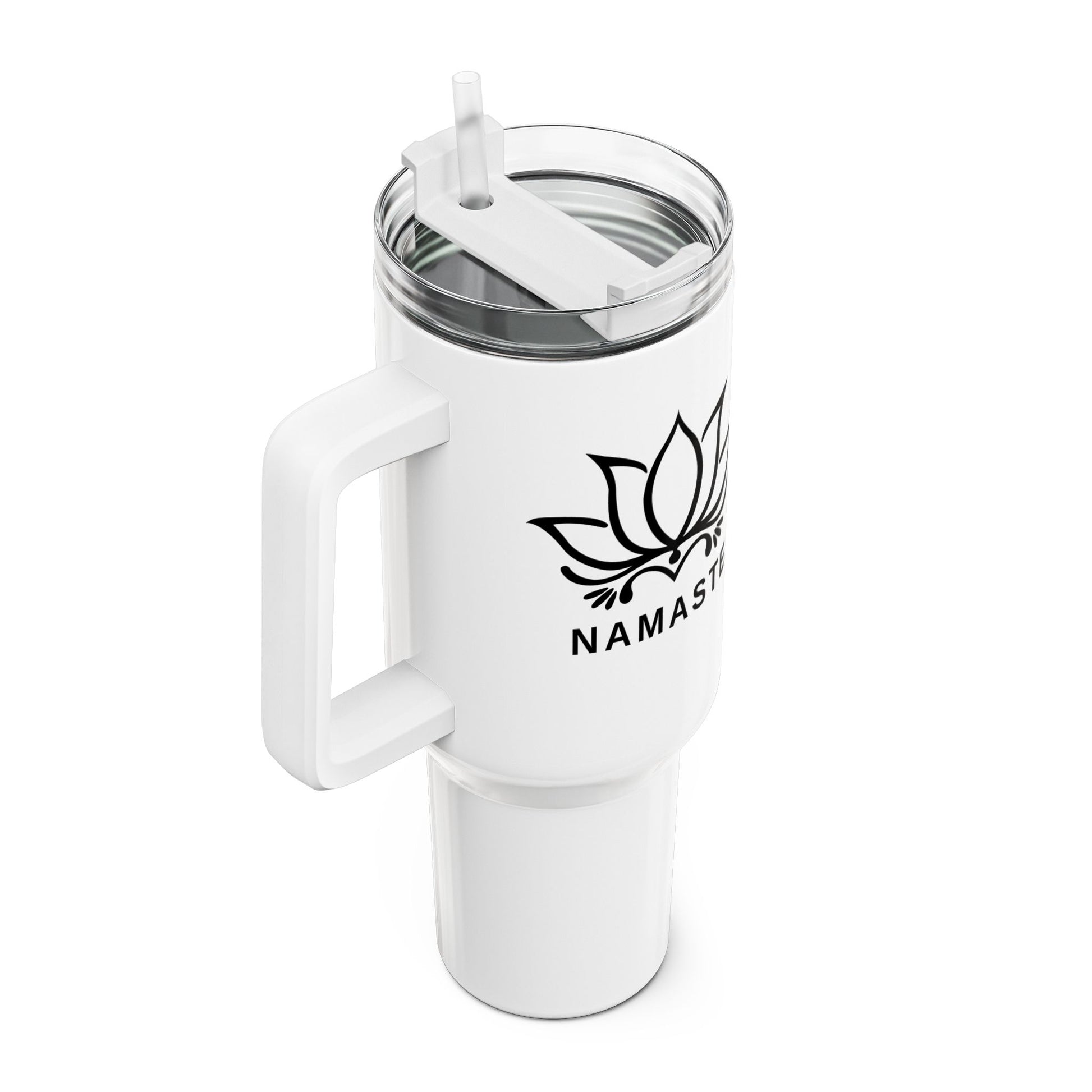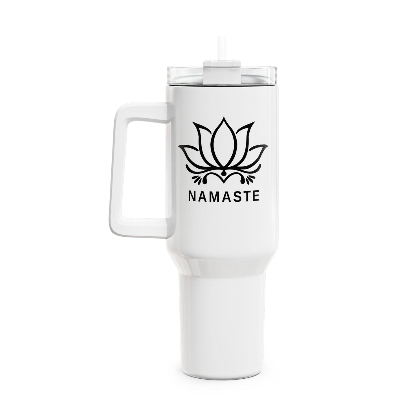 NAMASTE LOTUSBLUME BLÜTENMOTIV YOGA SPIRITUELLMANDALA BLUME KUNSTDRUCK HANDGEMALT • Tumbler mit Henkel & Strohhalm • XXL Reisebecher 1,2L