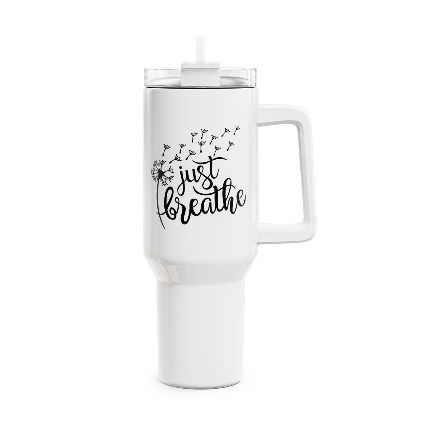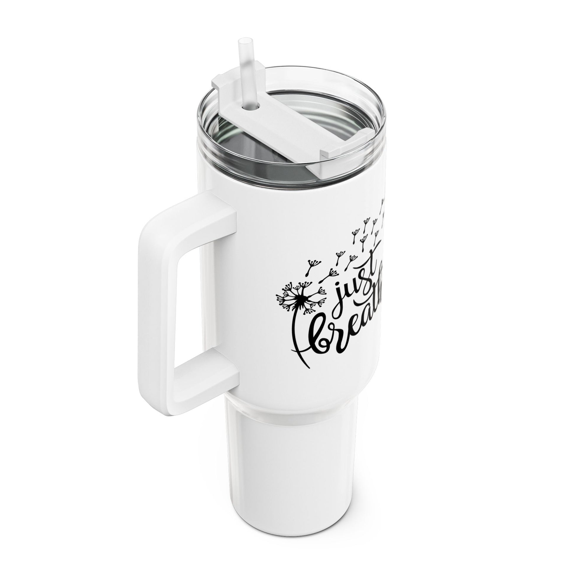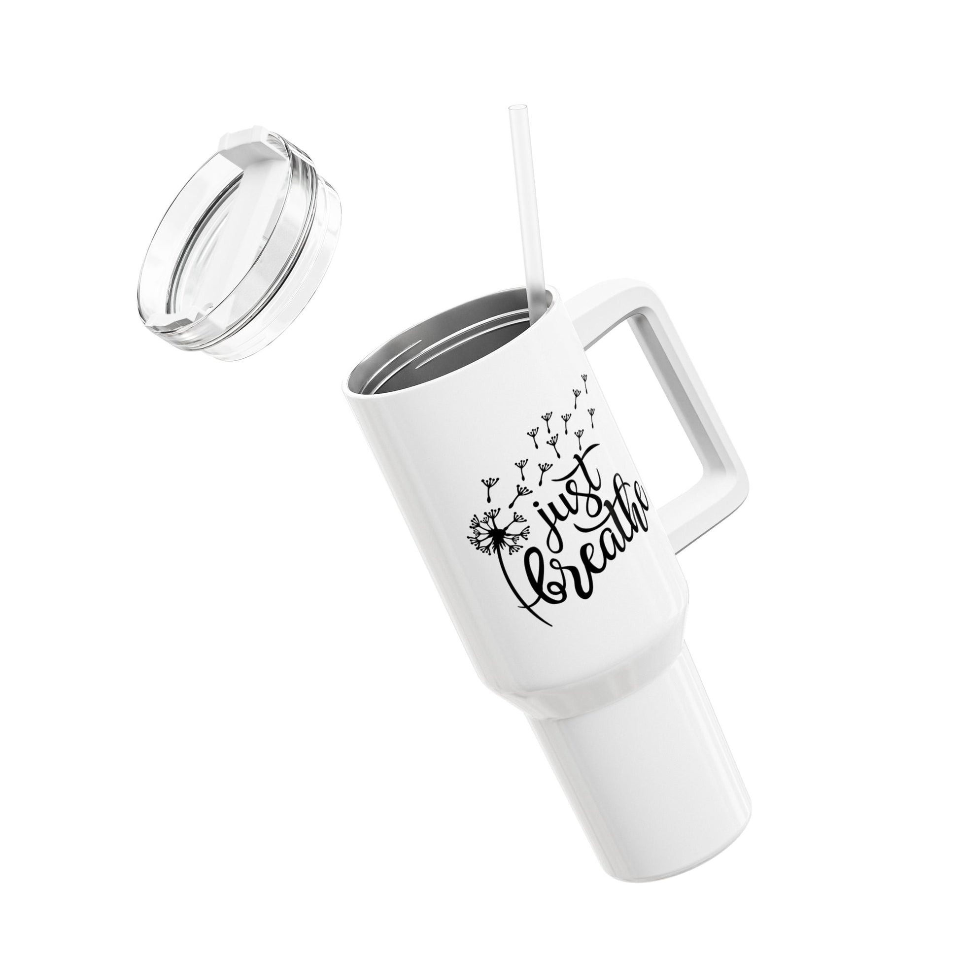 JUST BREATHE - PUSTEBLUME HANDGEMALT • Tumbler mit Henkel & Strohhalm • XXL Reisebecher 1,2L