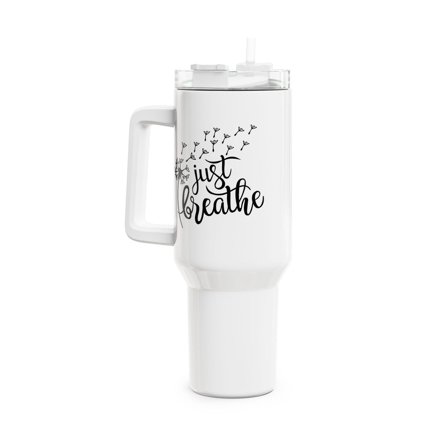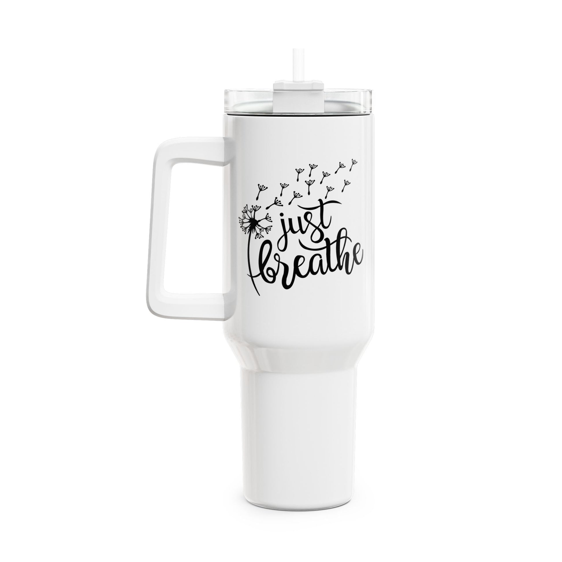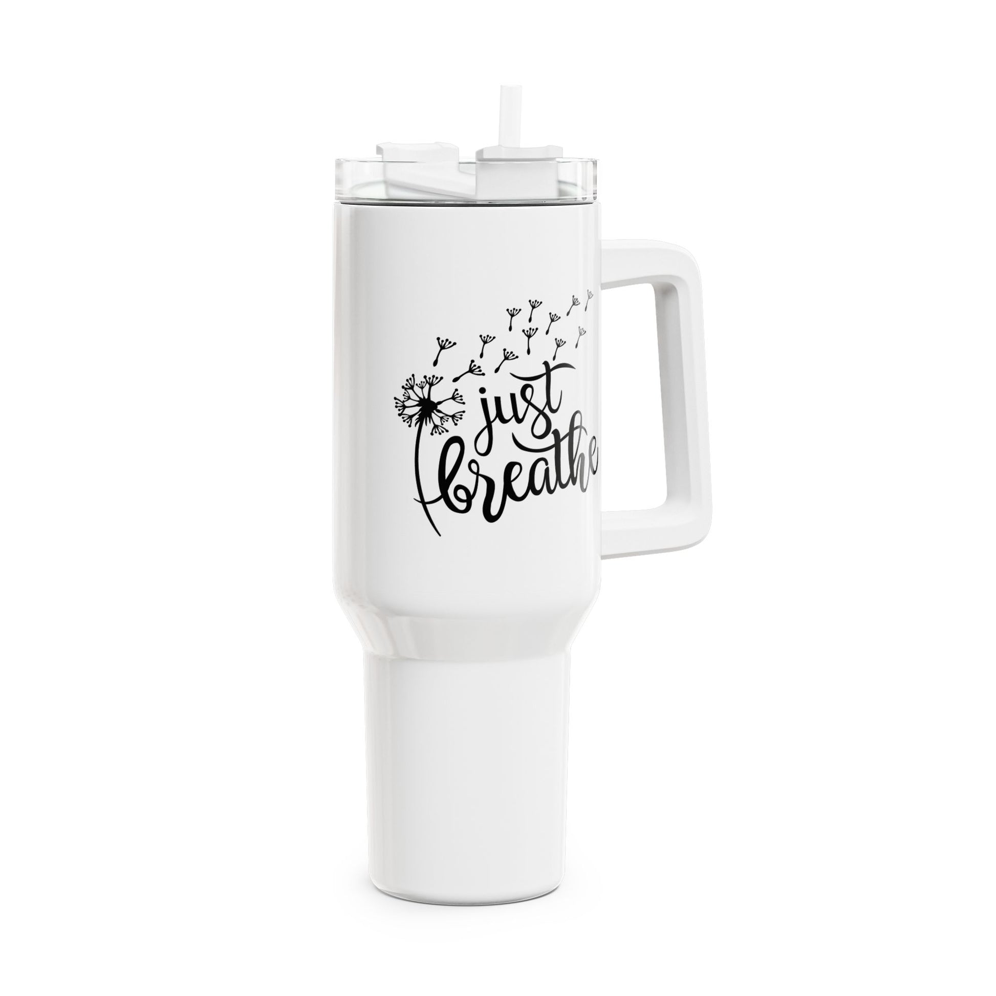 JUST BREATHE - PUSTEBLUME HANDGEMALT • Tumbler mit Henkel & Strohhalm • XXL Reisebecher 1,2L