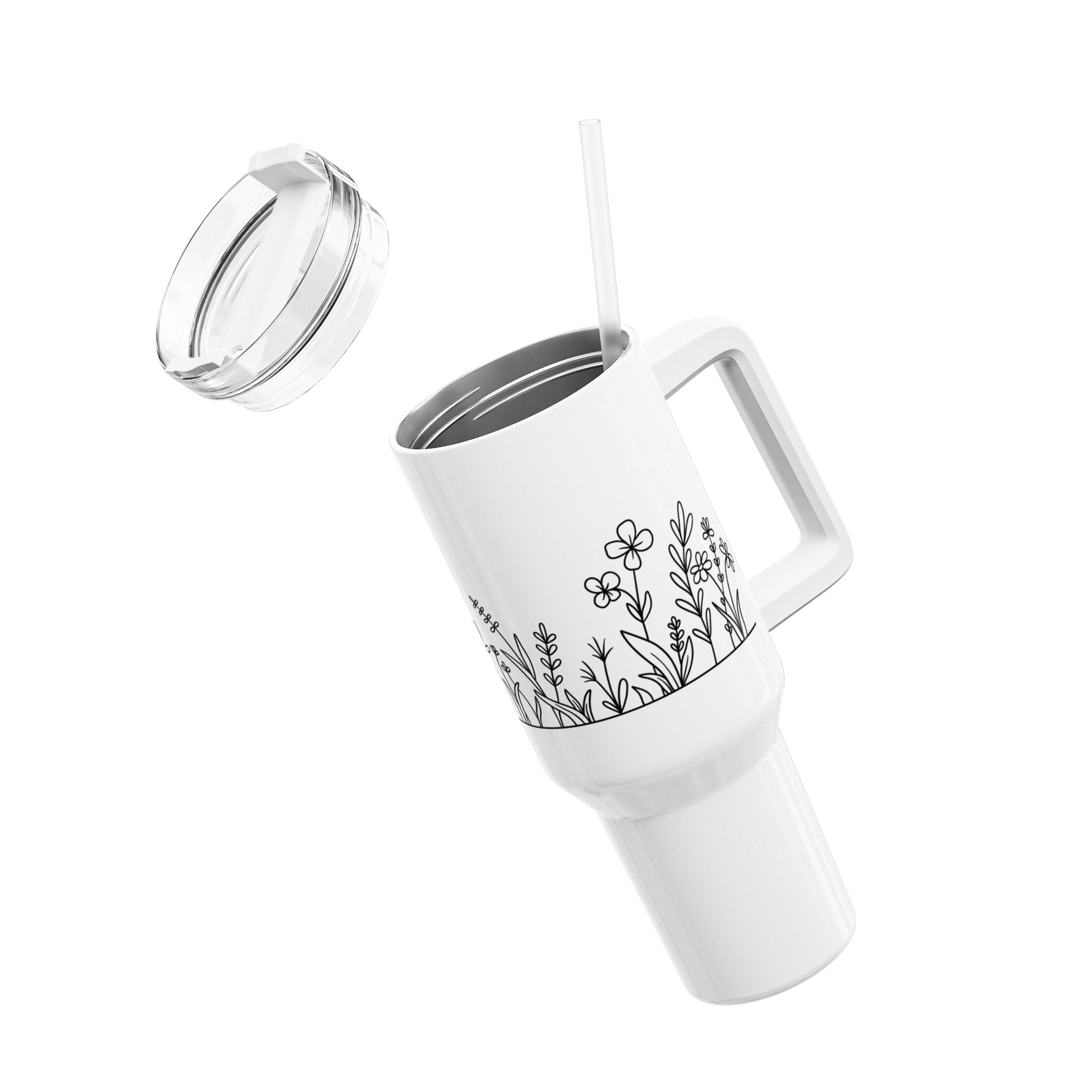 BLUMENWIESE NATURDESIGN NATURLIEBHABER • Tumbler mit Henkel & Strohhalm • XXL Reisebecher 1,2L