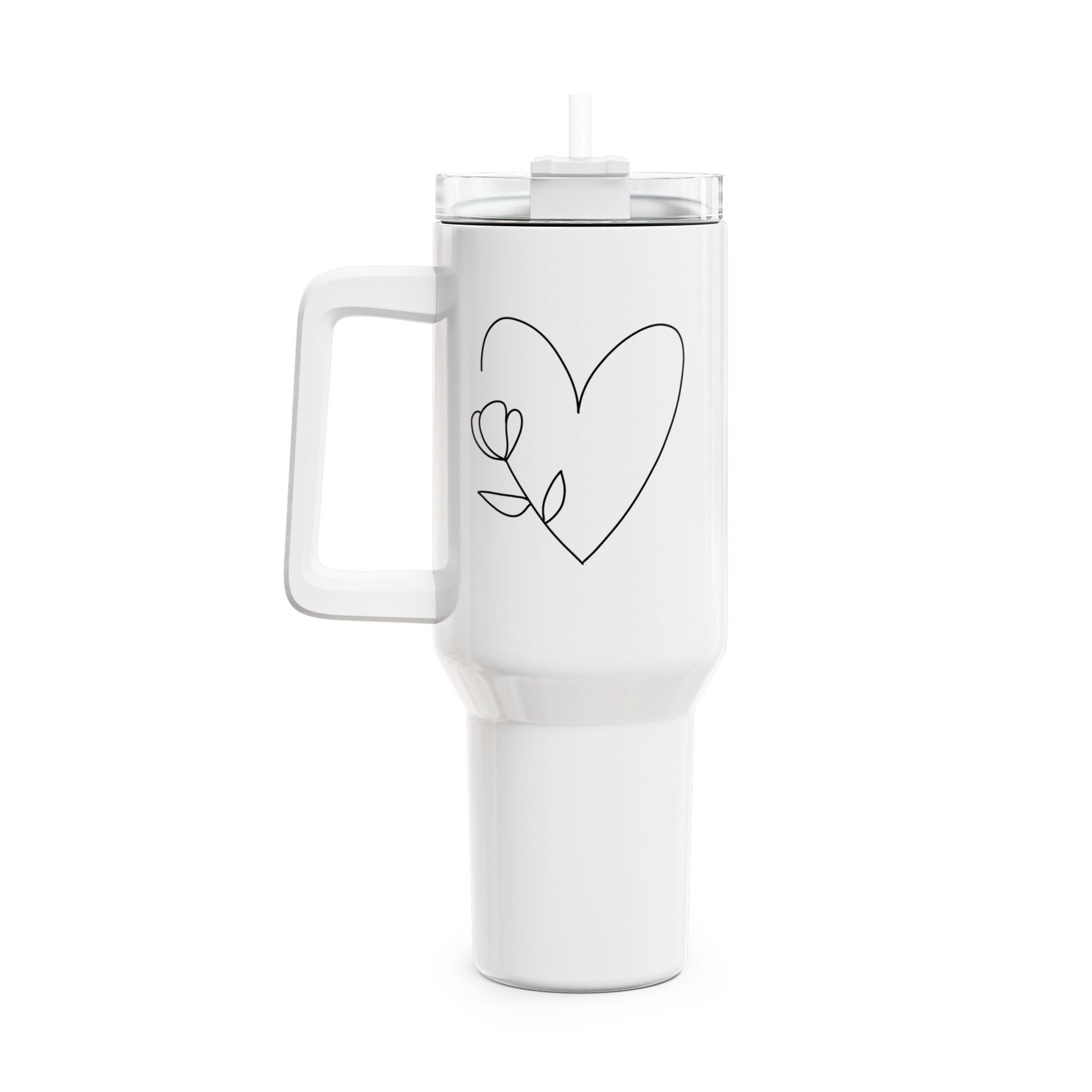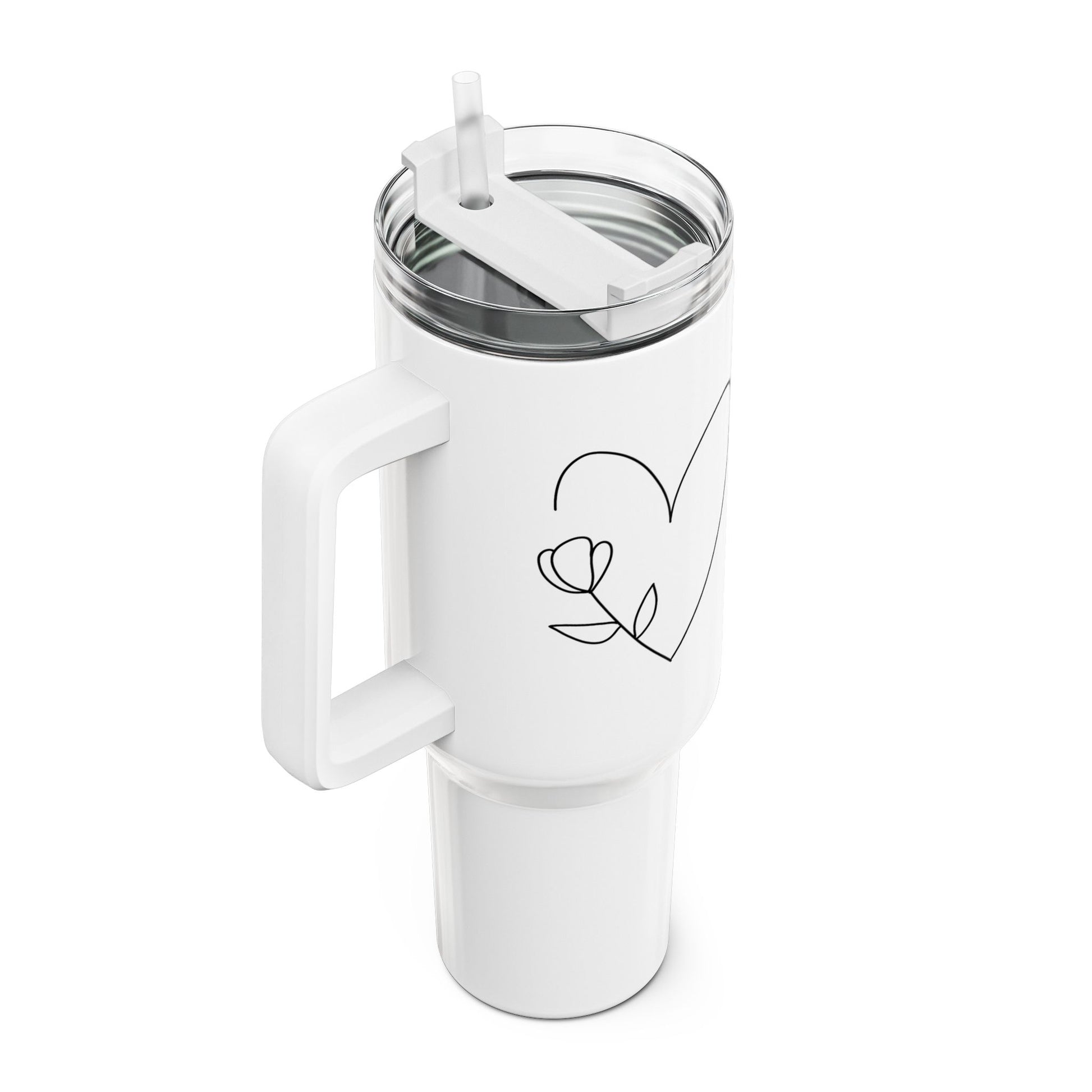 HERZ MIT TULPE • Liebesbeweis Geschenk, LOVE Liebesbotschaft • Tumbler mit Henkel & Strohhalm • XXL Reisebecher 1,2L