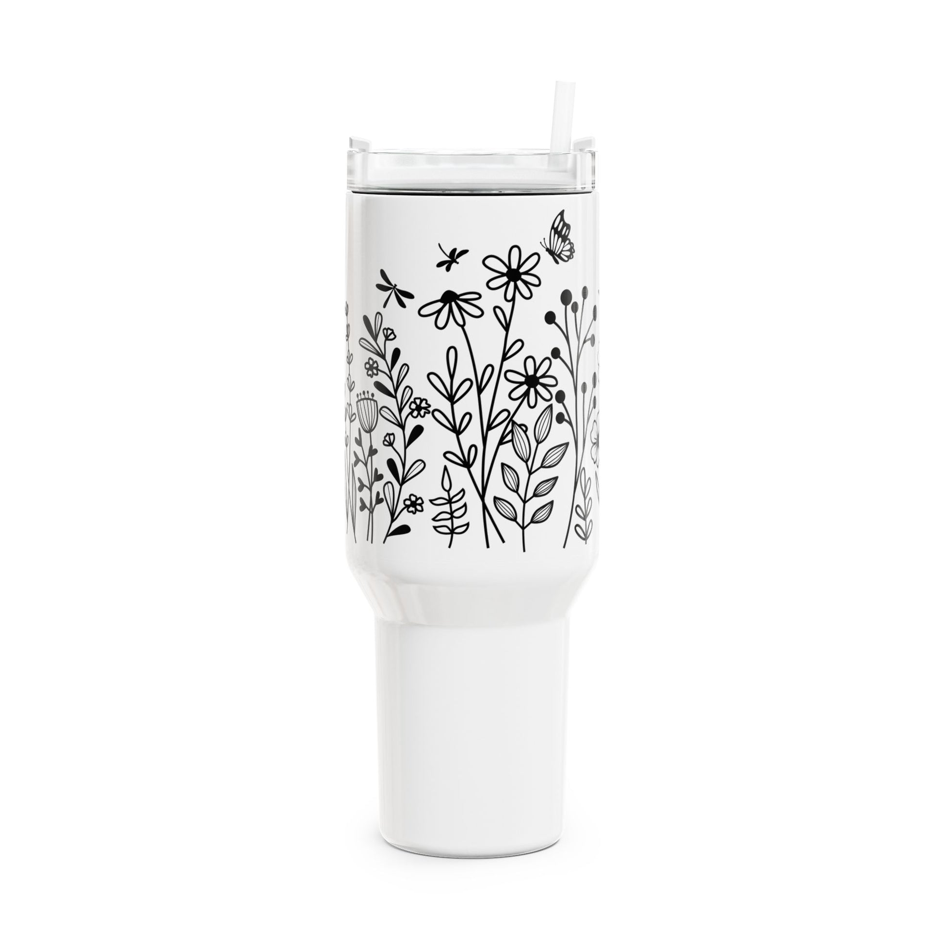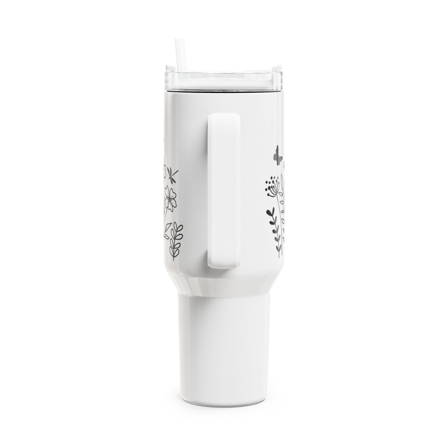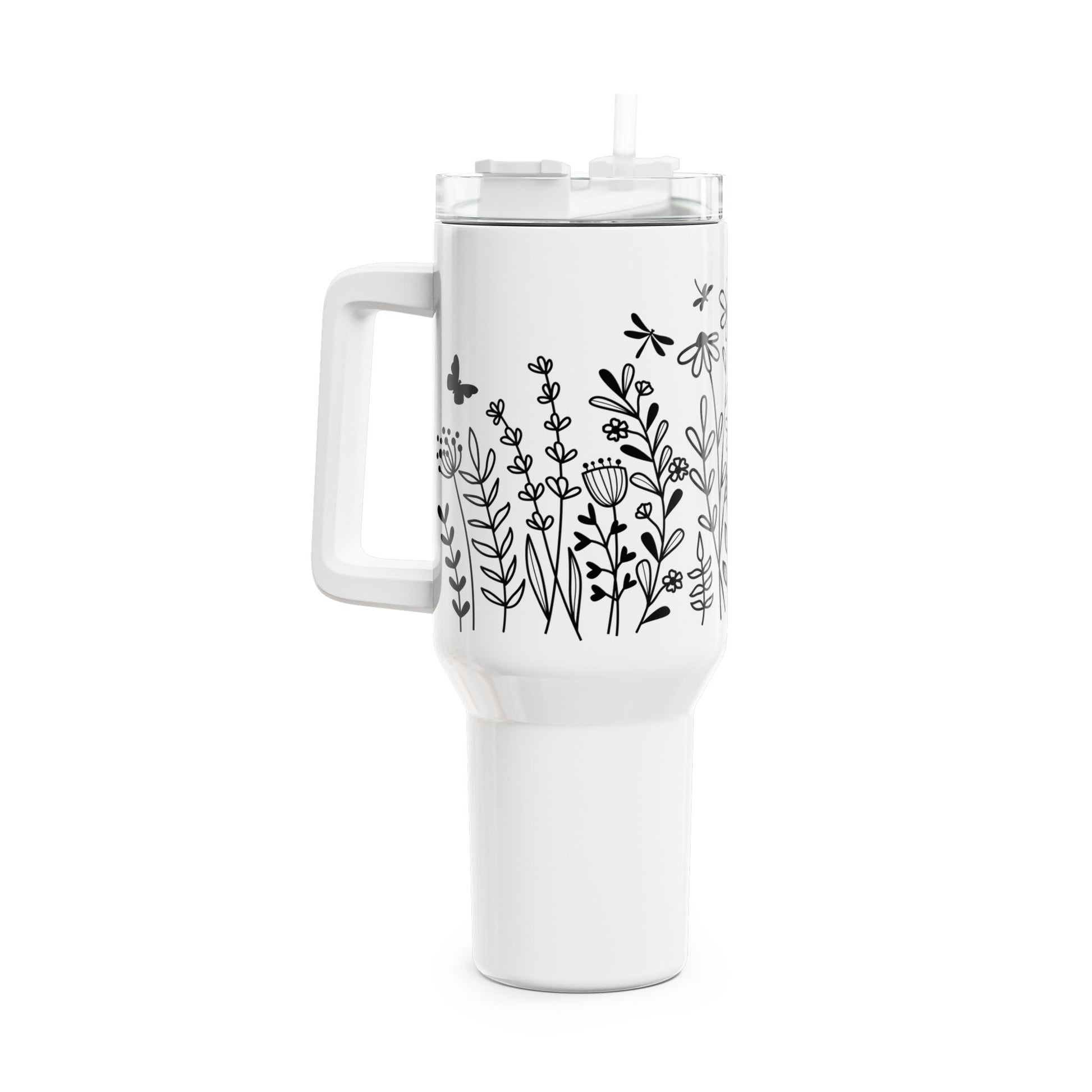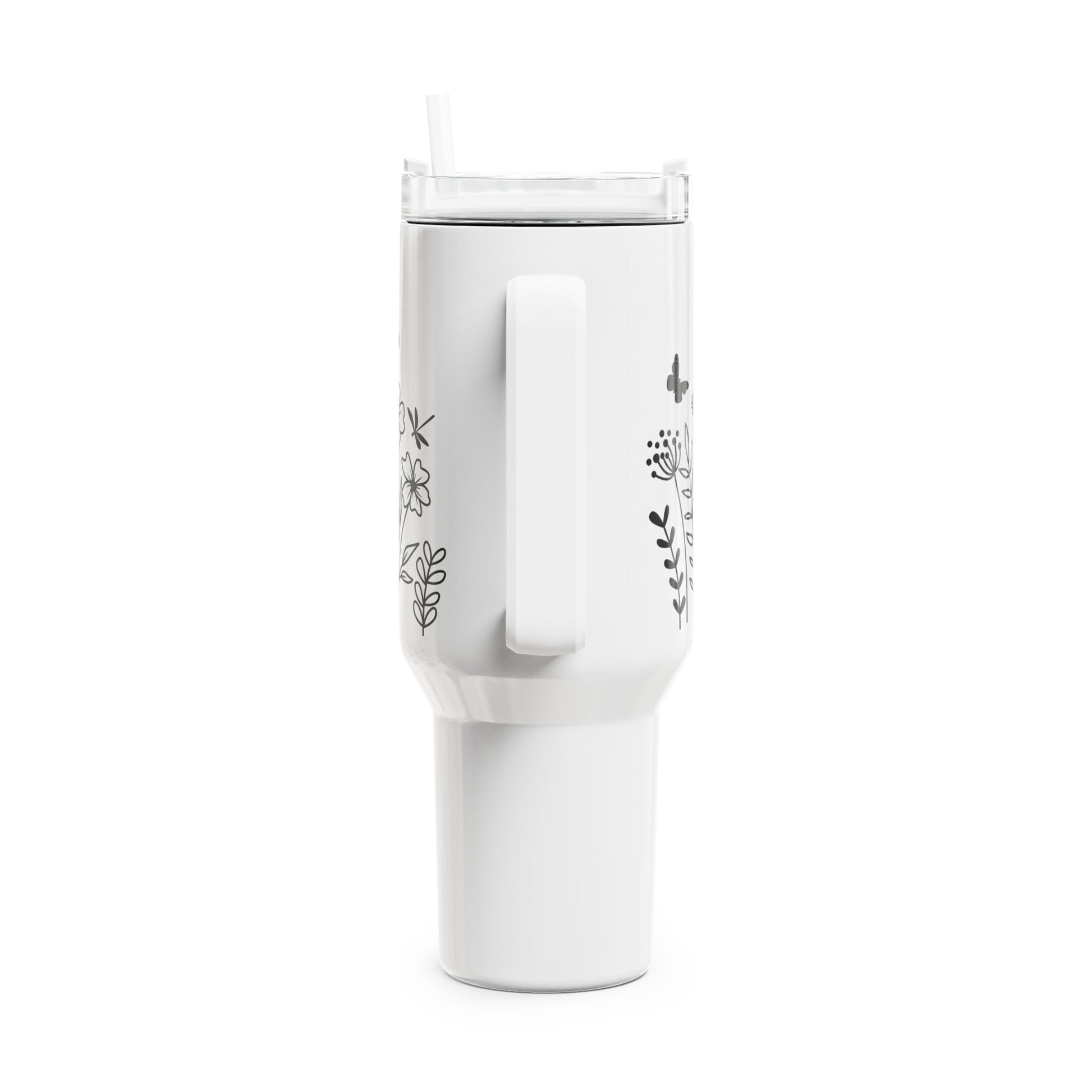 SCHMETTERLINGS BLUMEN WIESE NIEDLICH • Tumbler mit Henkel & Strohhalm • XXL Reisebecher 1,2L