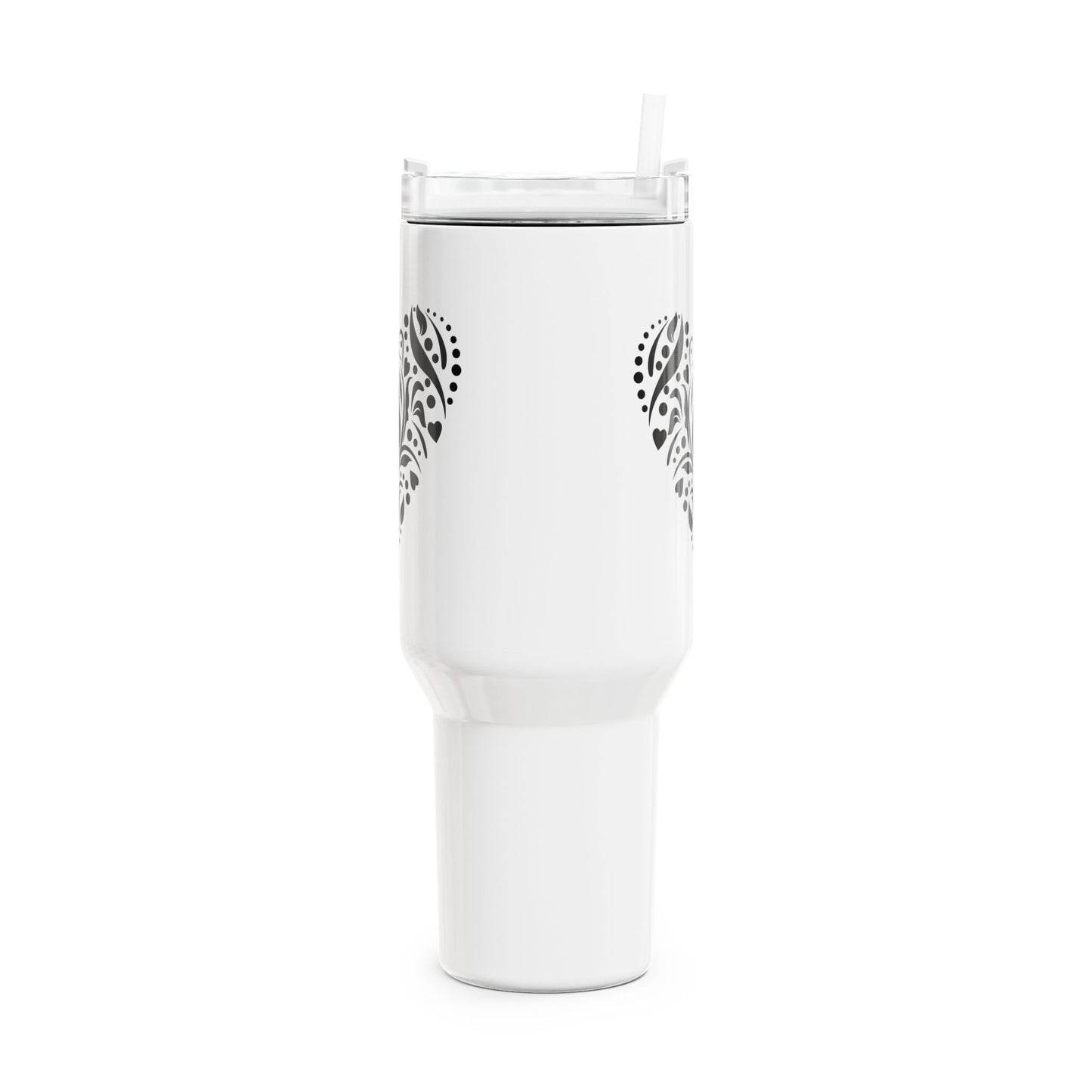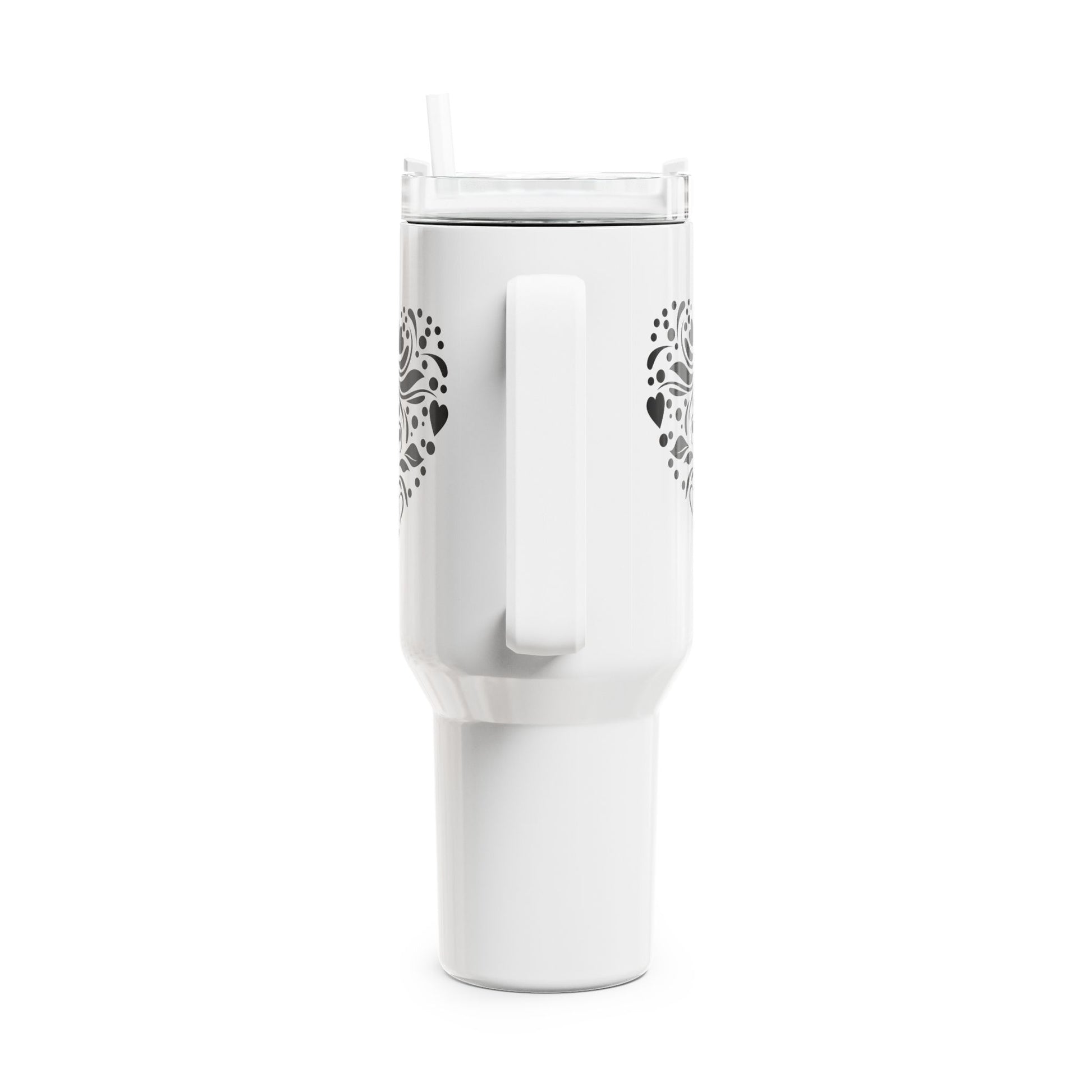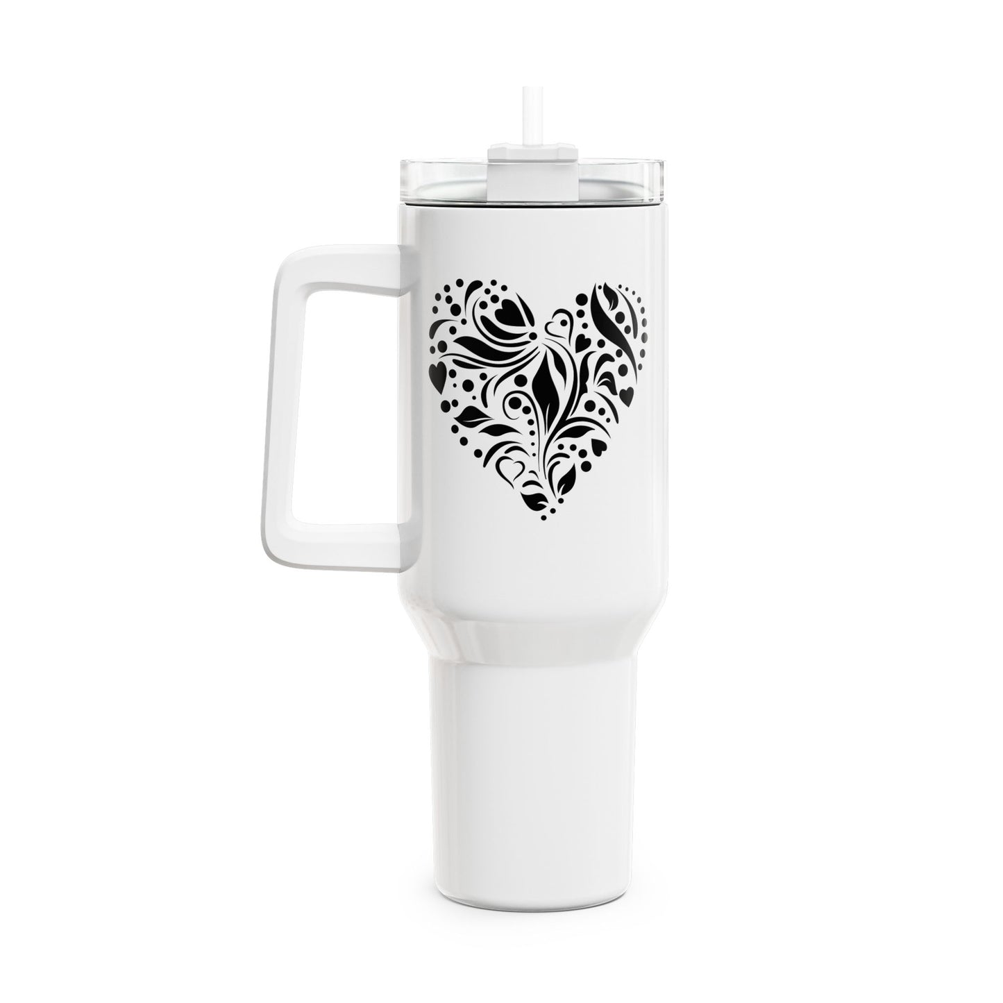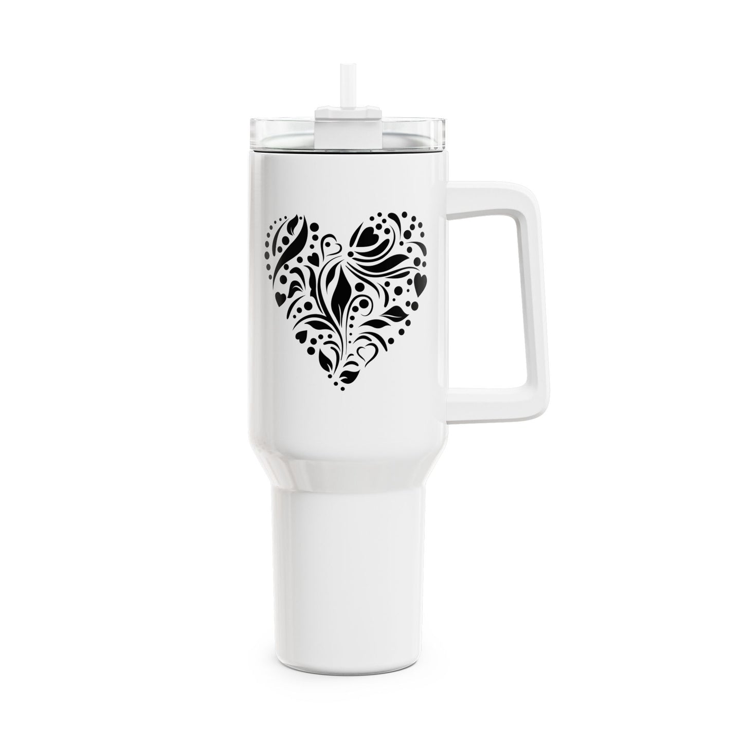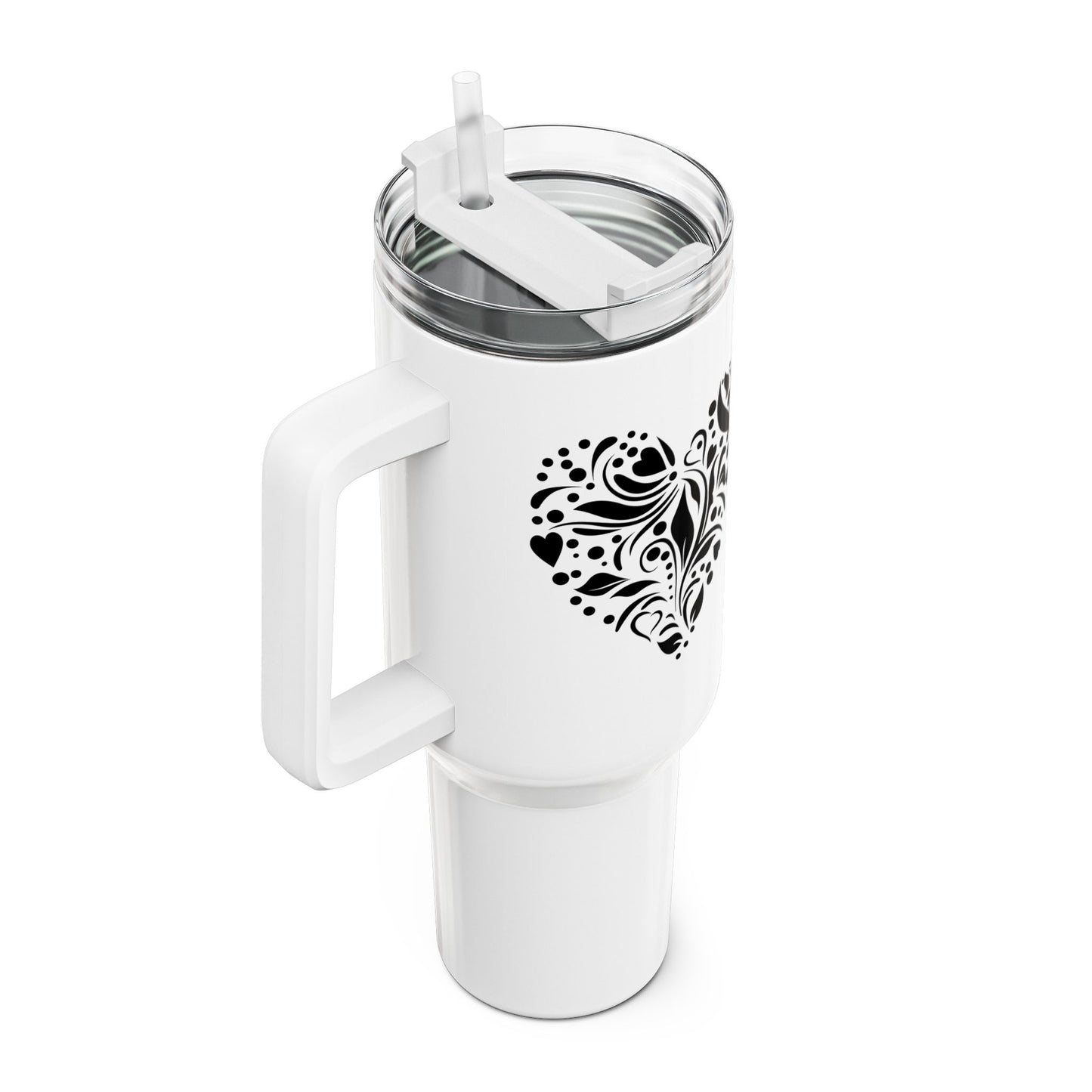 HERZ FLORALES MUSTER • Liebesbeweis Geschenk, LOVE Liebesbotschaft • Tumbler mit Henkel & Strohhalm • XXL Reisebecher 1,2L