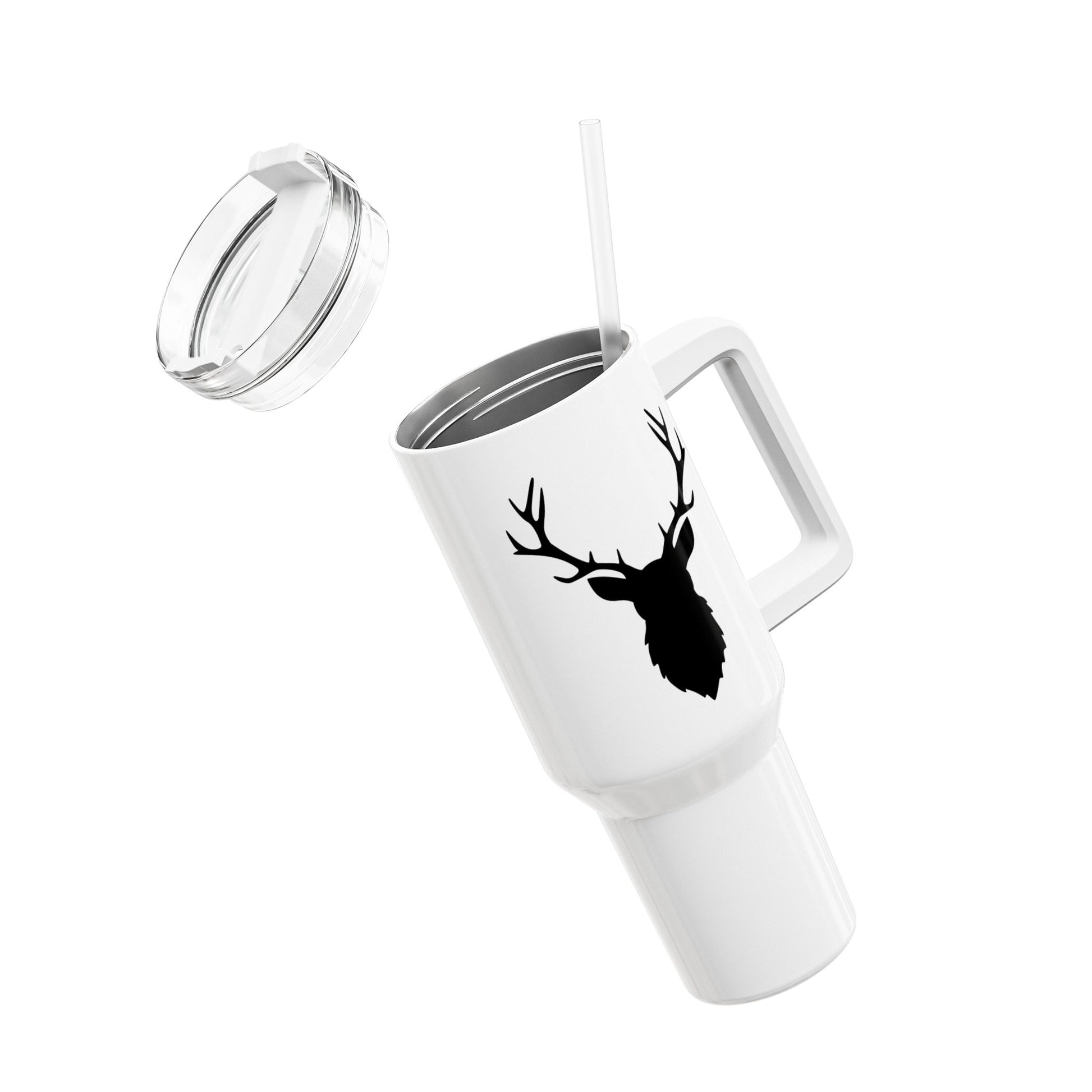 HIRSCH REH RENTIER WALDTIER JAGDMOTIV • Tumbler mit Henkel & Strohhalm • XXL Reisebecher 1,2L