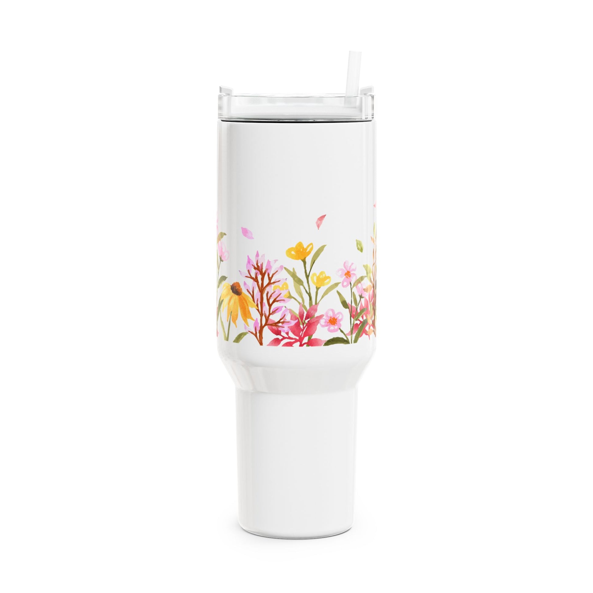AQUARELL BLUMENWIESE RETRO DESGIN • Tumbler mit Henkel & Strohhalm • XXL Reisebecher 1,2L