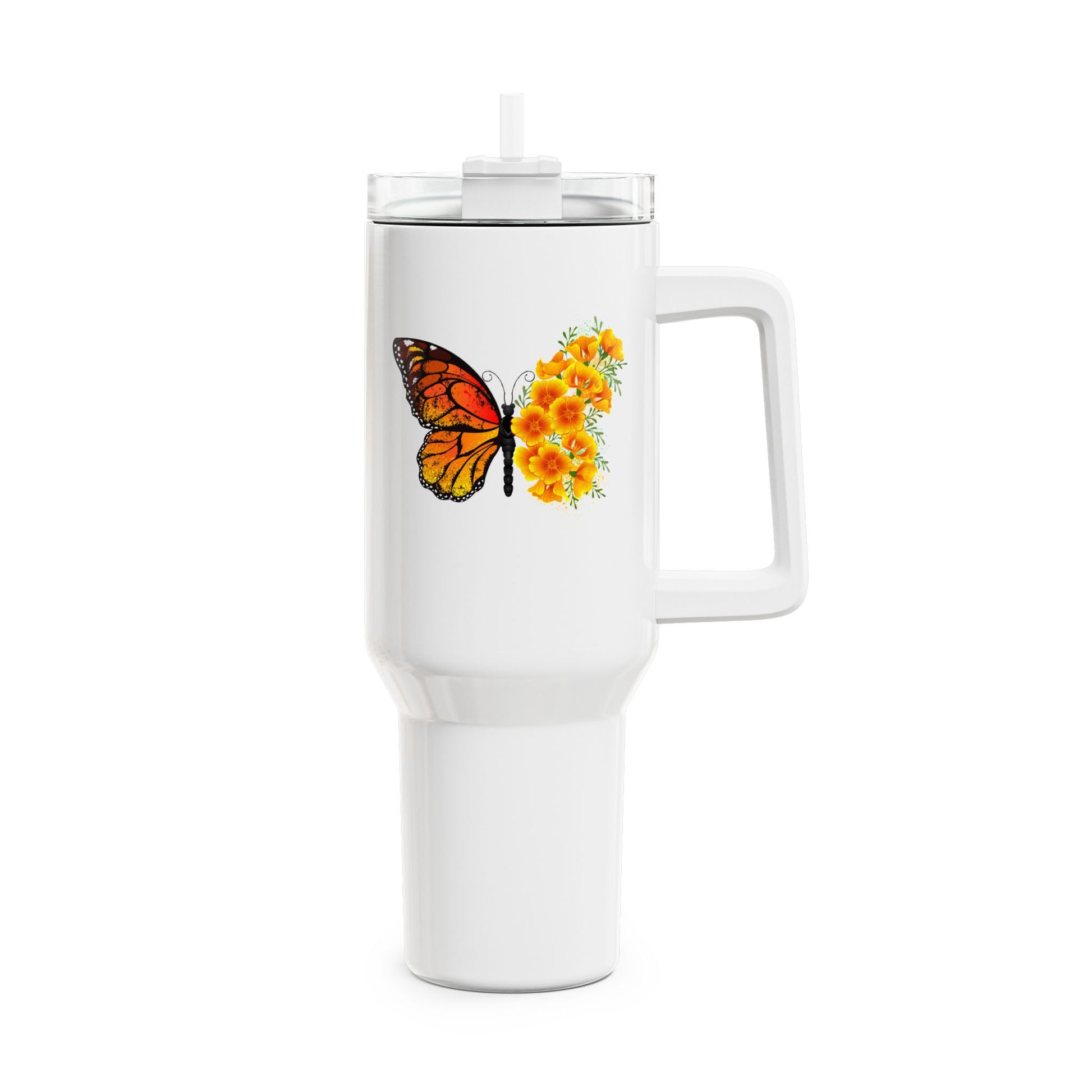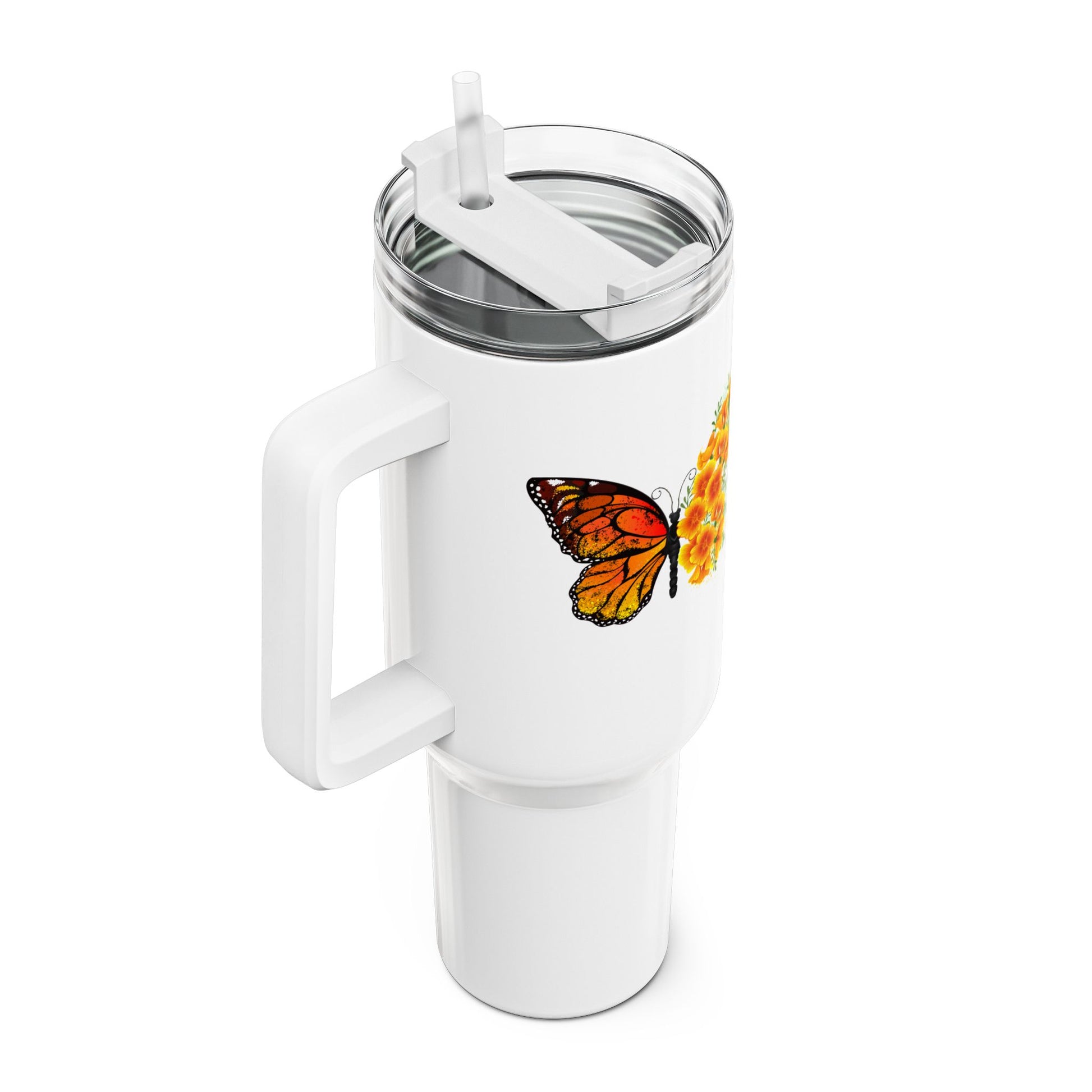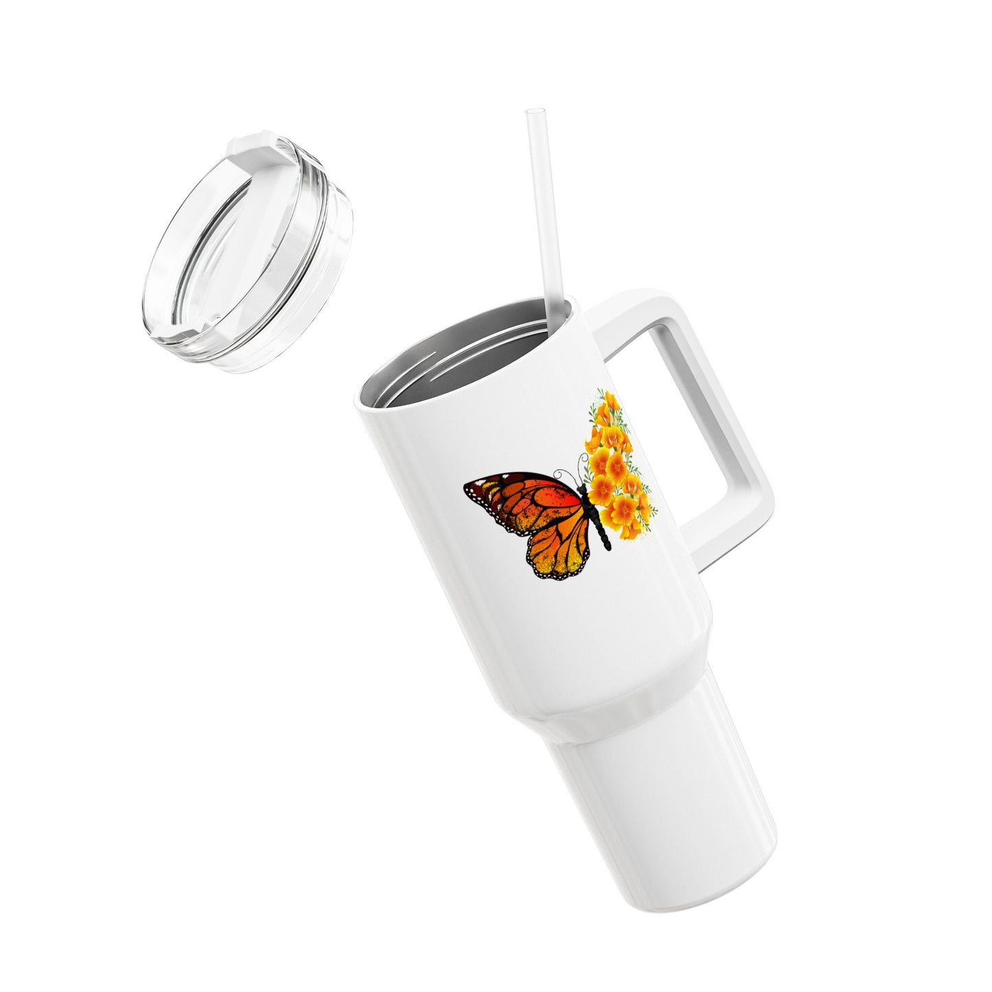 SCHMETTERLING & BLUMEN MOTIV • Tumbler mit Henkel & Strohhalm • XXL Reisebecher 1,2L
