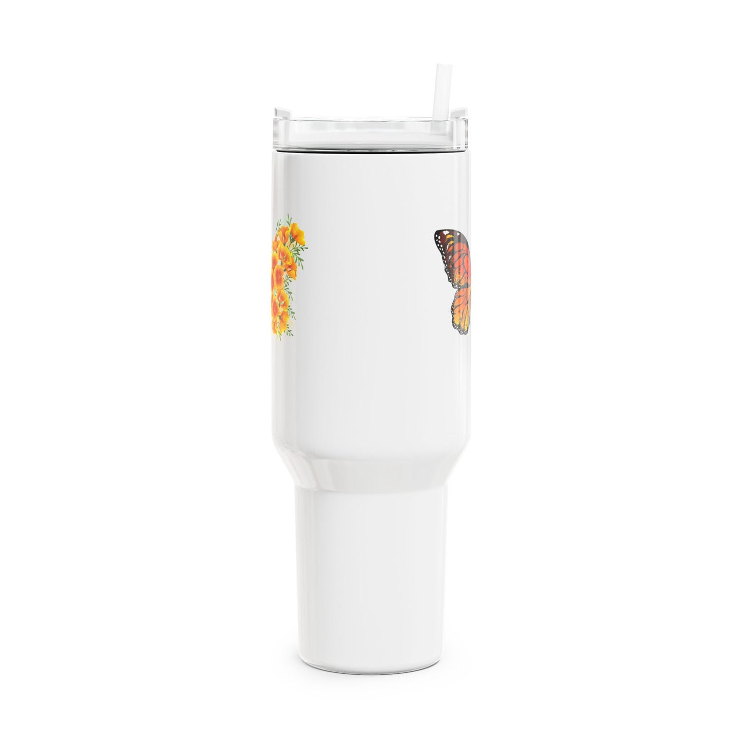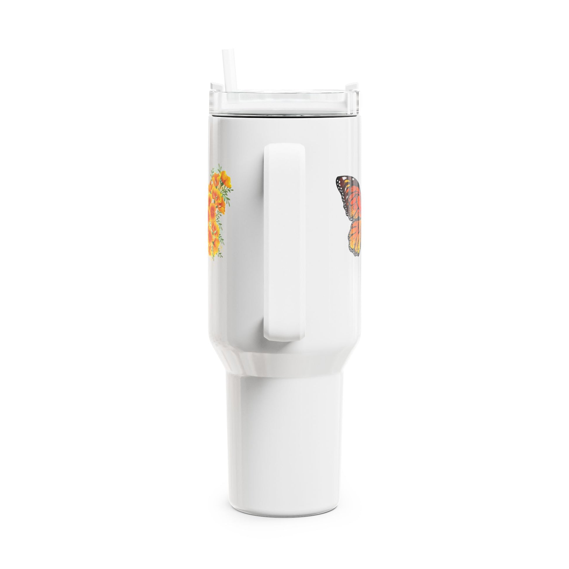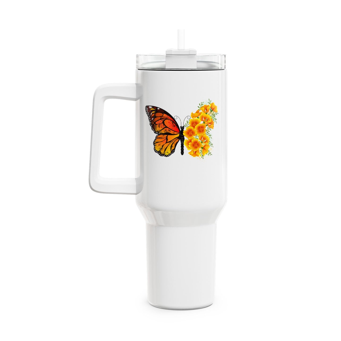SCHMETTERLING & BLUMEN MOTIV • Tumbler mit Henkel & Strohhalm • XXL Reisebecher 1,2L