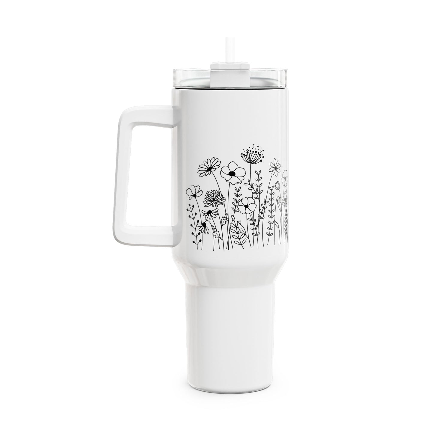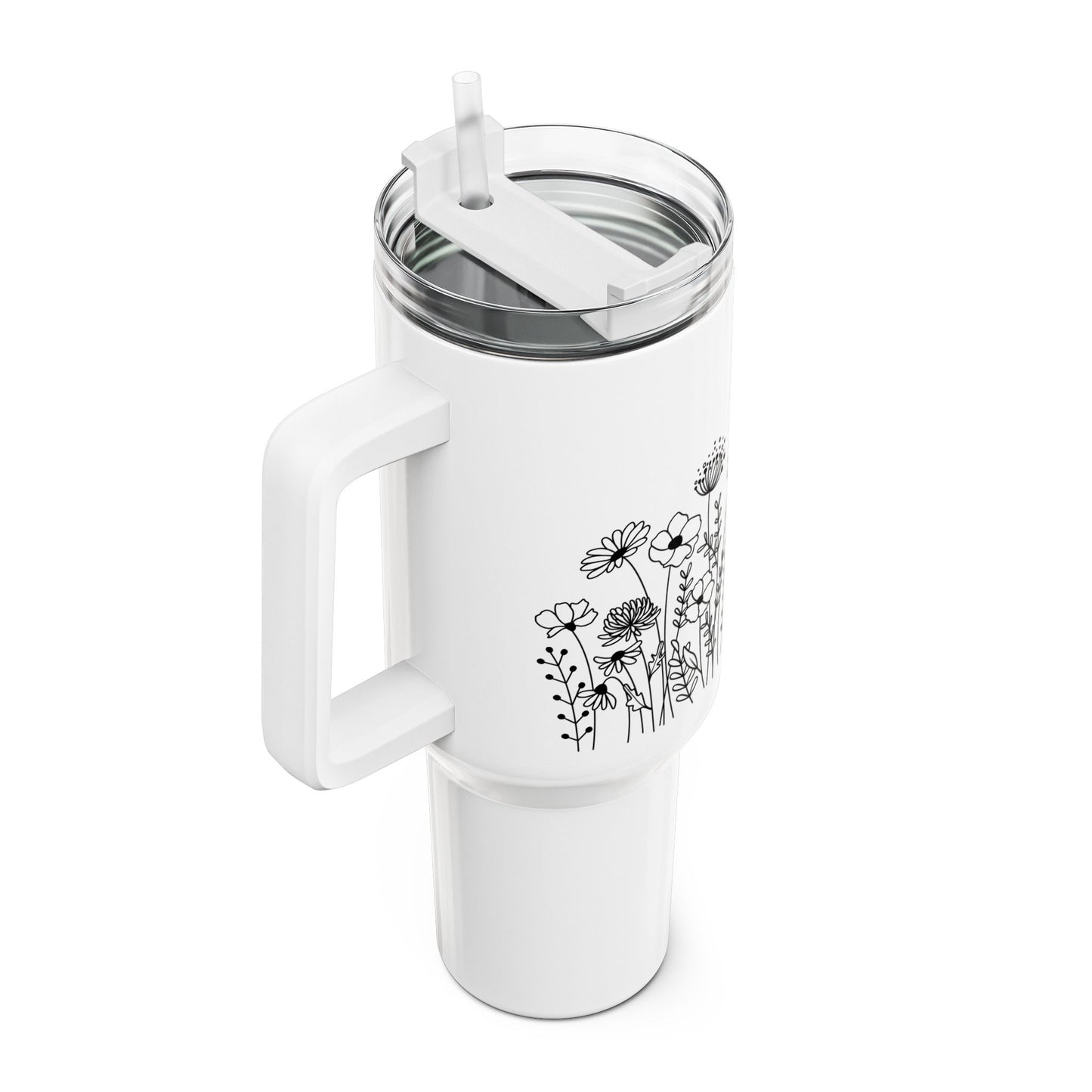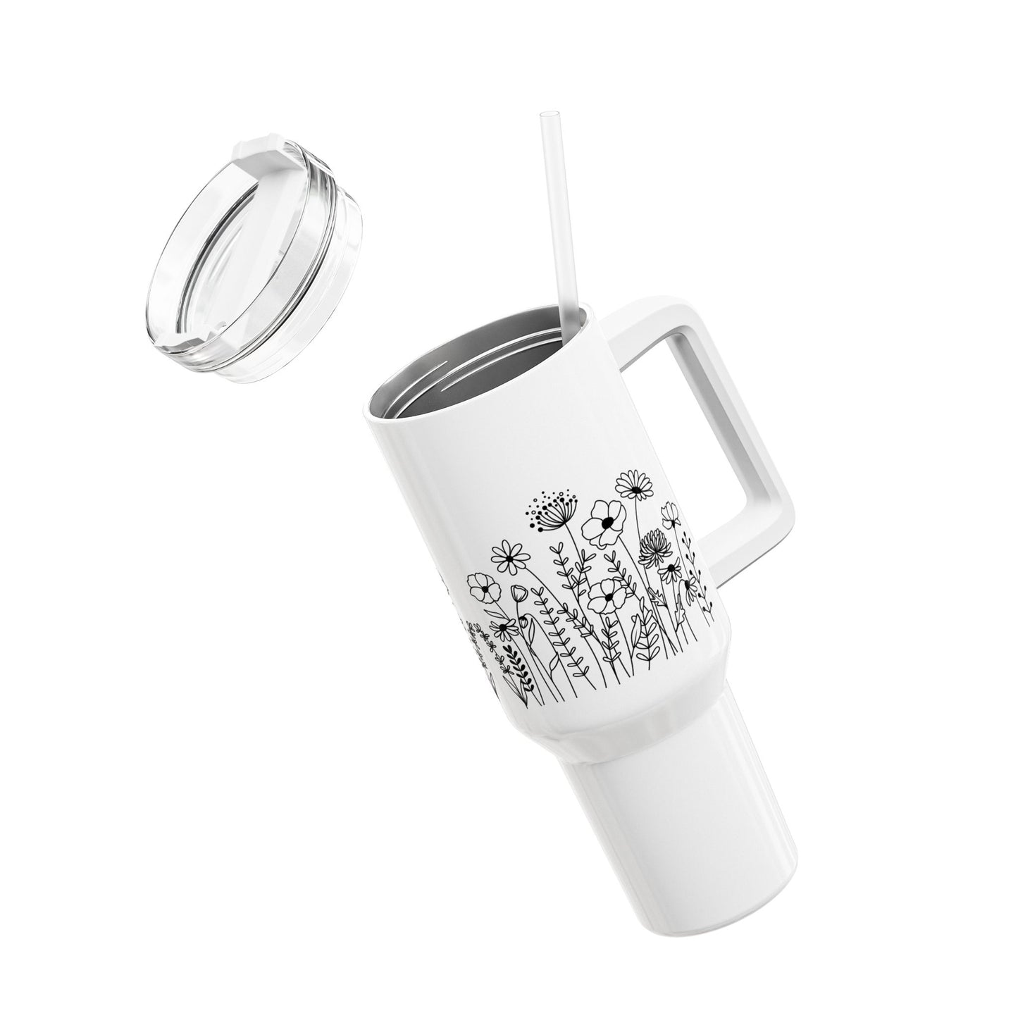BLUMEN PRINT • Tumbler mit Henkel & Strohhalm • XXL Reisebecher 1,2L