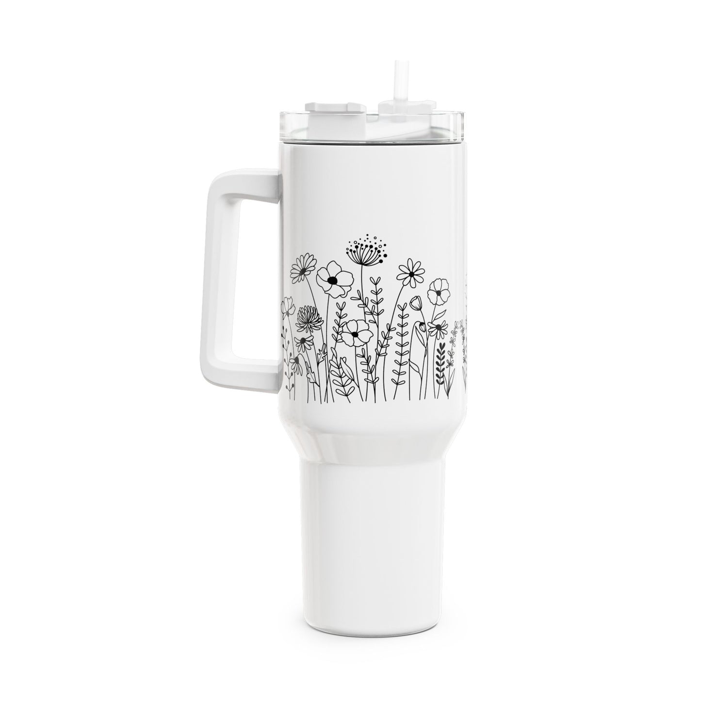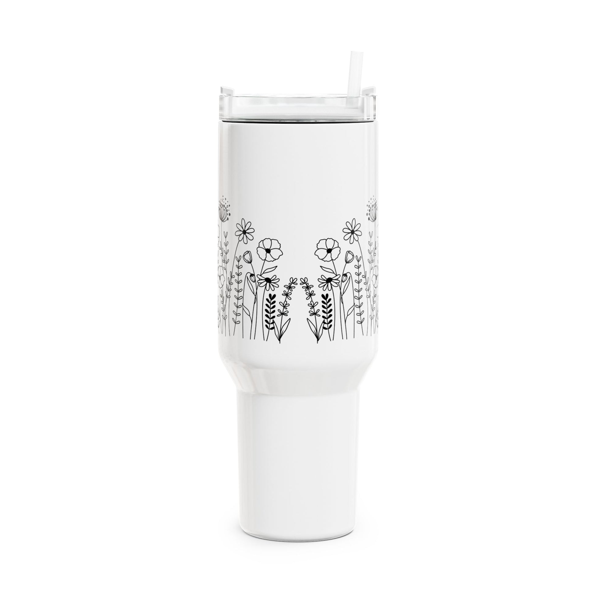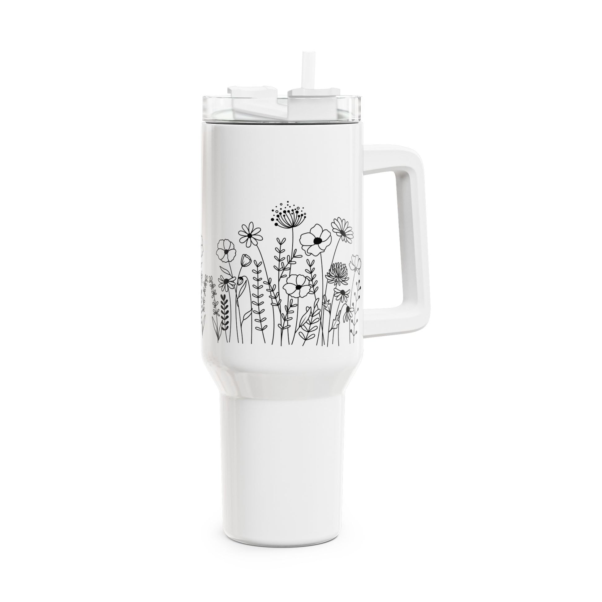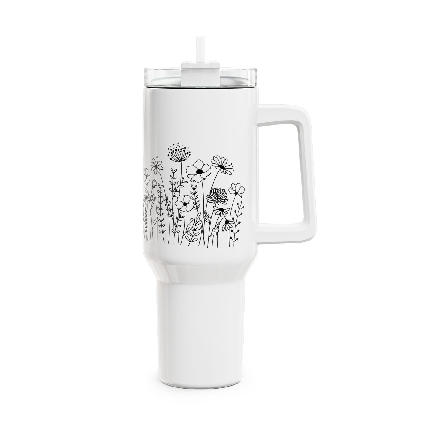 BLUMEN PRINT • Tumbler mit Henkel & Strohhalm • XXL Reisebecher 1,2L