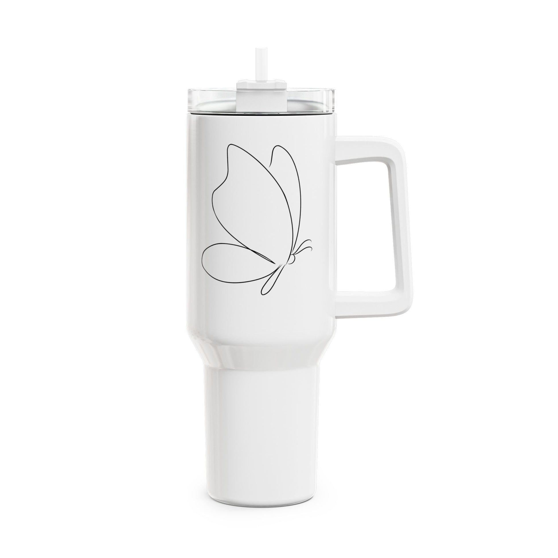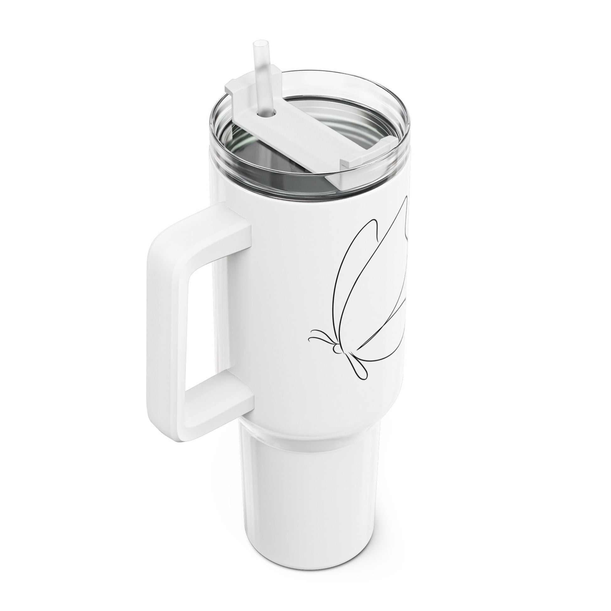 SCHMETTERLING EINE-LINIE-ZEICHNUNG minimalistisch • Tumbler mit Henkel & Strohhalm • XXL Reisebecher 1,2L