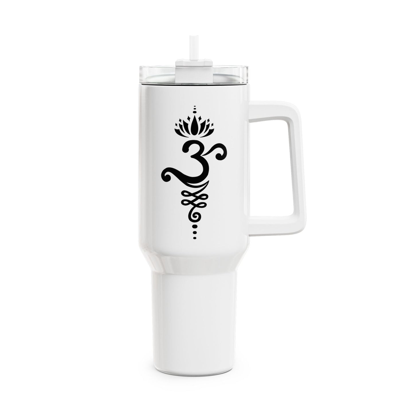 OM OHM ZEICHEN & ENDLOSER KNOTEN & LOTUS BLÜTE • Tumbler mit Henkel & Strohhalm • XXL Reisebecher 1,2L