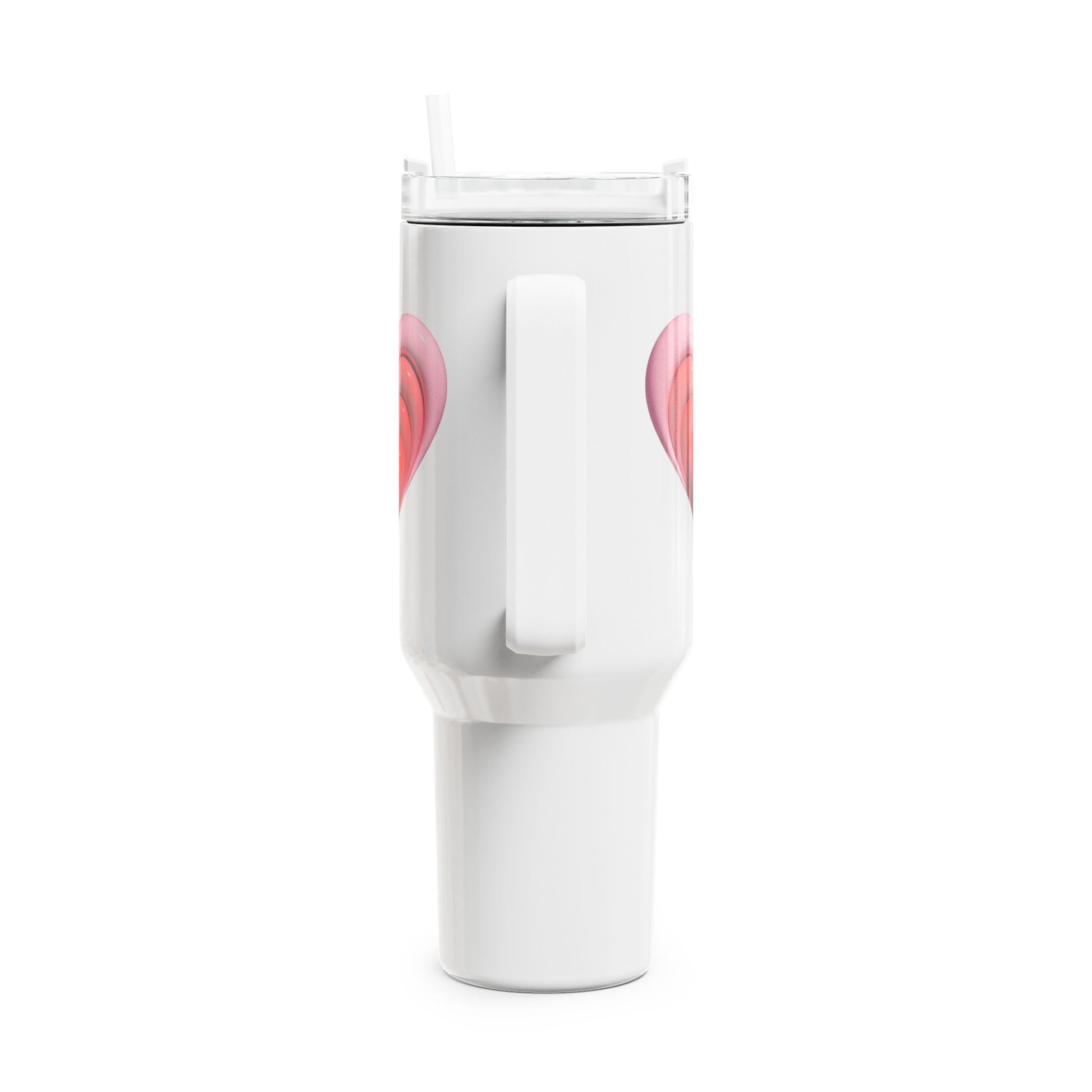 HERZ ROT 3D OPTISCHE ILLUSION • Tumbler mit Henkel & Strohhalm • XXL Reisebecher 1,2L