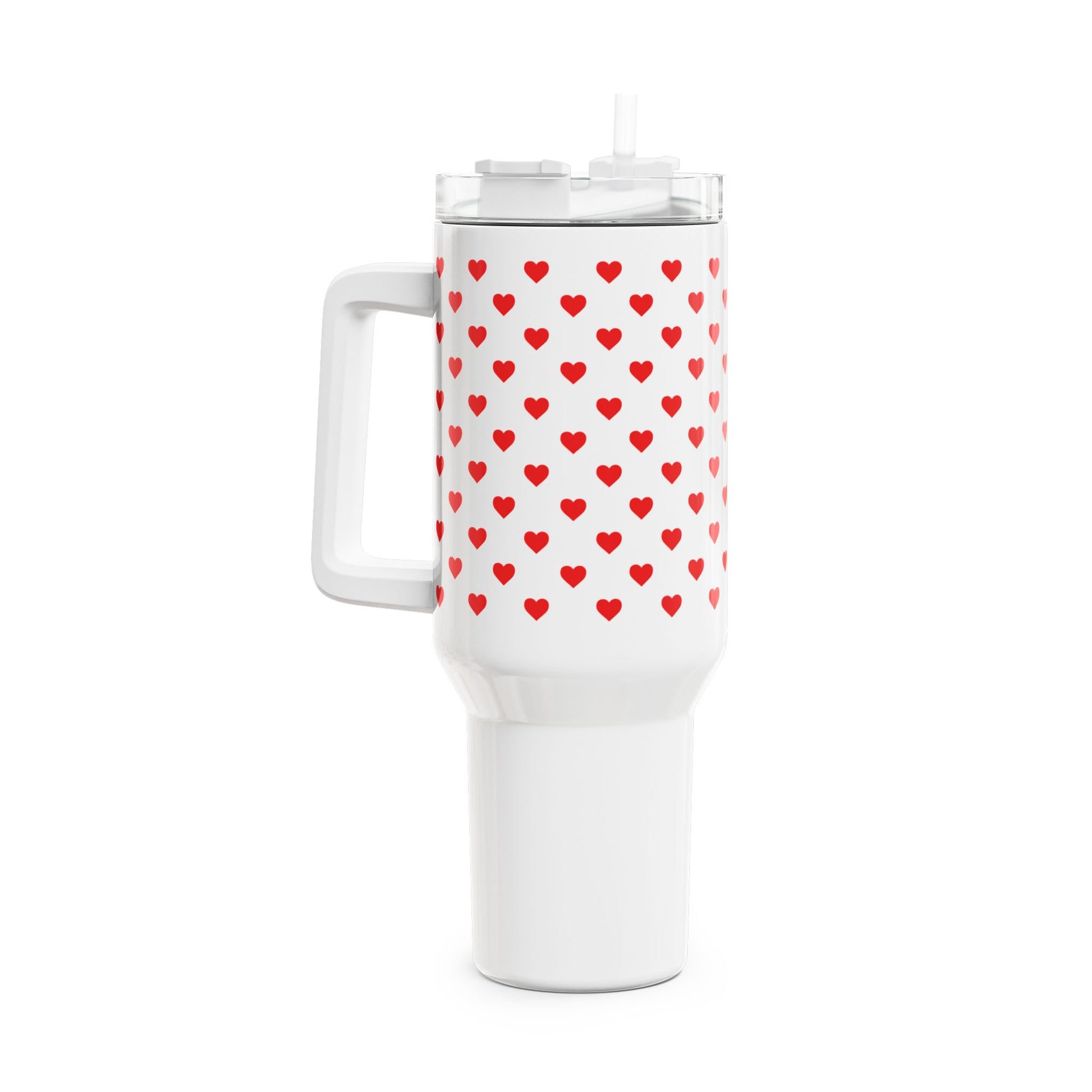 HERZEN MUSTER ROTE HERZCHEN - LOVE NIEDLICH SÜßE LIEBE • Tumbler mit Henkel & Strohhalm • XXL Reisebecher 1,2L