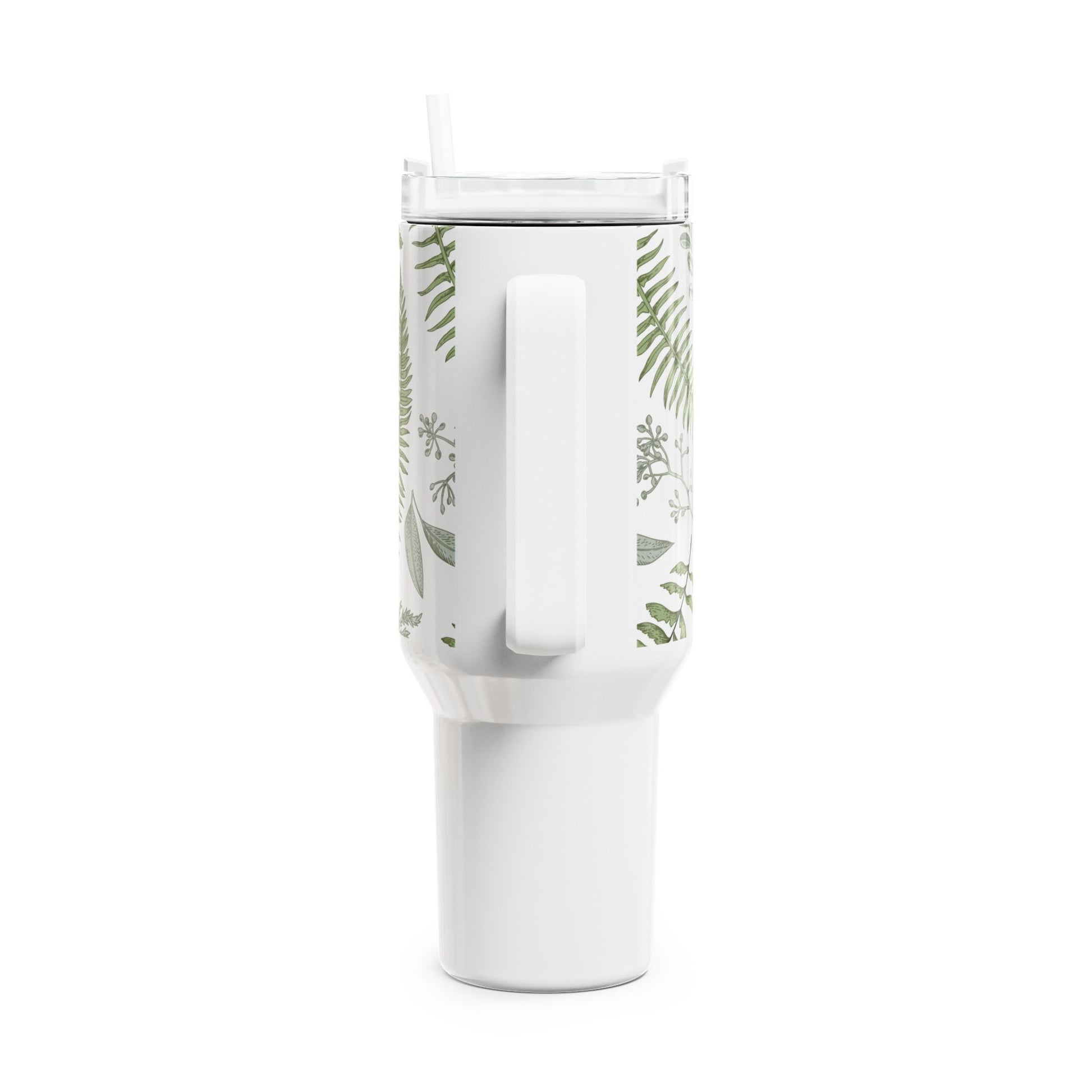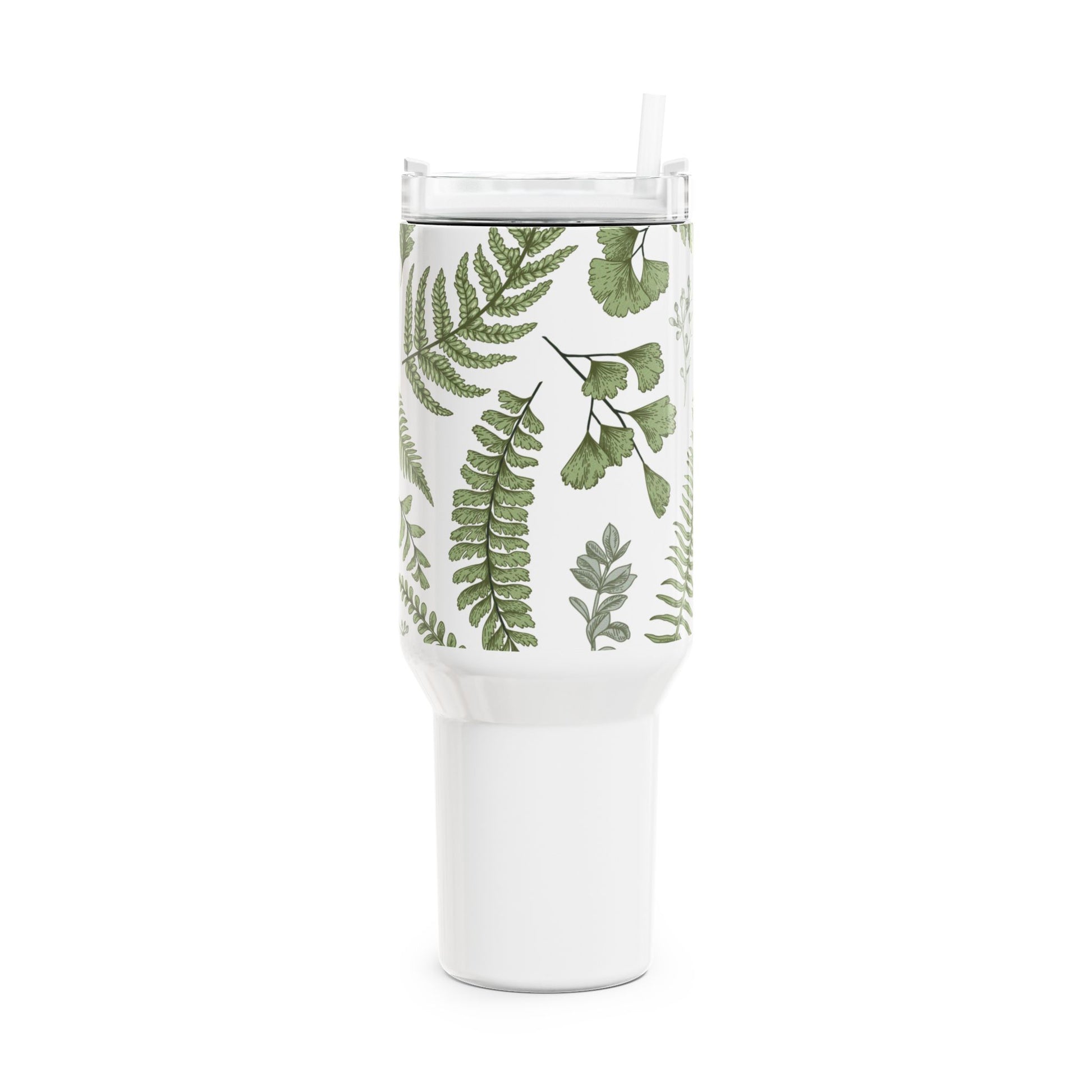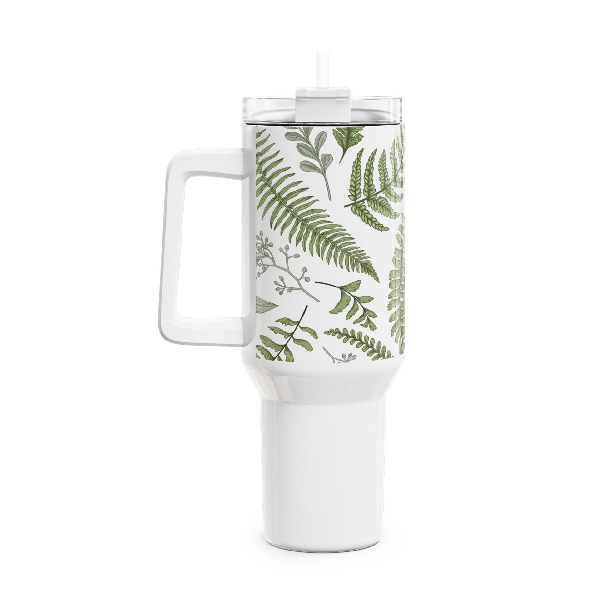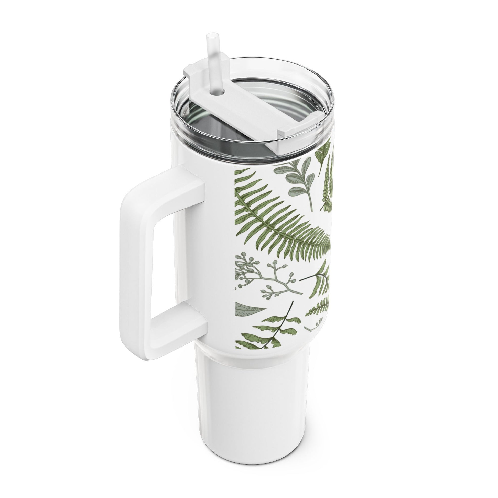 GRÜNE BLÄTTER FARN PFLANZENMOTIV • Tumbler mit Henkel & Strohhalm • XXL Reisebecher 1,2L
