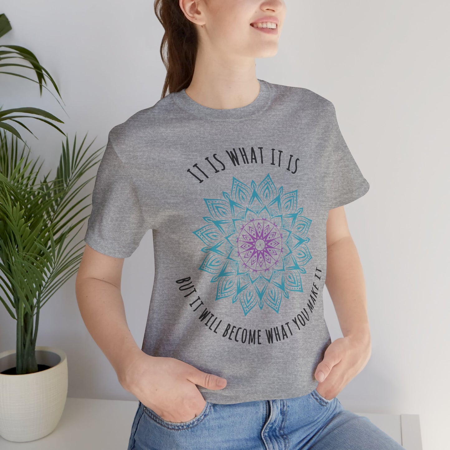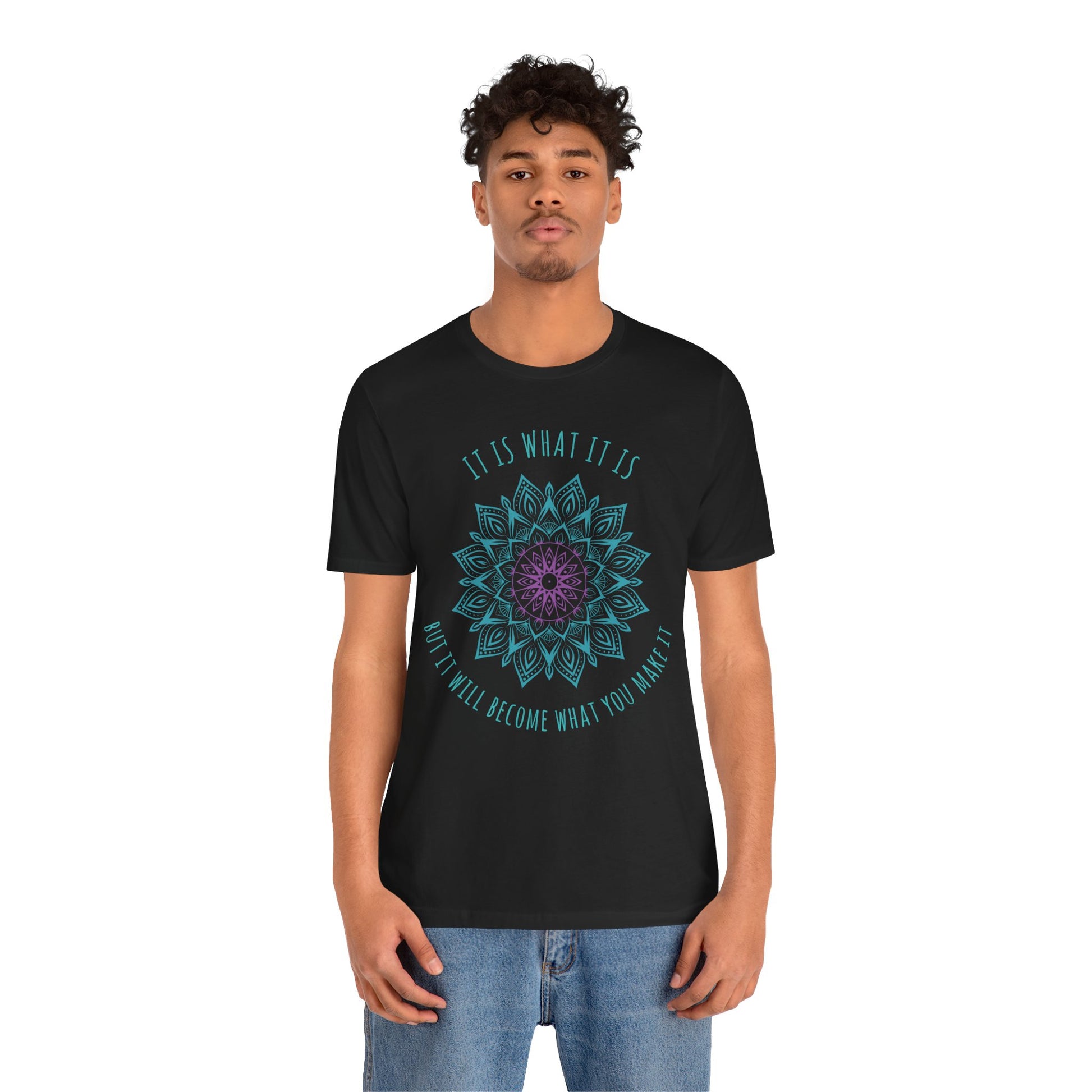 IT IS WHAT IT IS • YOGA SPRUCH INSPIRATION & MANDALA BLUME • T-shirt Damen & Herren Baumwolle 🌿