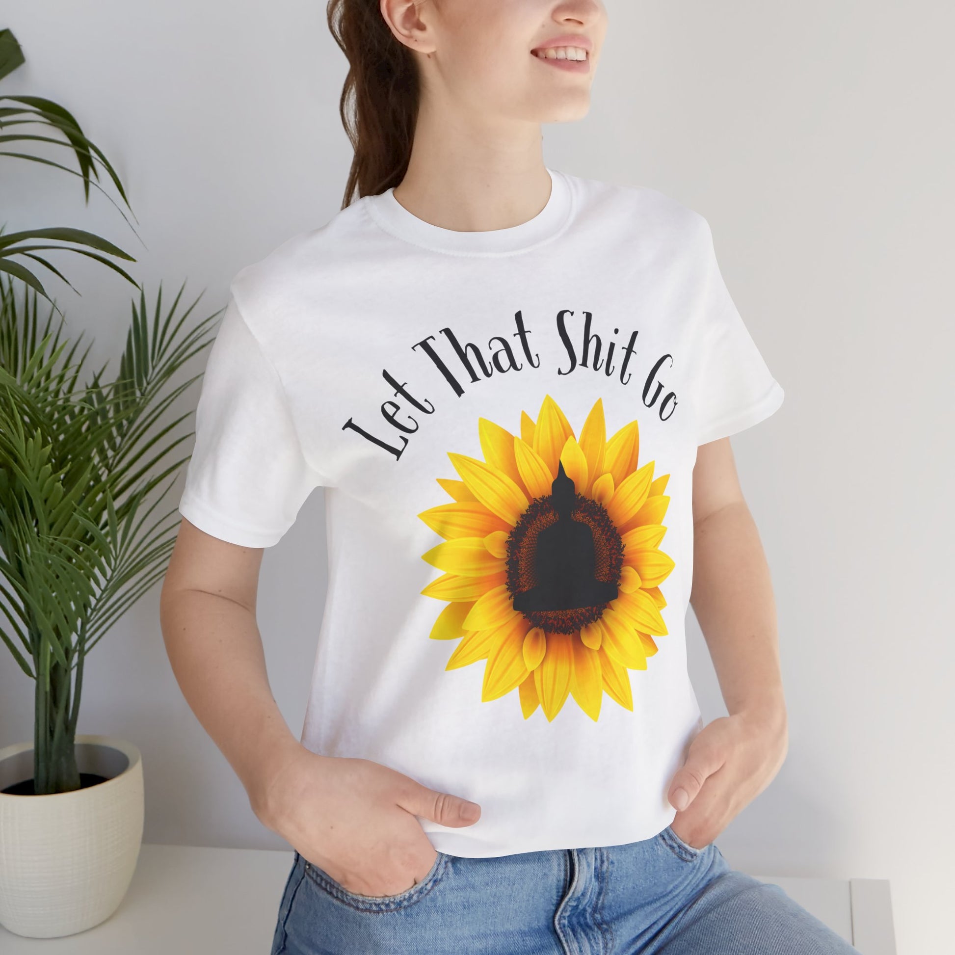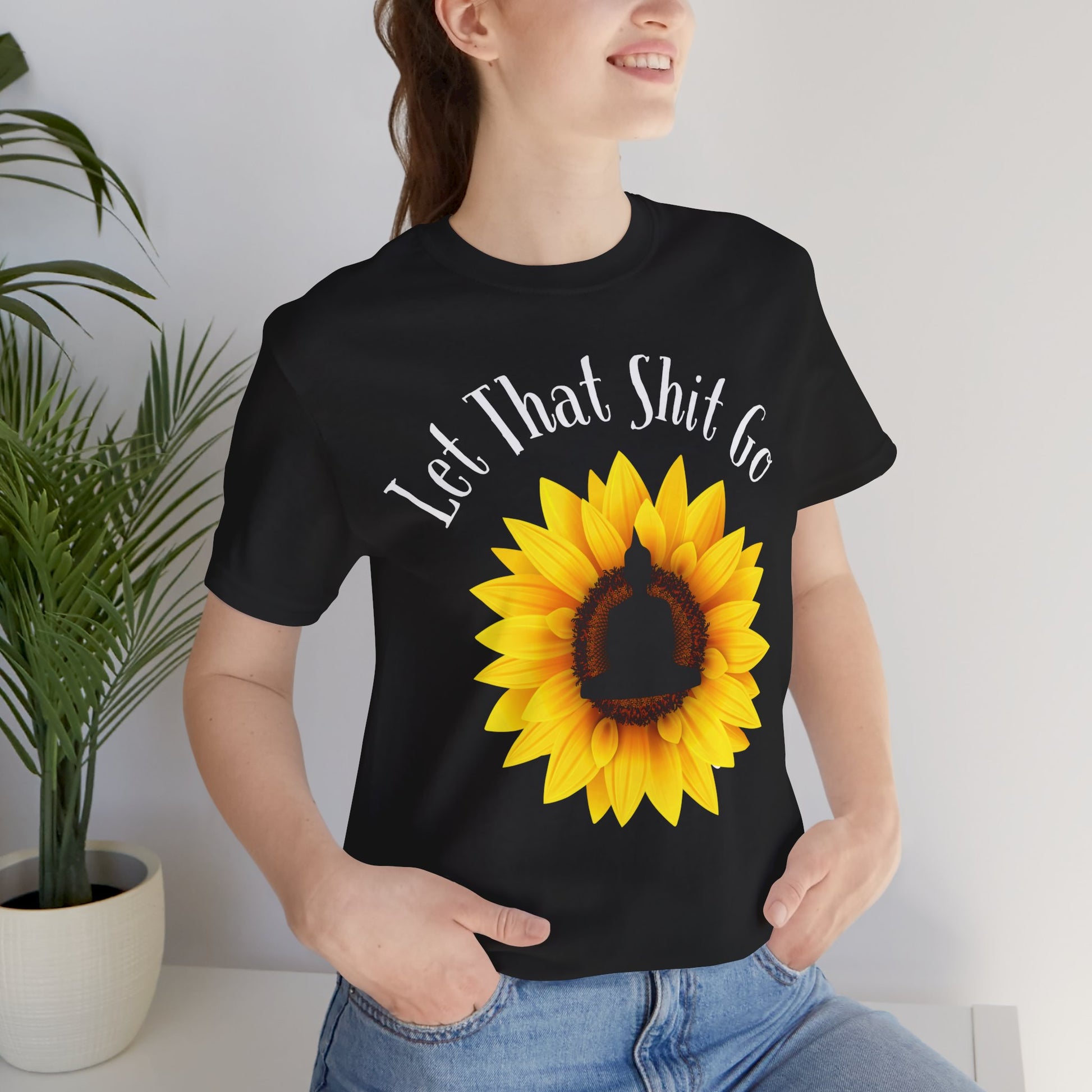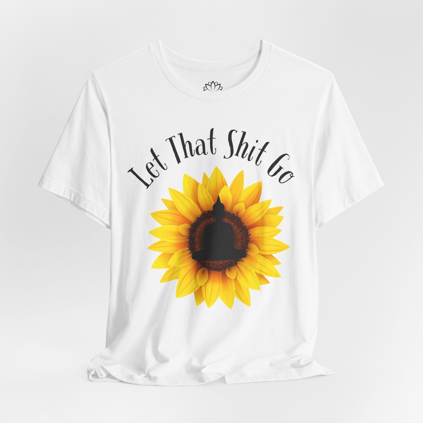 LET THAT SHIT GO • Sonnenblume Motiv Spruch Buddha Print • T-shirt Damen & Herren • Baumwolle 🌿