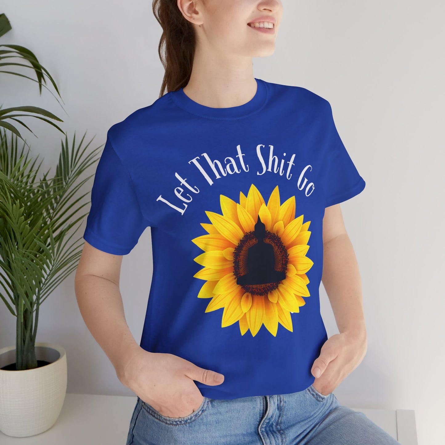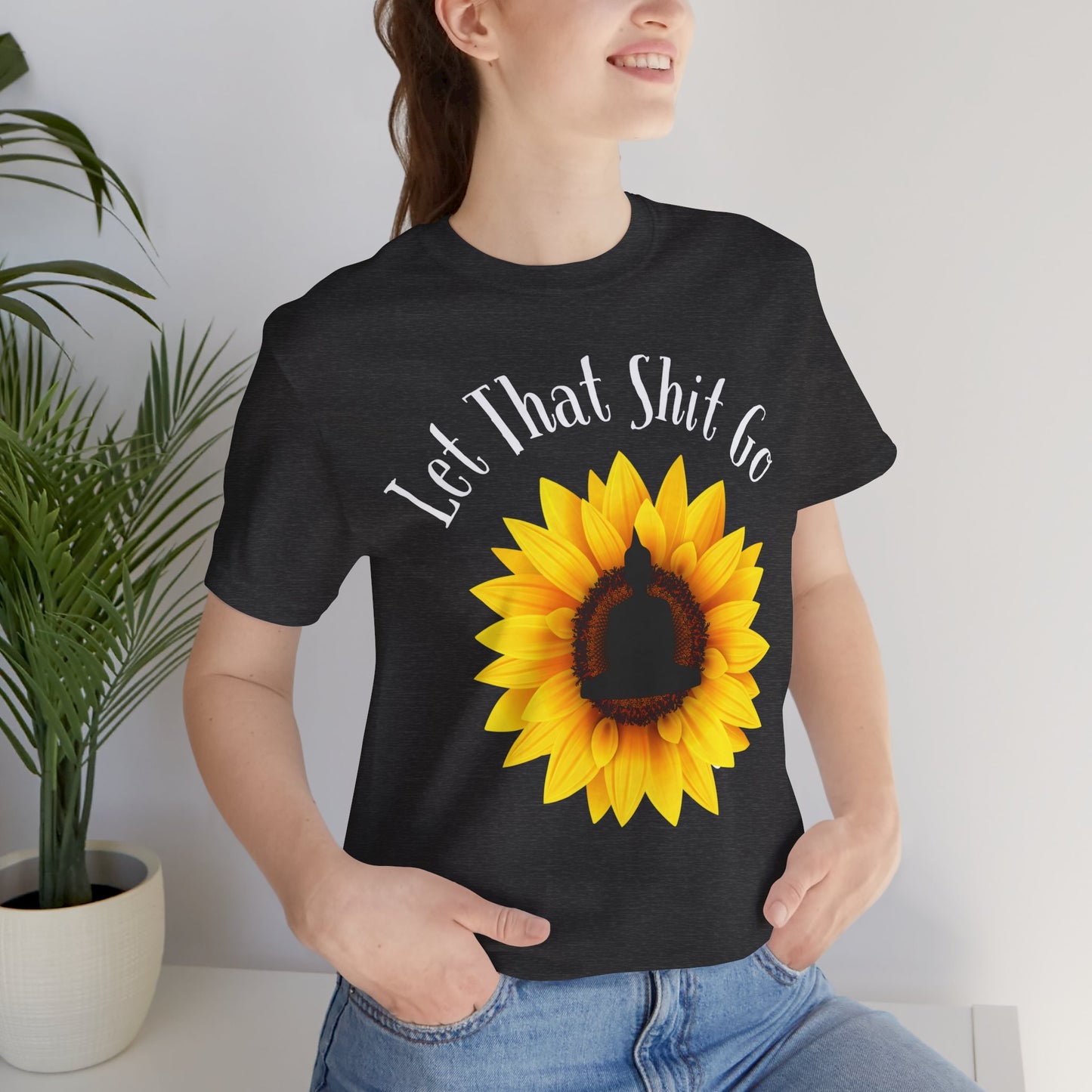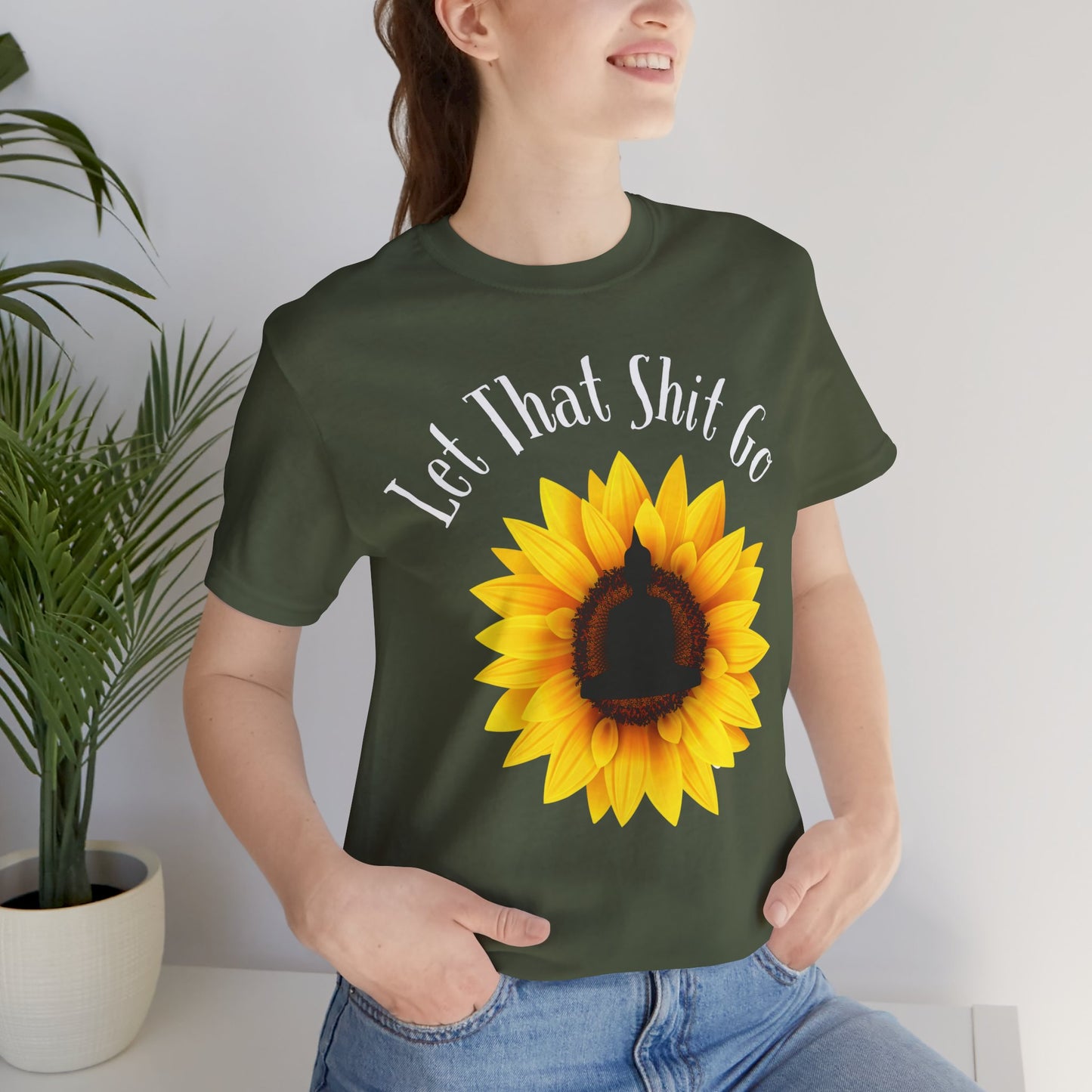 LET THAT SHIT GO • Sonnenblume Motiv Spruch Buddha Print • T-shirt Damen & Herren • Baumwolle 🌿
