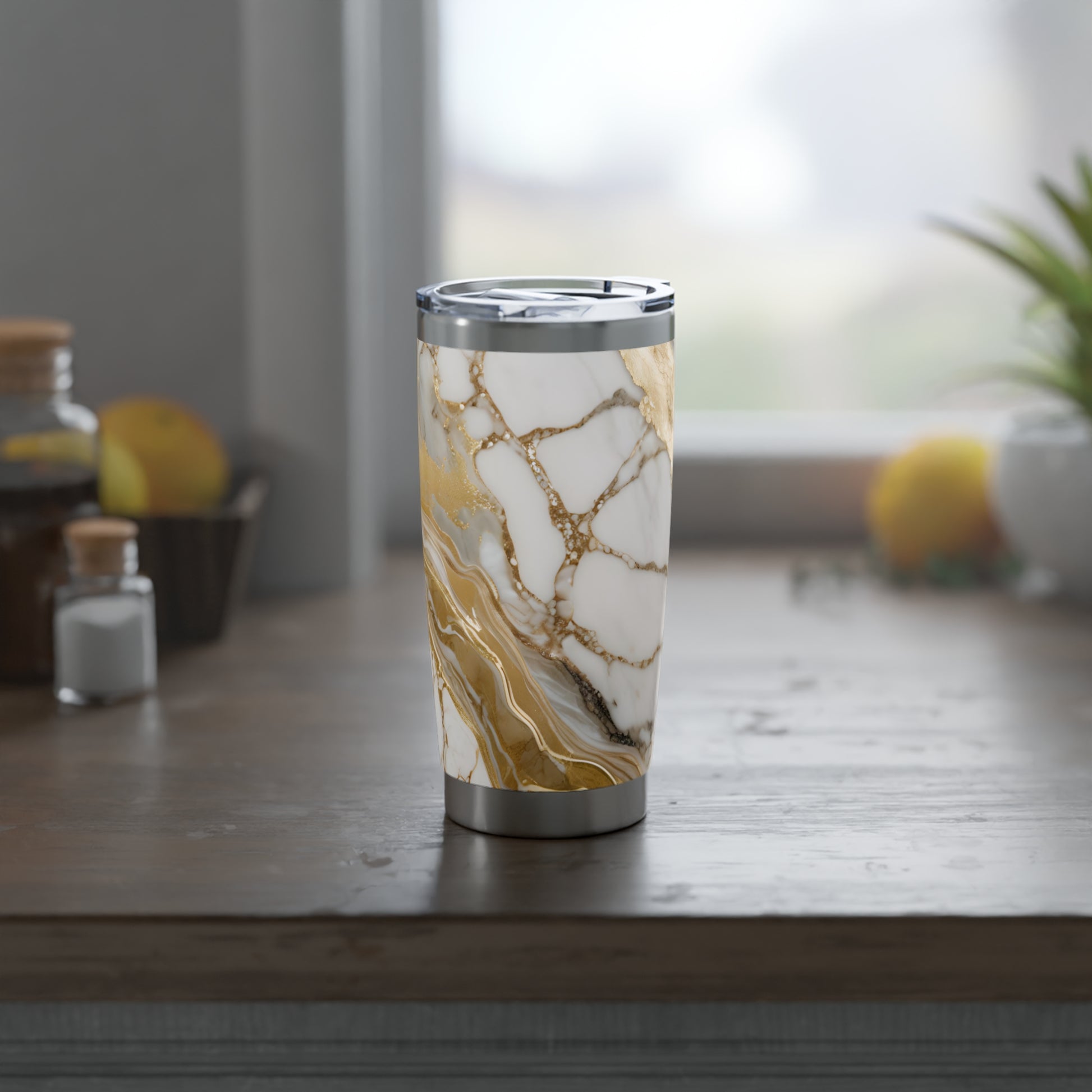 WEIßER MARMOR GOLDENE ADERN LUXUS • Thermo-Reisebecher XL • 590 ml • Tumbler Vagabond