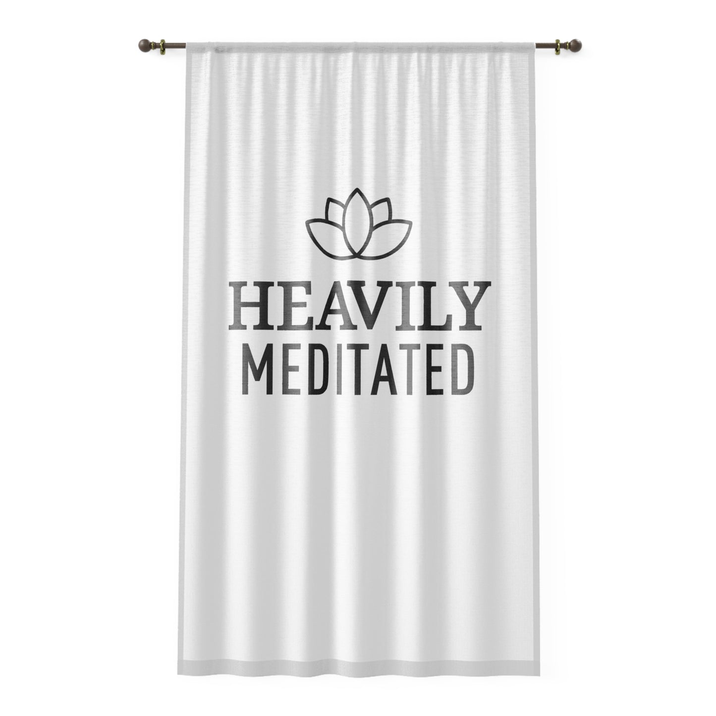 HEAVILY MEDITATED - YOGA SPRUCH MEDITATION • Achtsamkeits-Deko • Lotusblume • Meditations- & Yoga Vorhang Weiß • Wohnzimmer, Schlafzimmer, Esszimmer, Küche • Weiss, Halb-Transparent