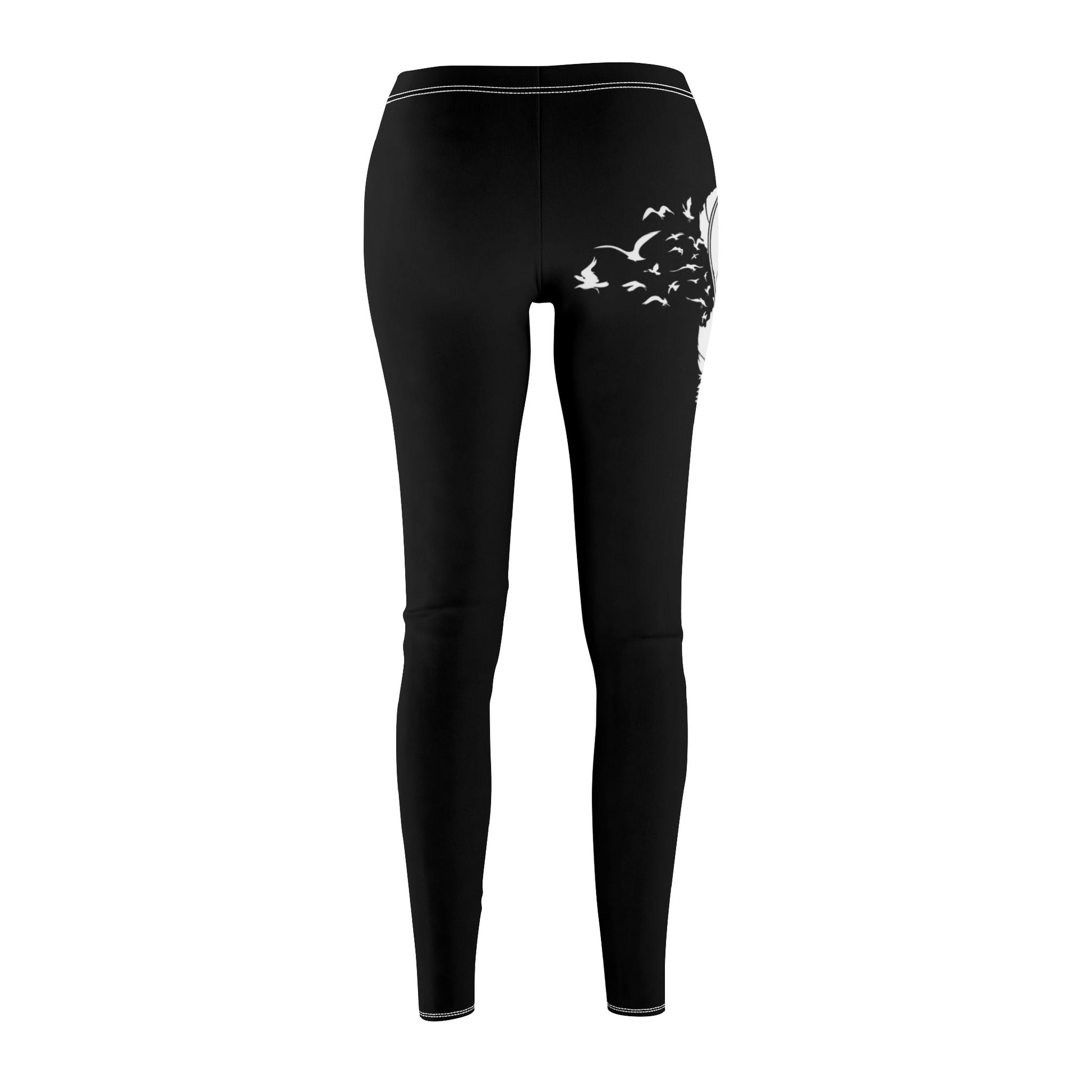 VOGELFEDER & VÖGEL ZEICHNUG Damen Leggins Schwarz • BOHO STYLE - Hippie Beste Leggings für Sport & Freizeit