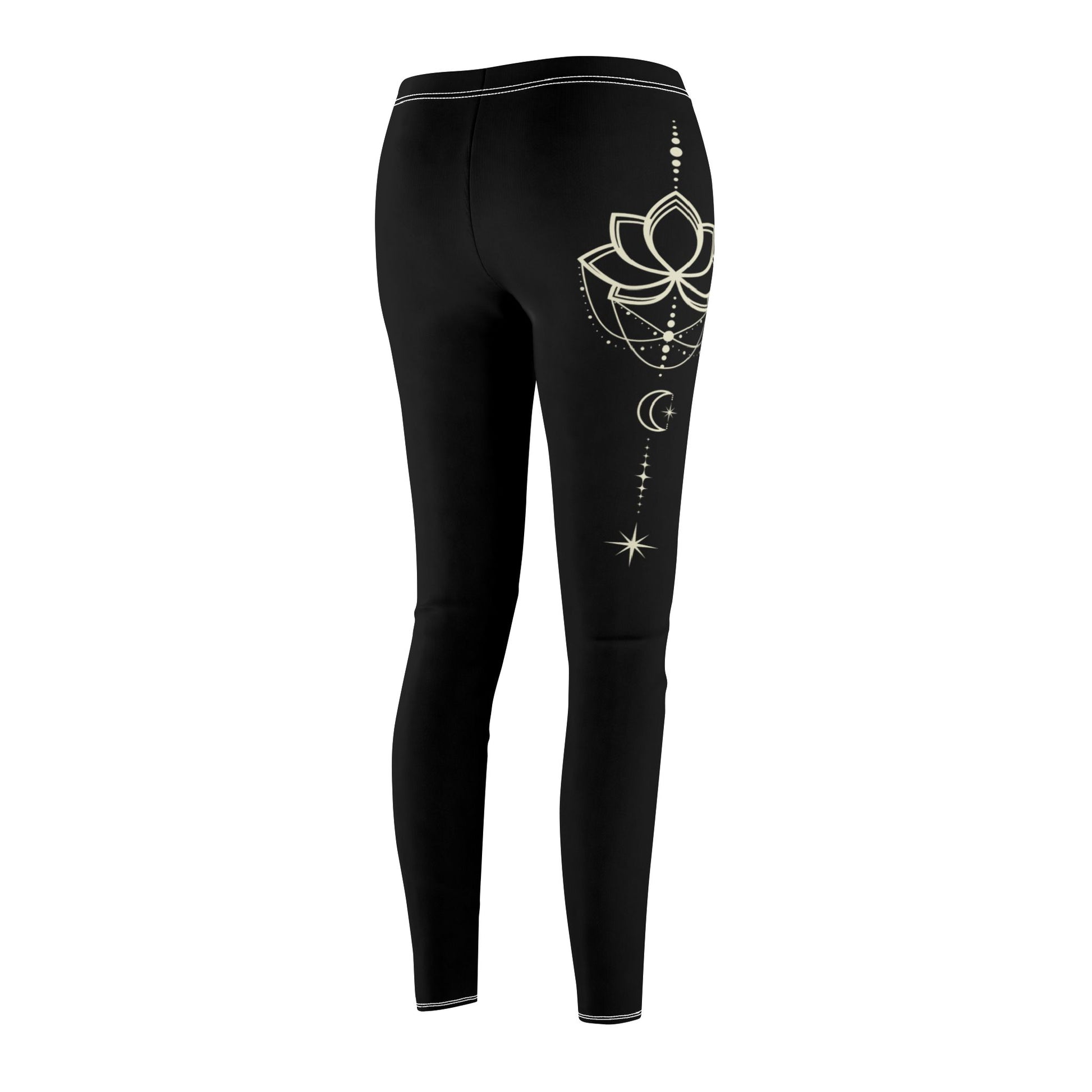 LOTUSBLUME LOTUSBLÜTE MOND STERNENHIMMEL • Schicke Damen Leggins Schwarz • Beste Leggings für Sport & Freizeit
