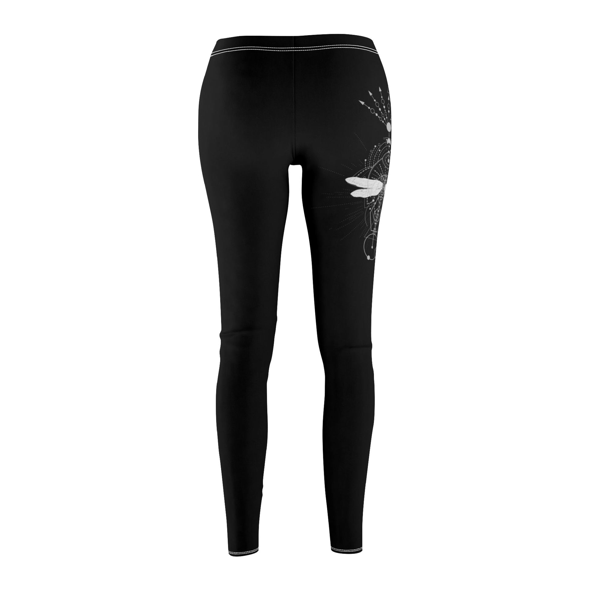 LIBELLE MOND FEE ZEICHNUNG • Spirituelle Kleidung - Damen Leggins Schwarz • Beste Leggings für Sport & Freizeit
