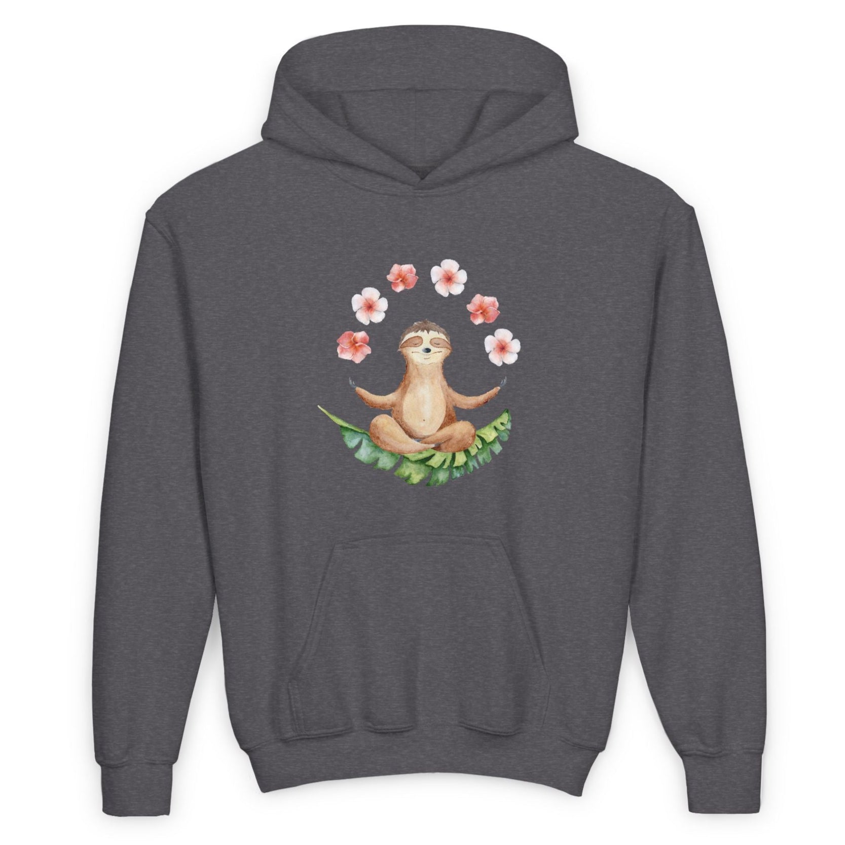 FAULTIER MEDITATION TIERYOGA NIEDLICH SÜß MIT BLUMEN • Kinder Hoodie für Mädchen & Jungen (7–16 Jahre) | Kuschelweiche Baumwolle 🌿
